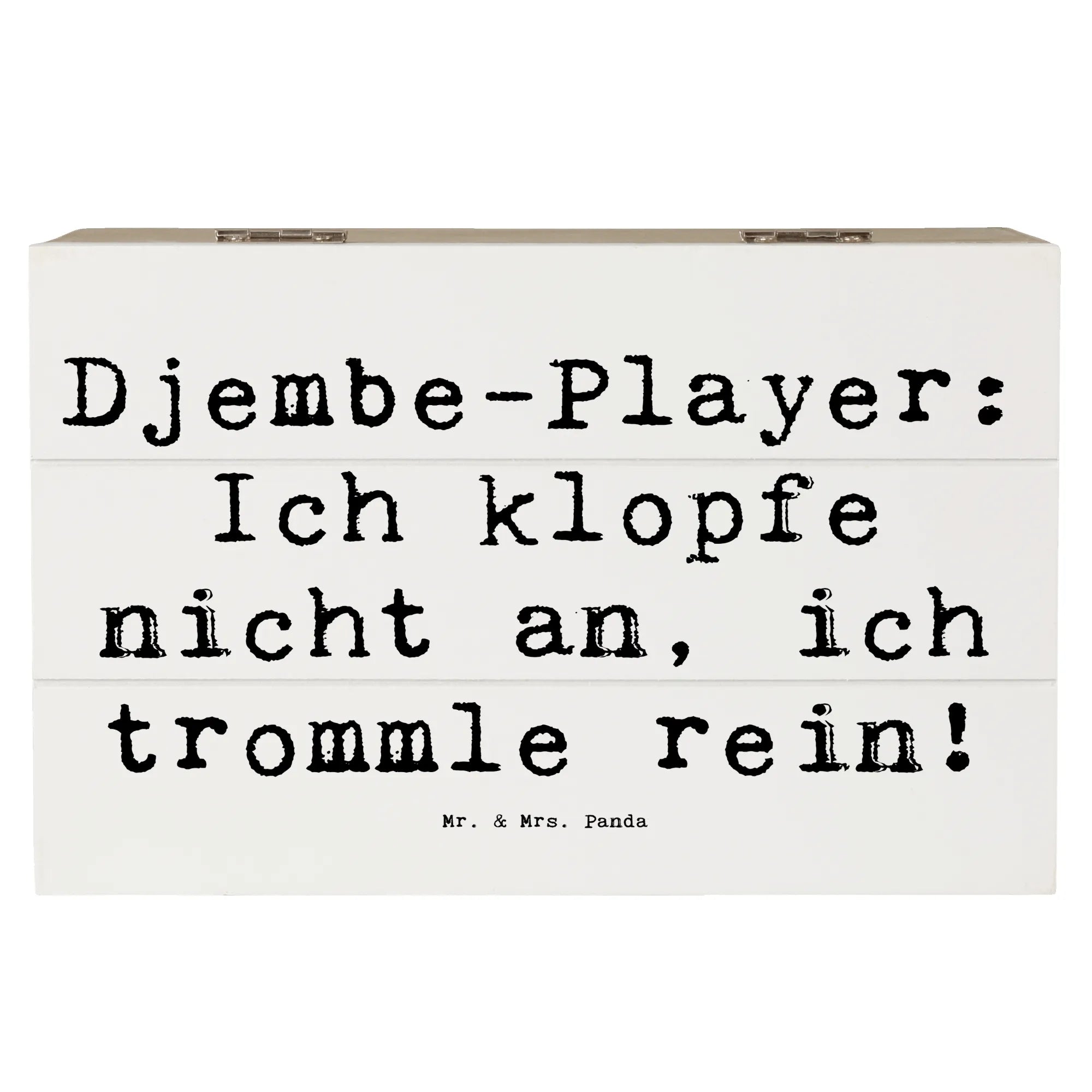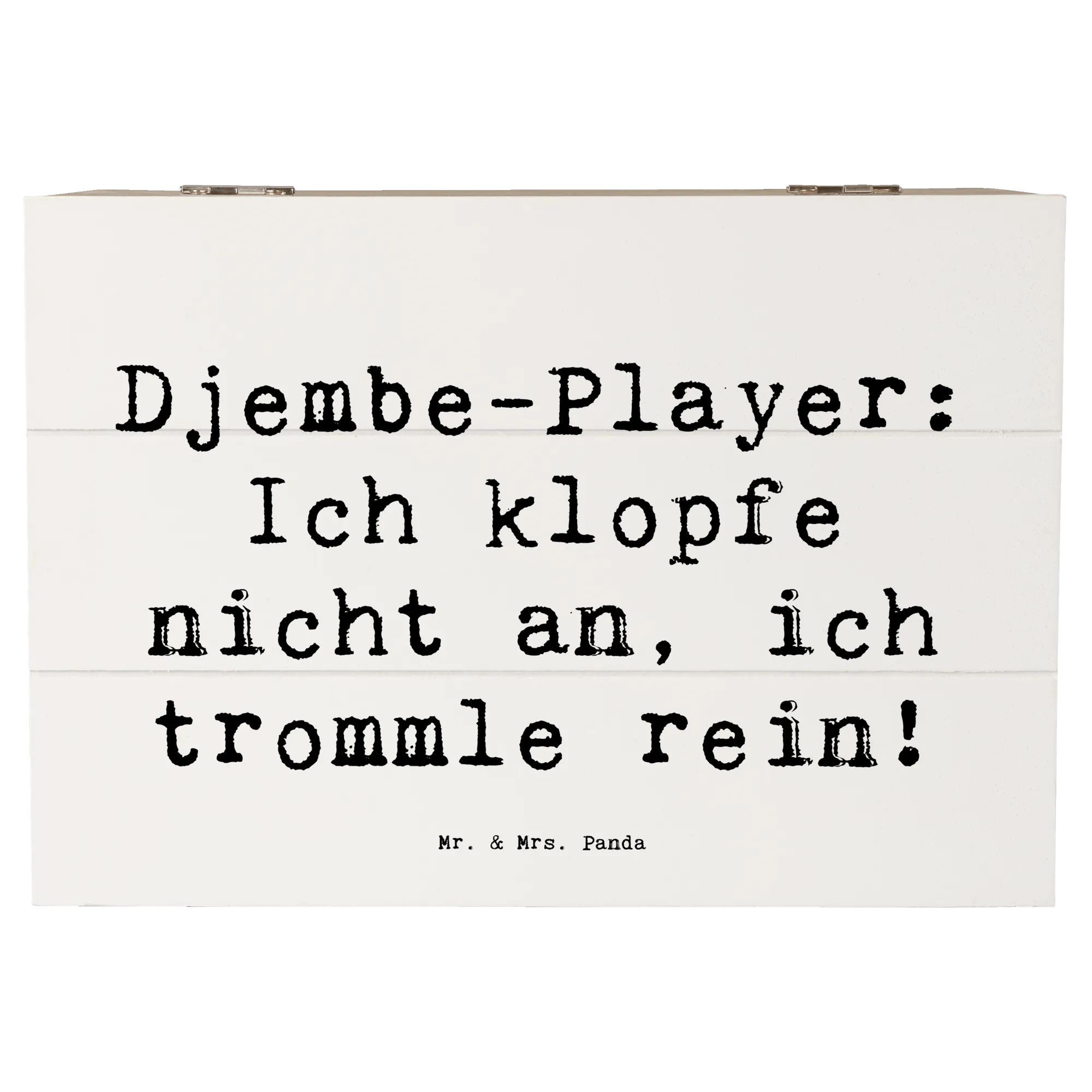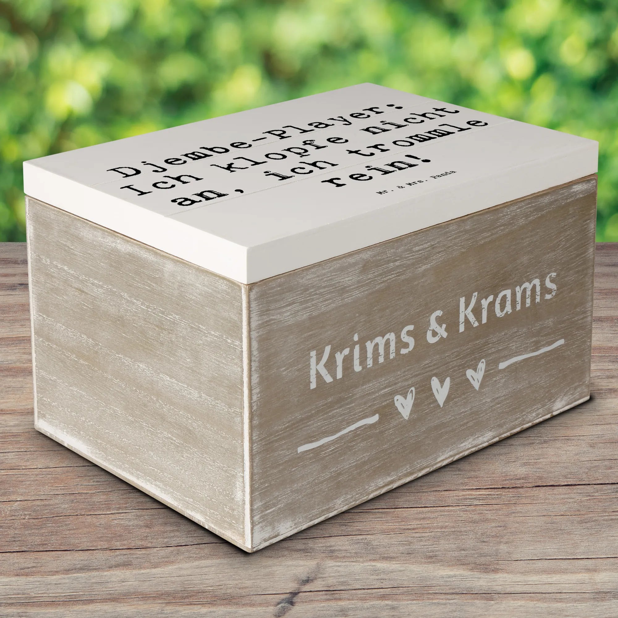 Wooden chest Saying Djembe-Player: Ich klopfe nicht an, ich trommle rein! - 22 x 15 cm - White