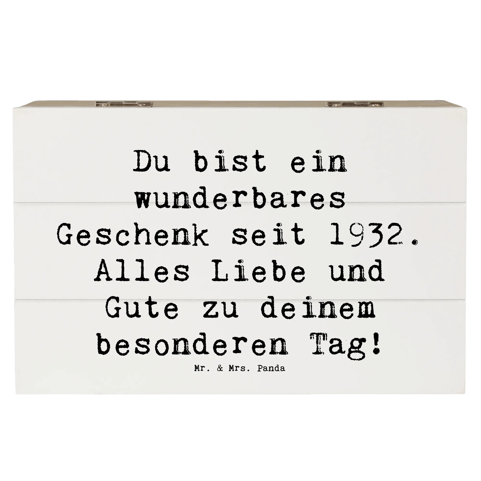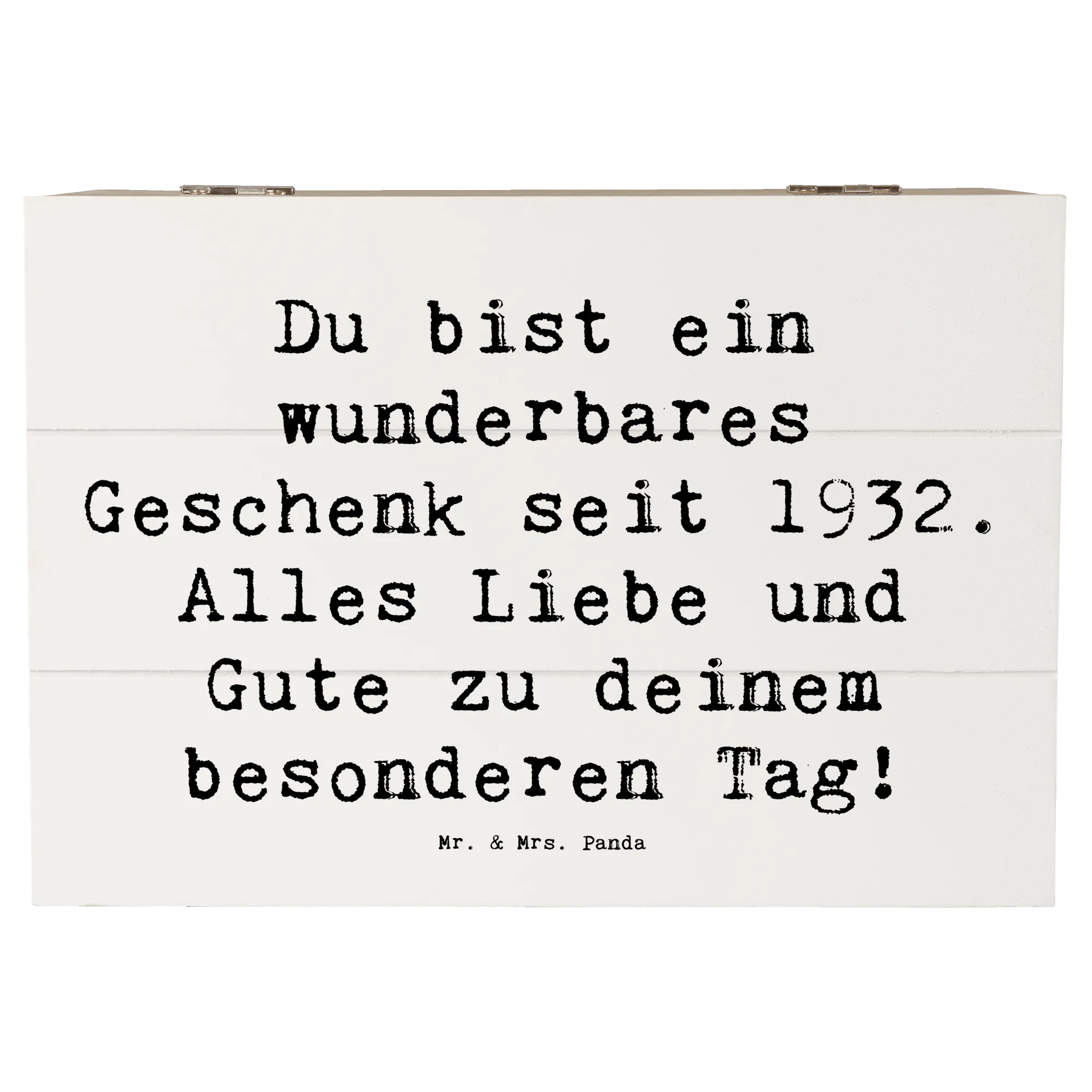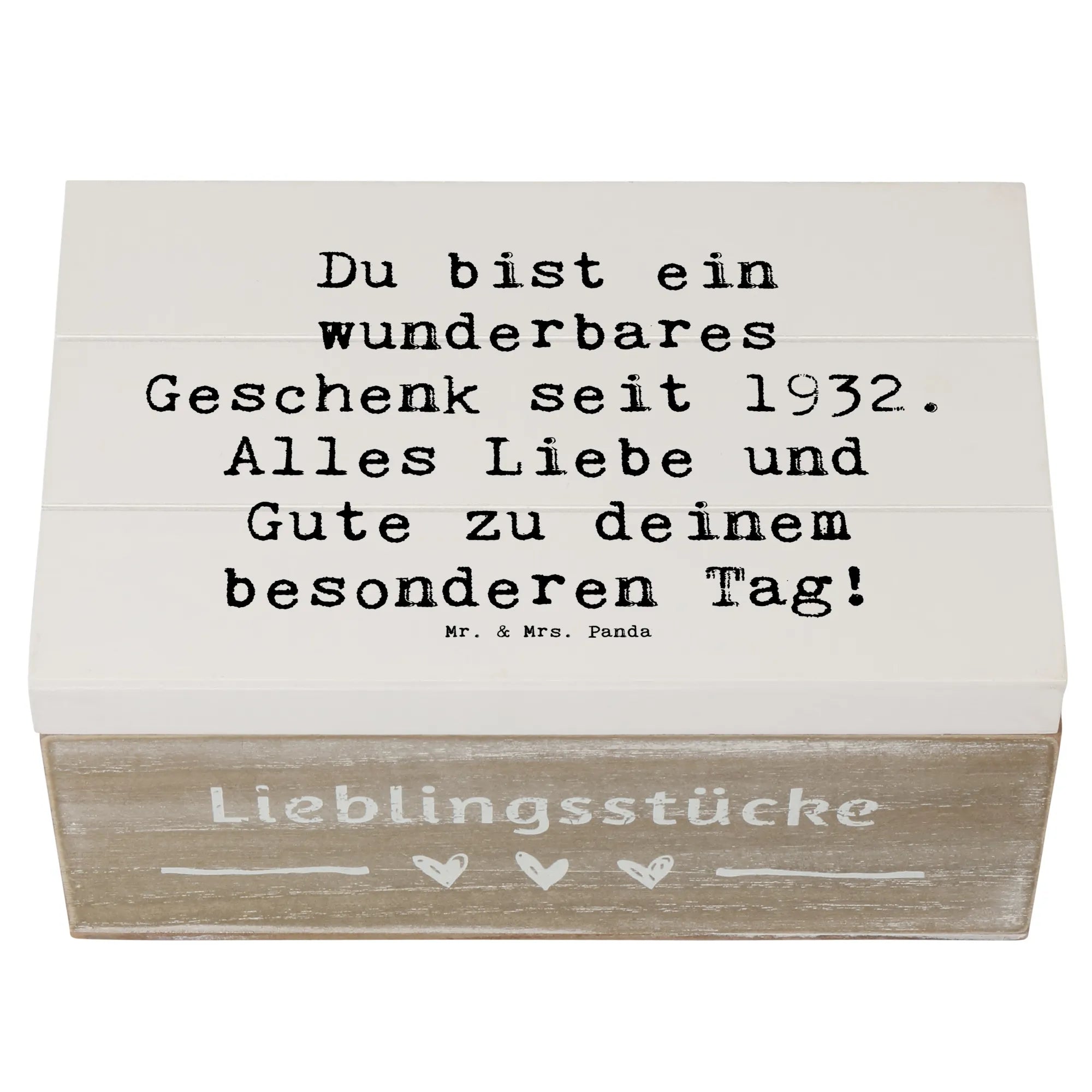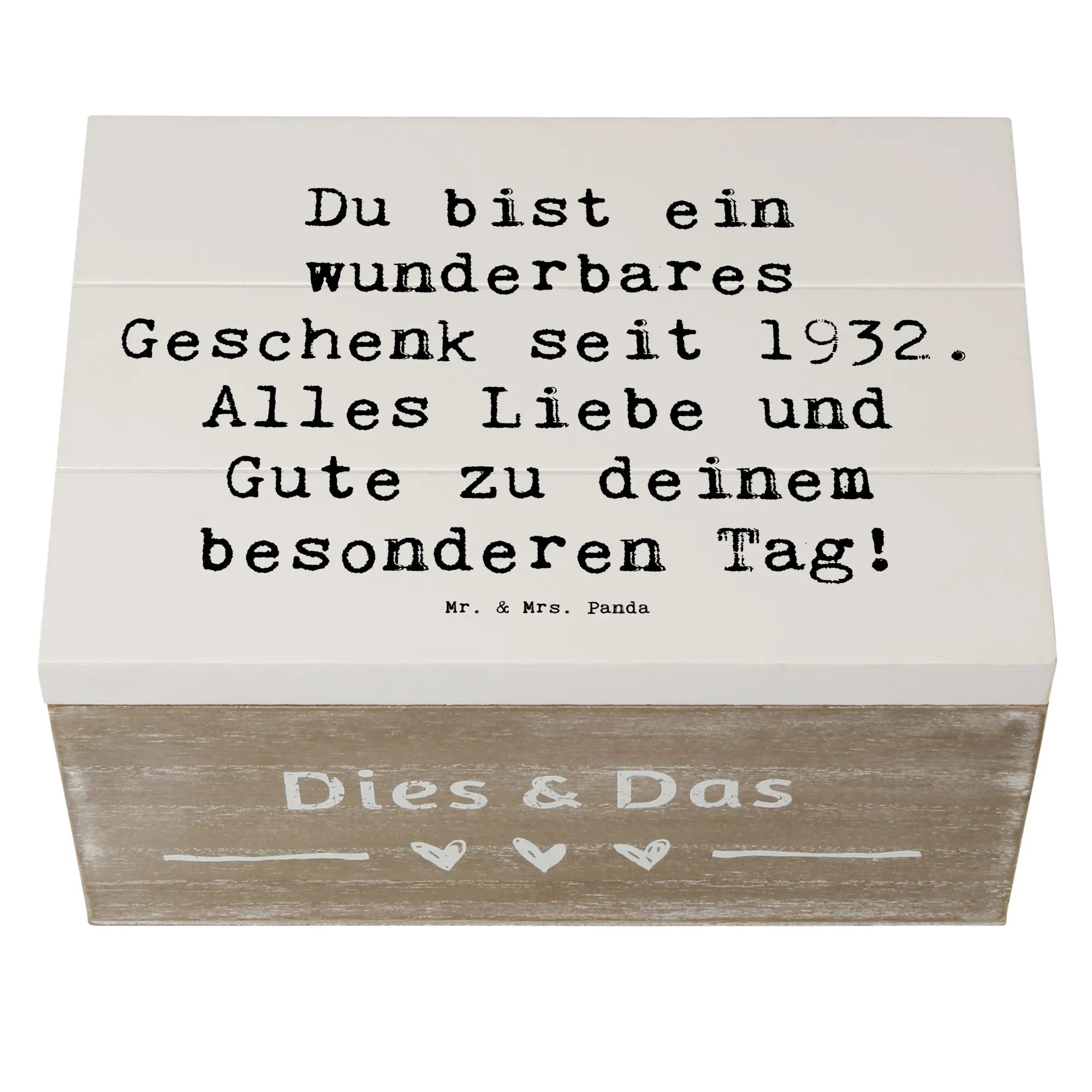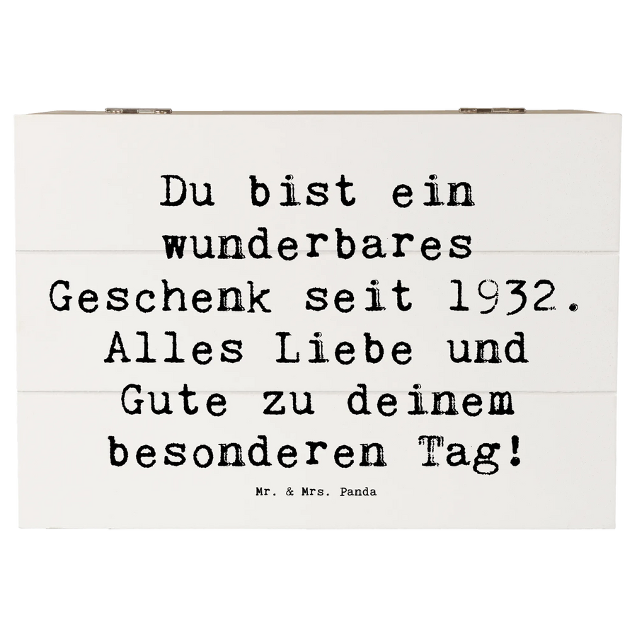 Wooden chest Saying Du bist ein wunderbares Geschenk seit 1932. Alles Liebe und Gute zu deinem besonderen Tag! - 22 x 15 cm - White