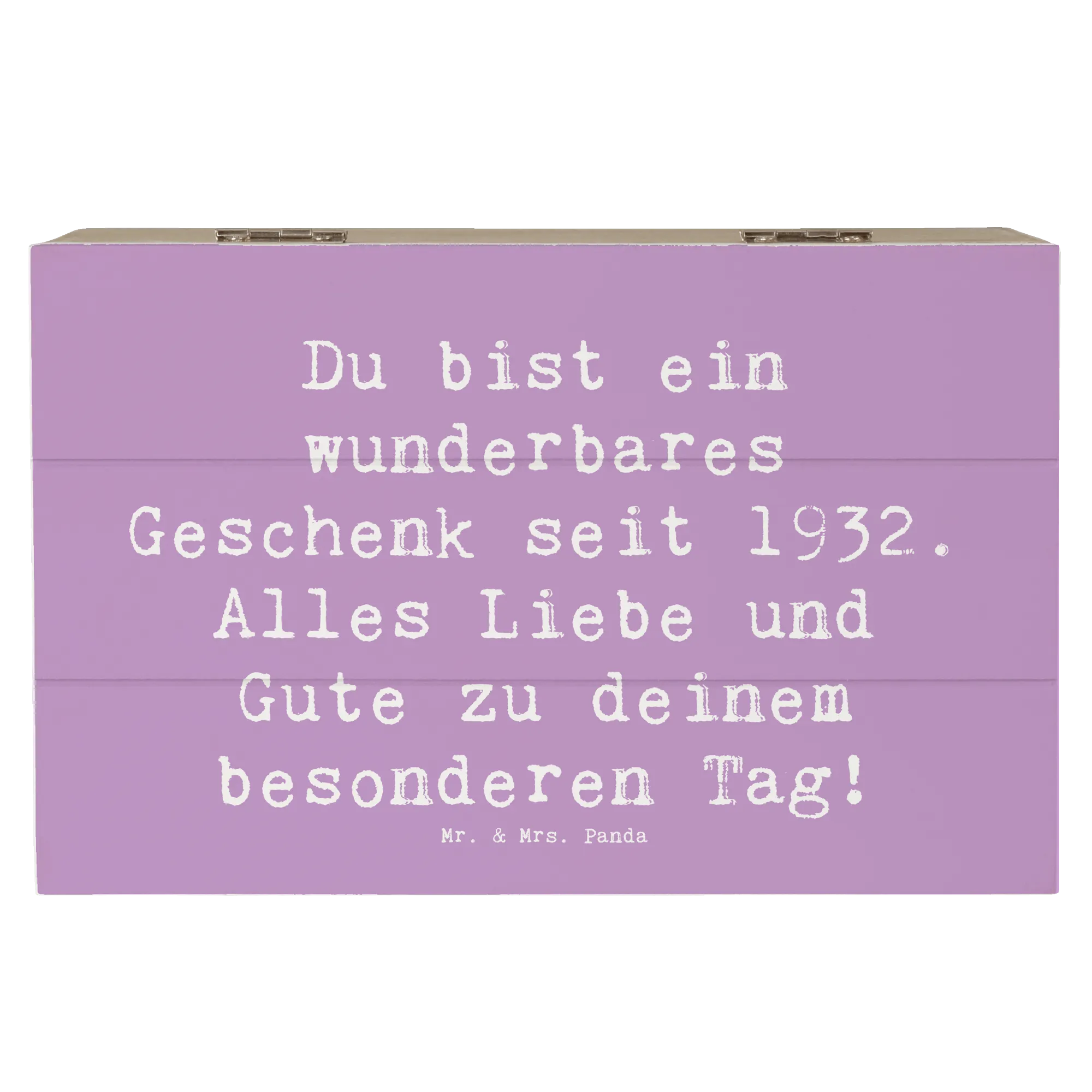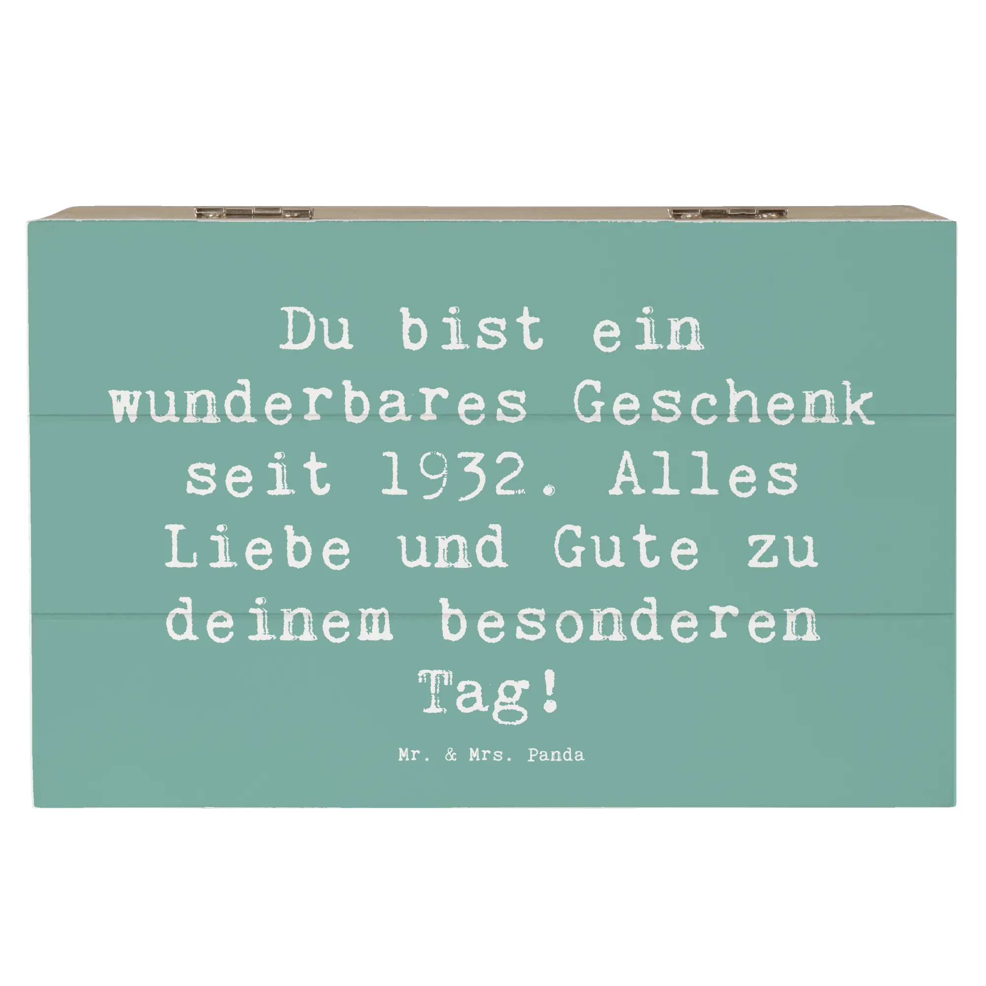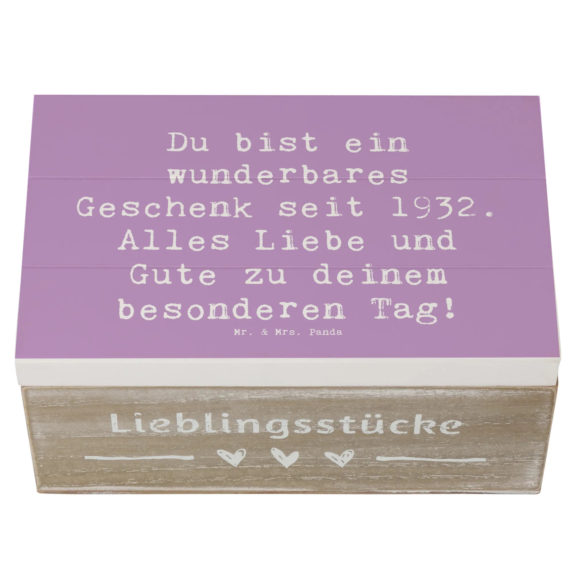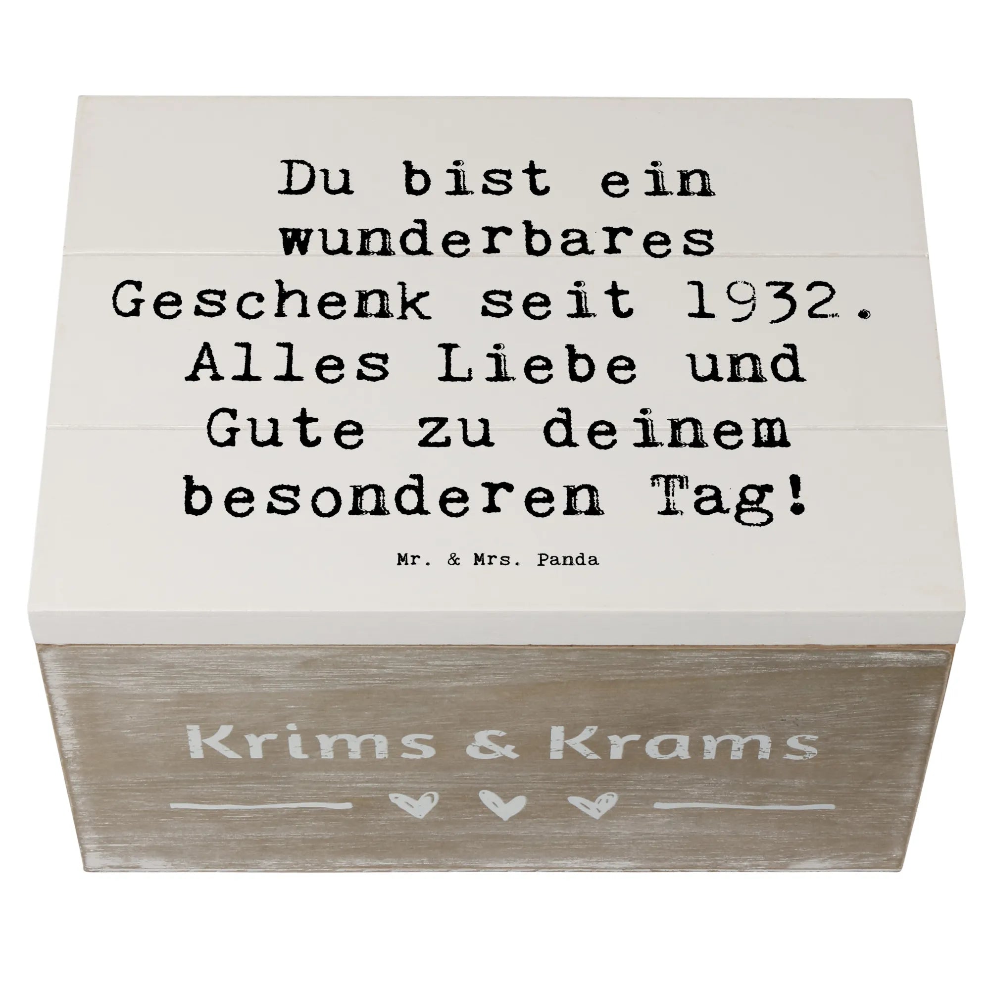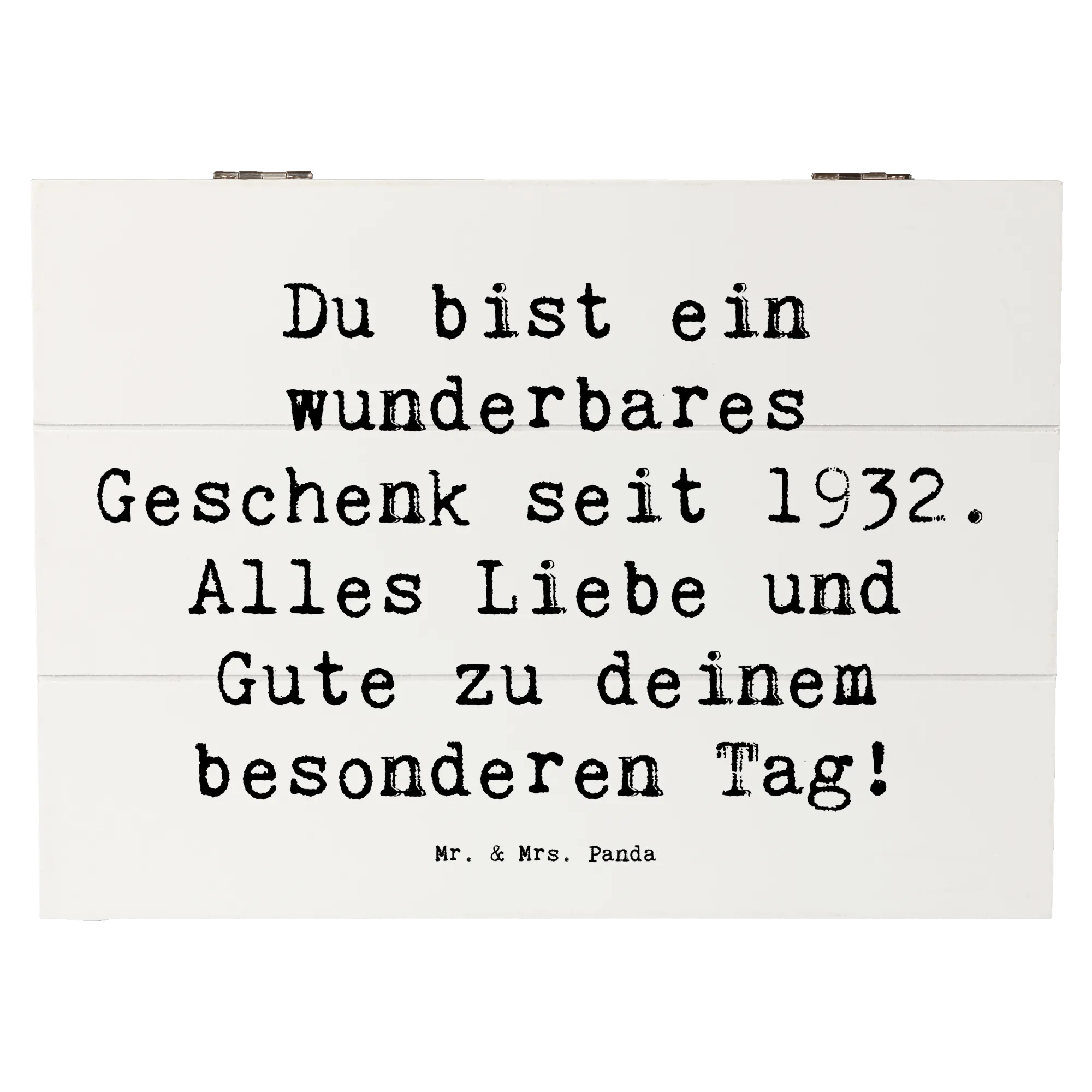 Wooden chest Saying Du bist ein wunderbares Geschenk seit 1932. Alles Liebe und Gute zu deinem besonderen Tag! - 22 x 15 cm - White