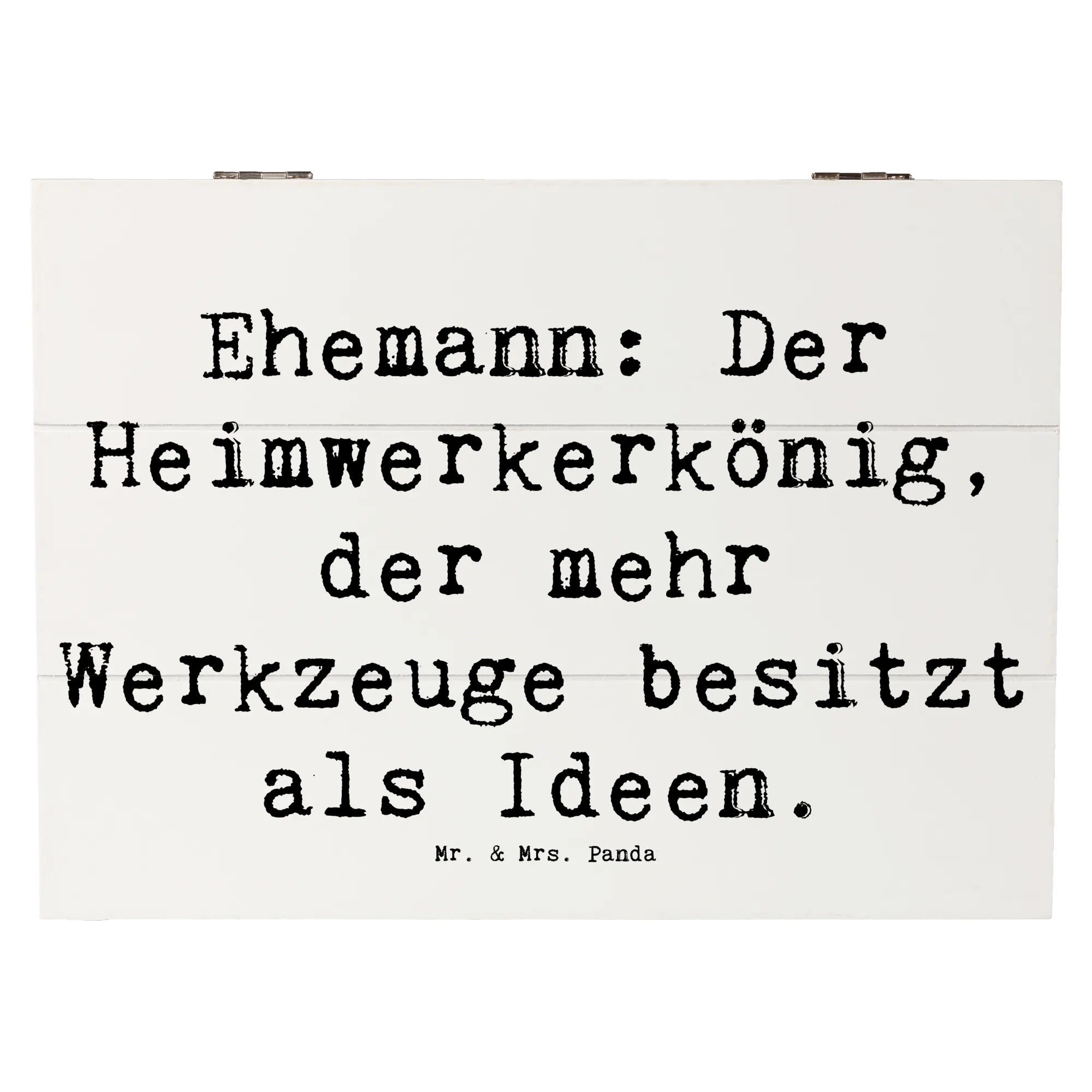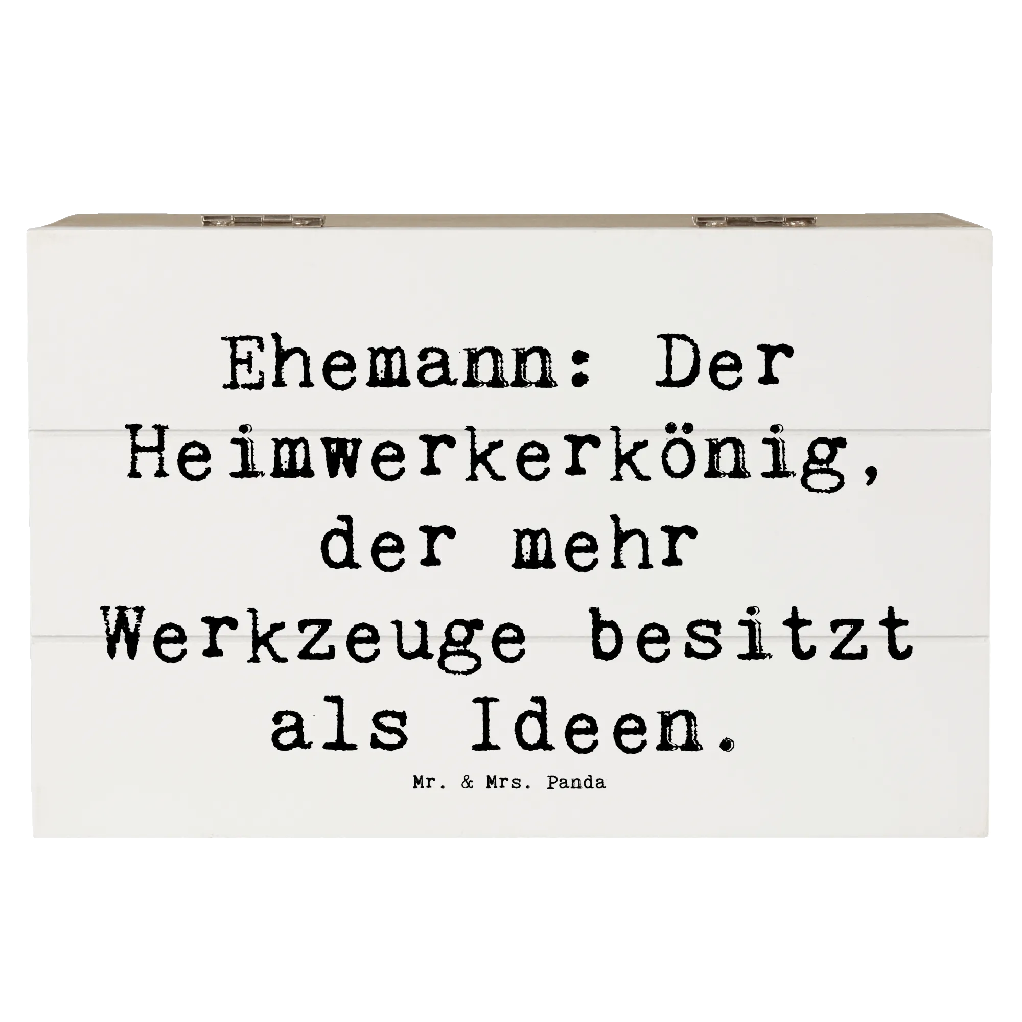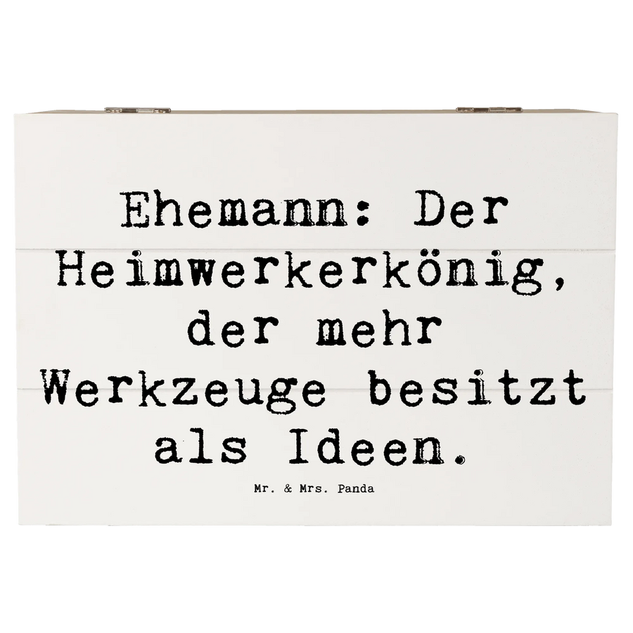 Wooden chest Saying Ehemann: Der Heimwerkerkönig, der mehr Werkzeuge besitzt als Ideen. - 22 x 15 cm - White
