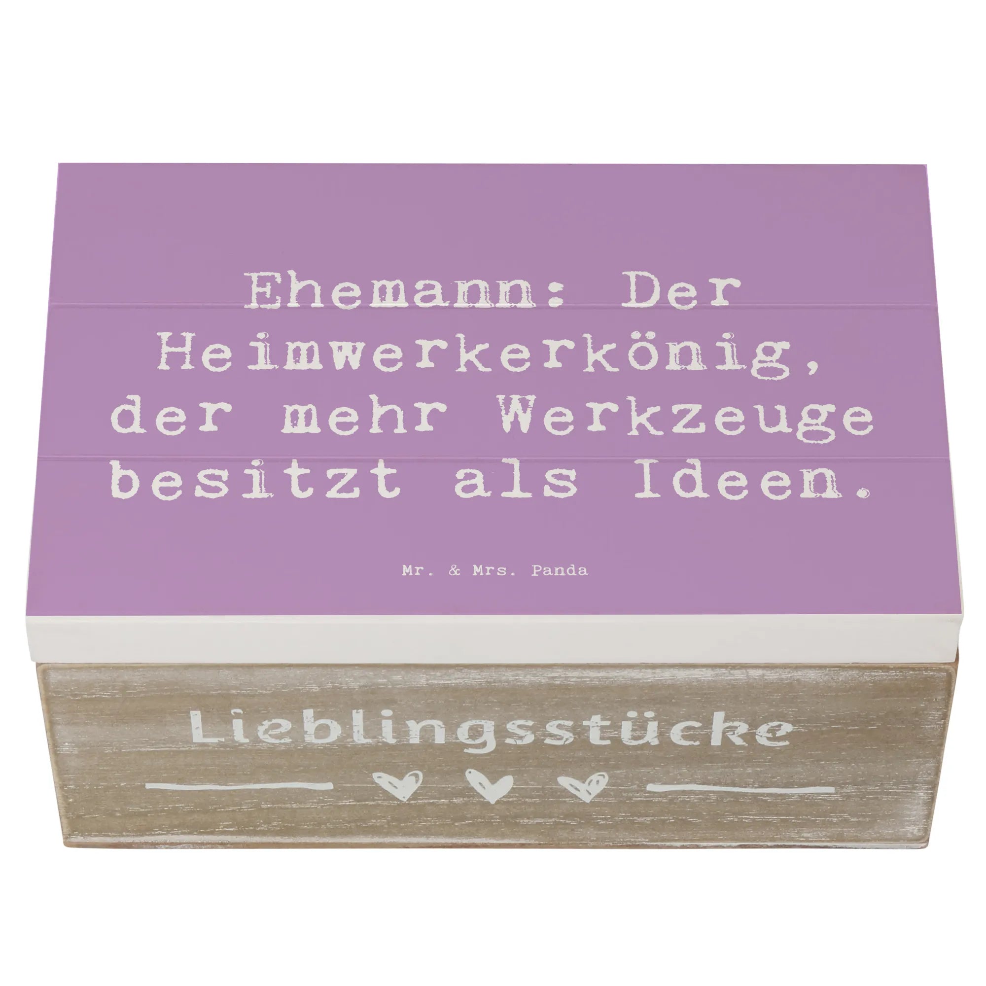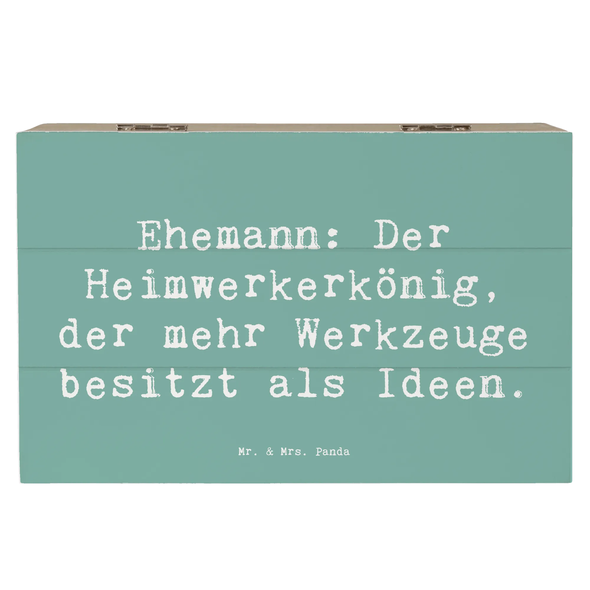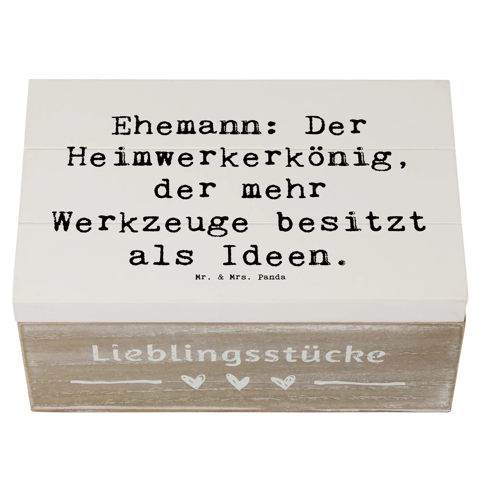 Wooden chest Saying Ehemann: Der Heimwerkerkönig, der mehr Werkzeuge besitzt als Ideen. - 22 x 15 cm - White