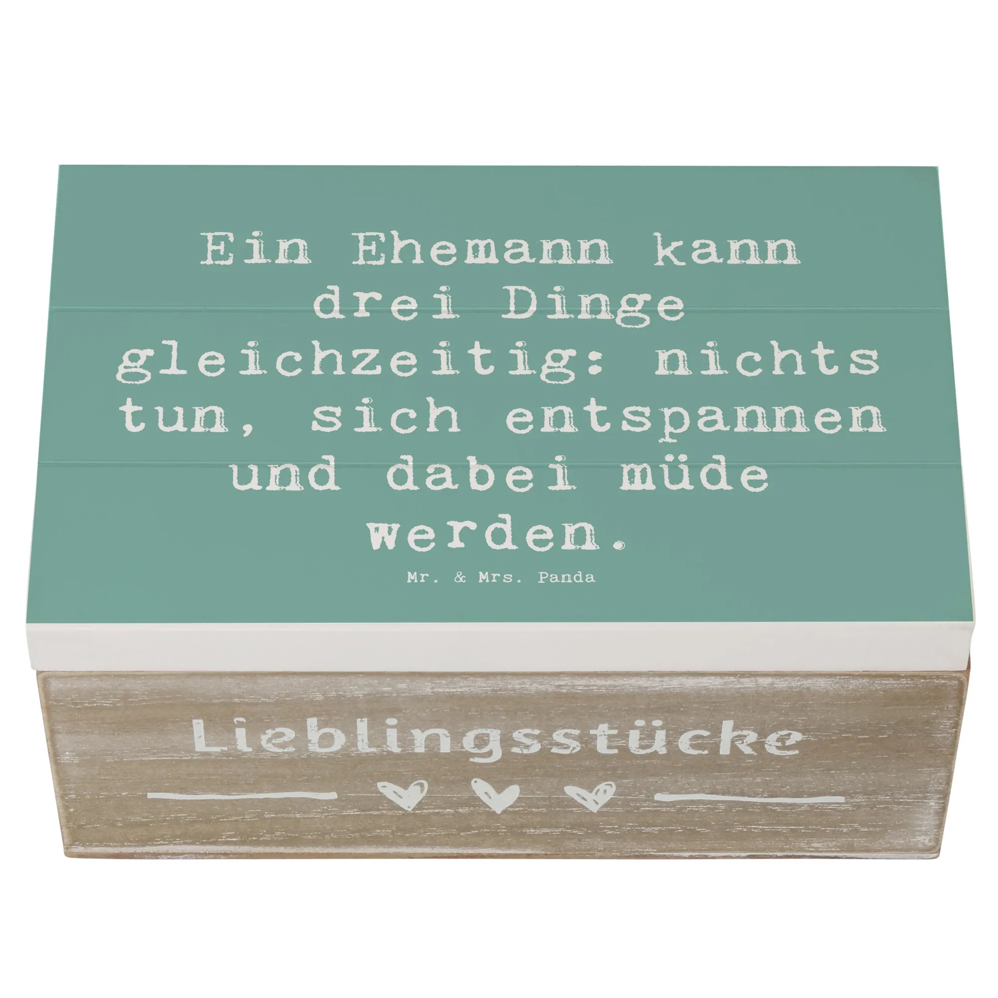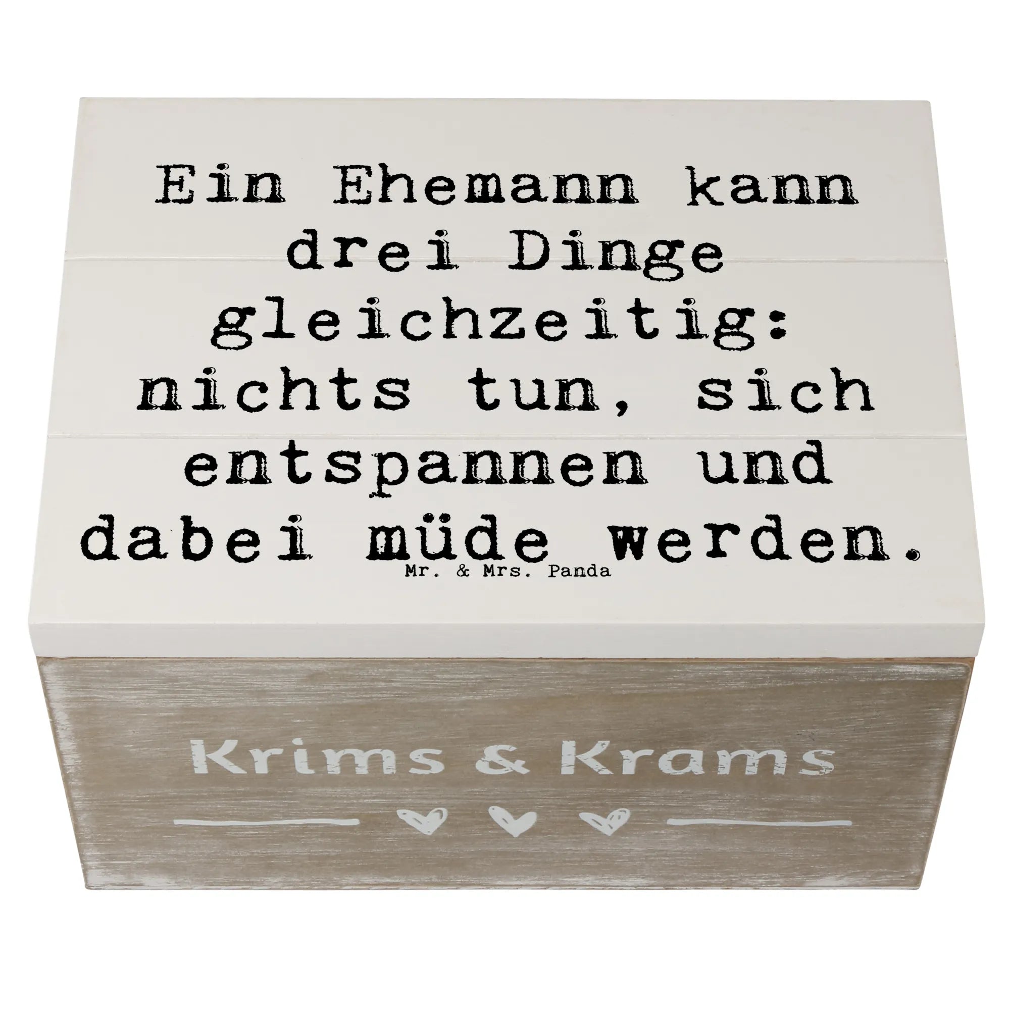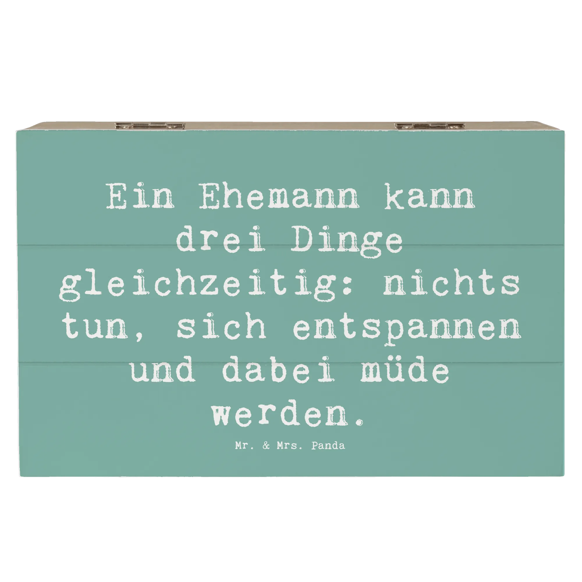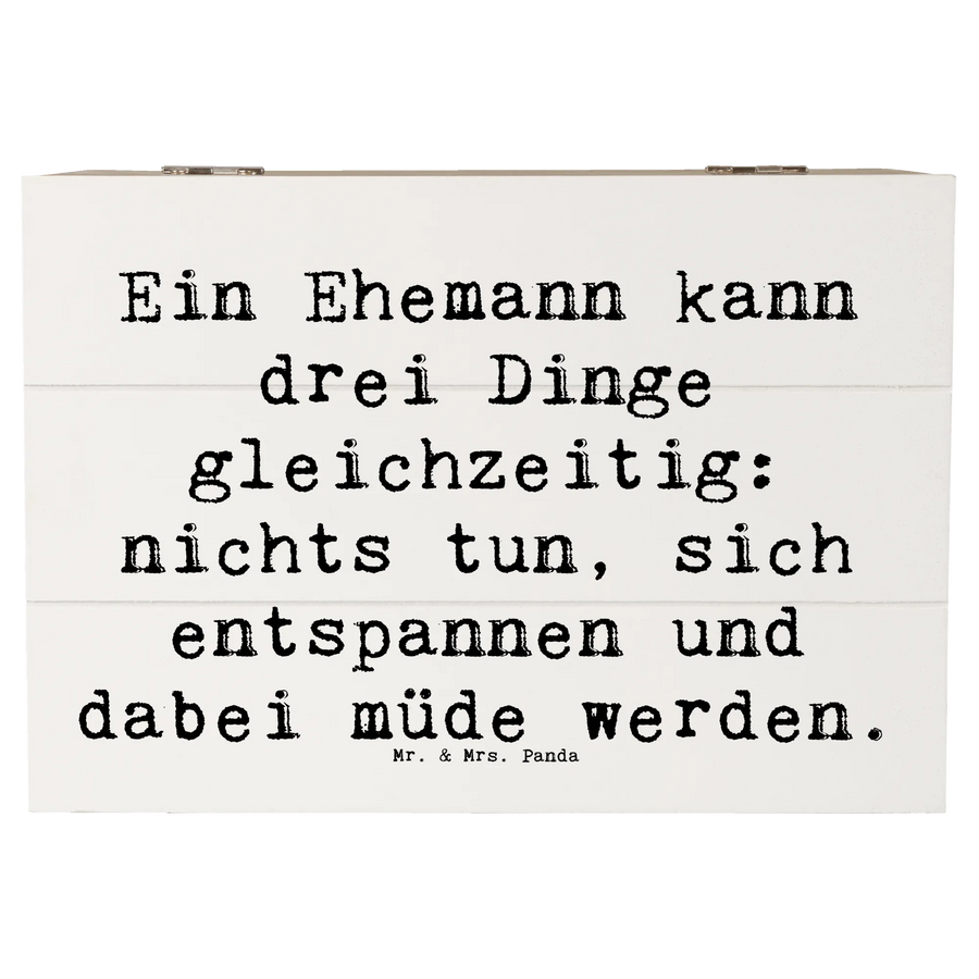 Wooden chest Saying Ein Ehemann kann drei Dinge gleichzeitig: nichts t – Mr. & Mrs. Panda