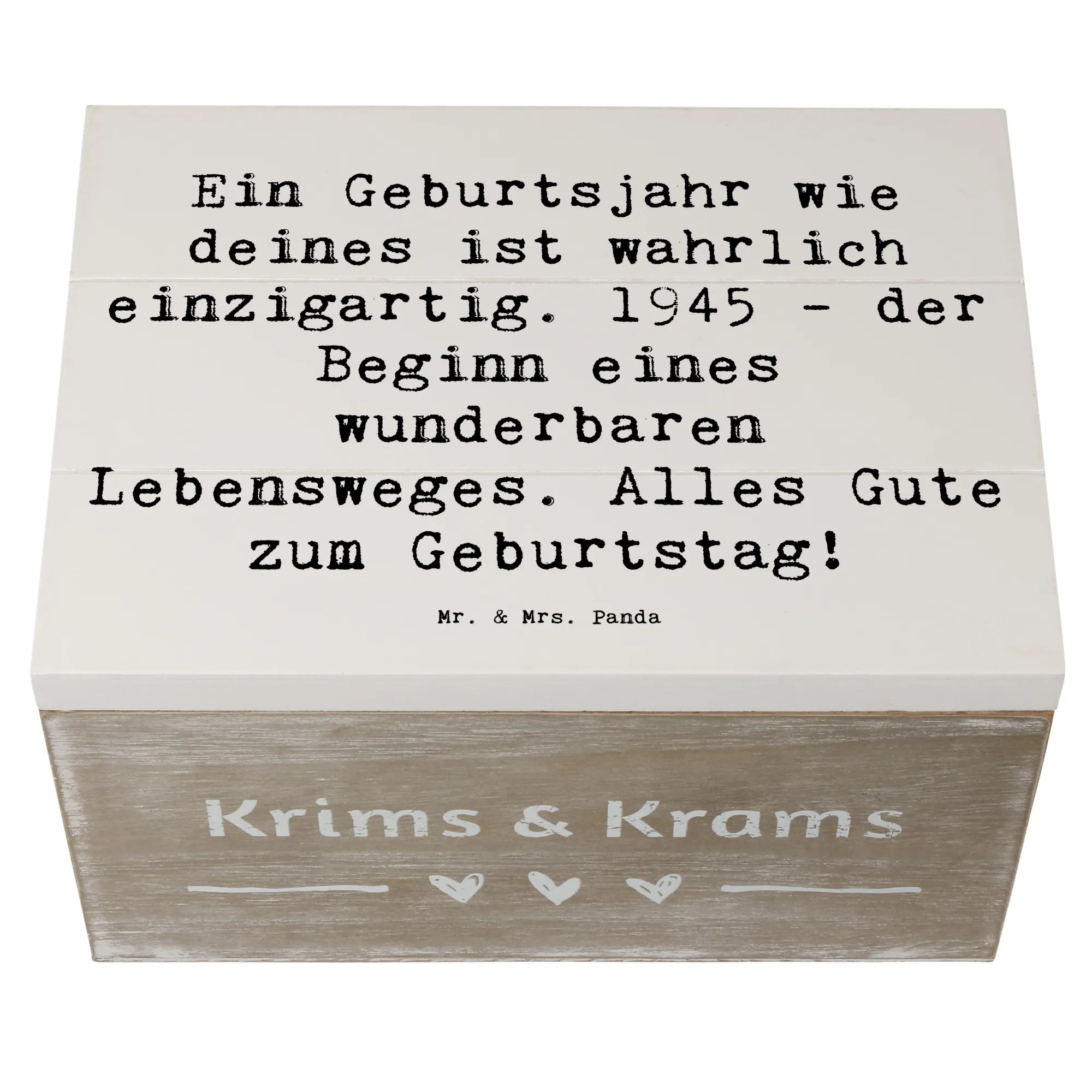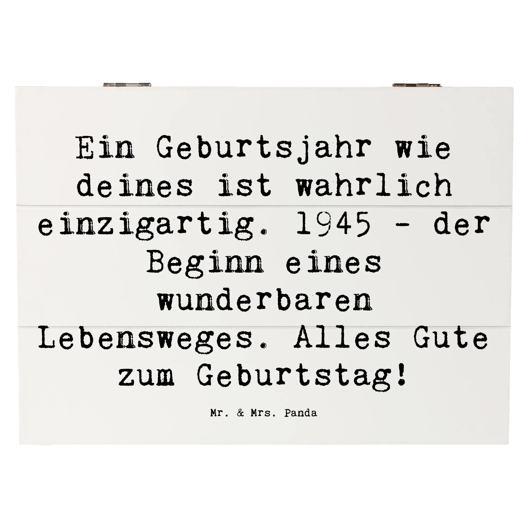 Wooden chest Saying Ein Geburtsjahr wie deines ist wahrlich einzigartig. 1945 - der Beginn eines wunderbaren Lebensweges. Alles Gute zum Geburtstag! - 22 x 15 cm - White