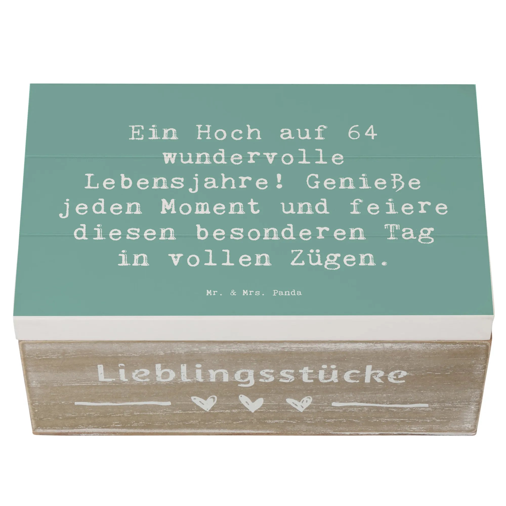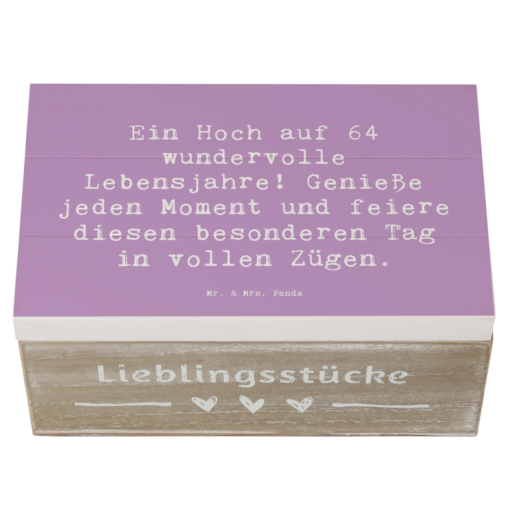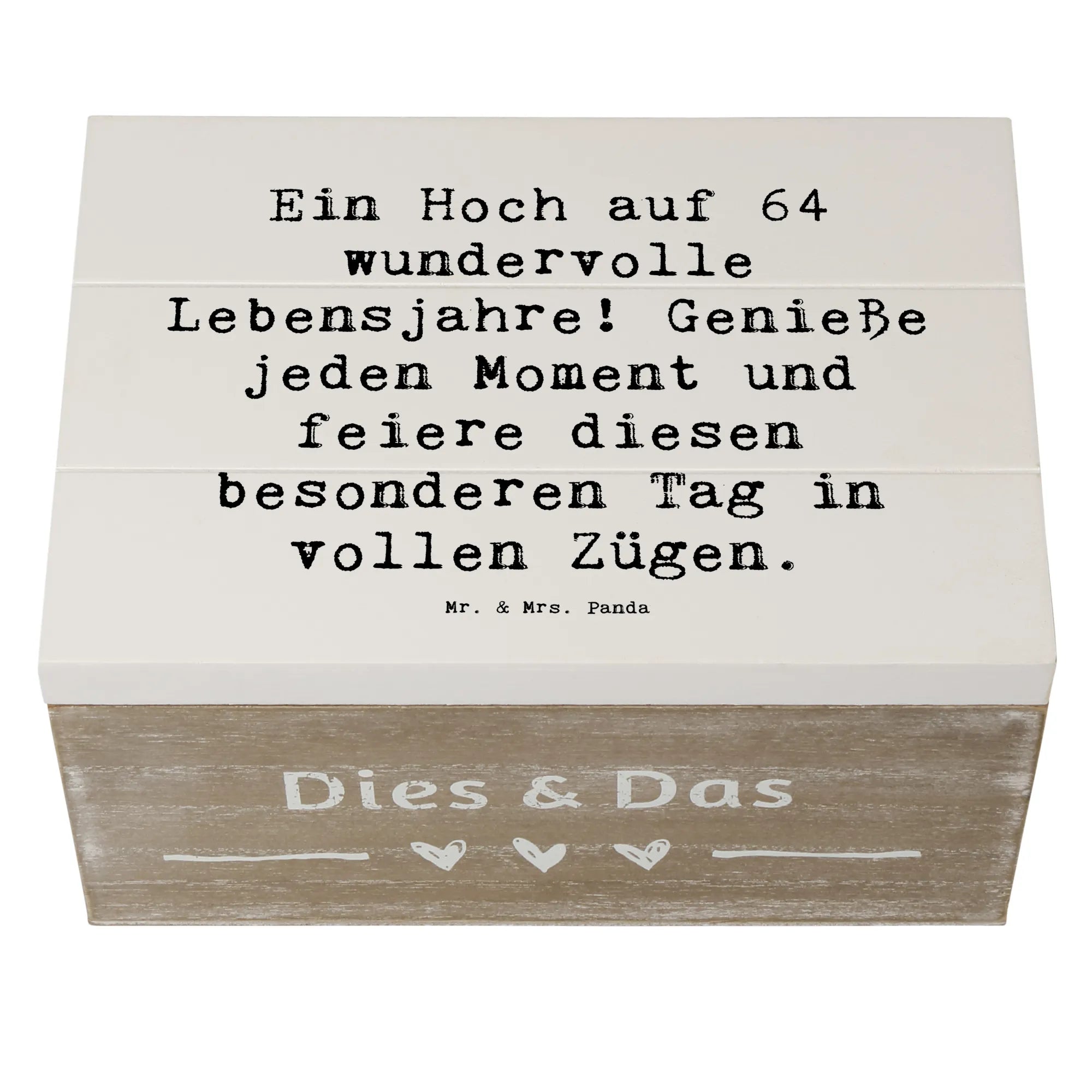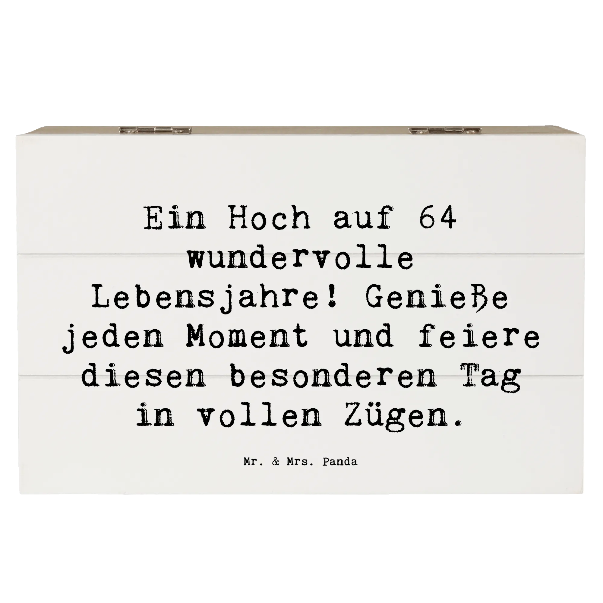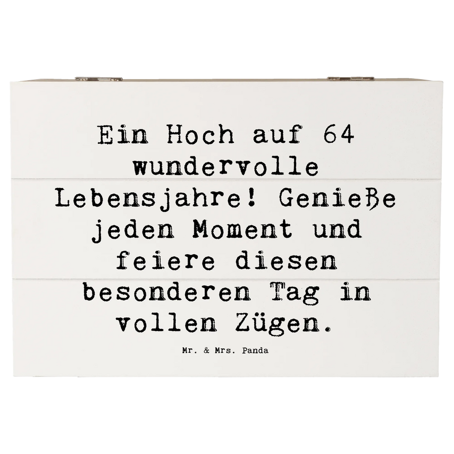 Wooden chest Saying Ein Hoch auf 64 wundervolle Lebensjahre! Genieße jeden Moment und feiere diesen besonderen Tag in vollen Zügen. - 22 x 15 cm - White