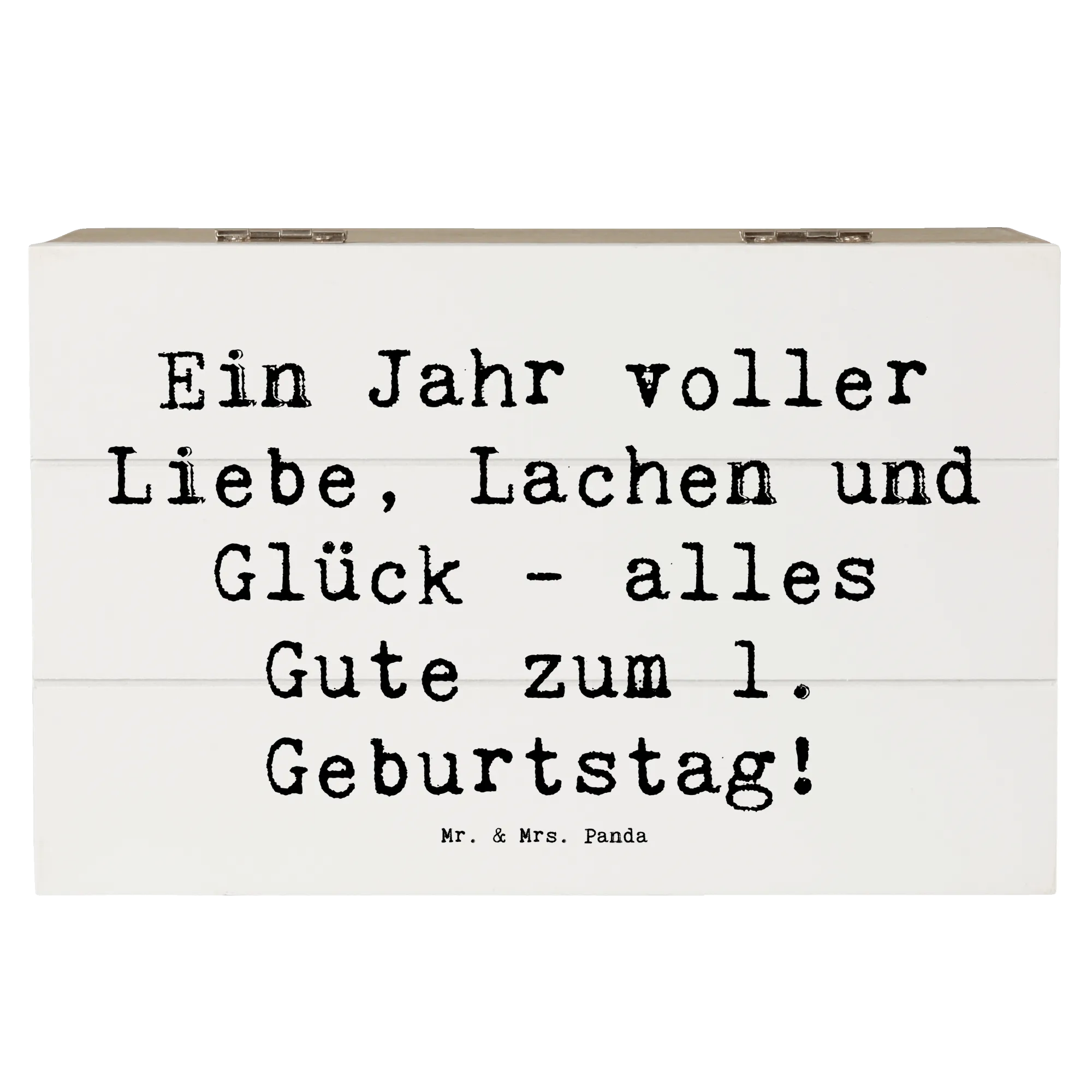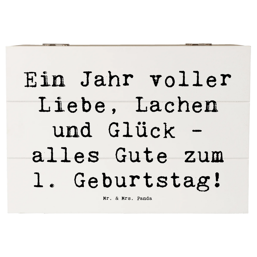 Wooden chest Saying Ein Jahr voller Liebe, Lachen und Glück - alles Gute zum 1. Geburtstag! - 22 x 15 cm - White