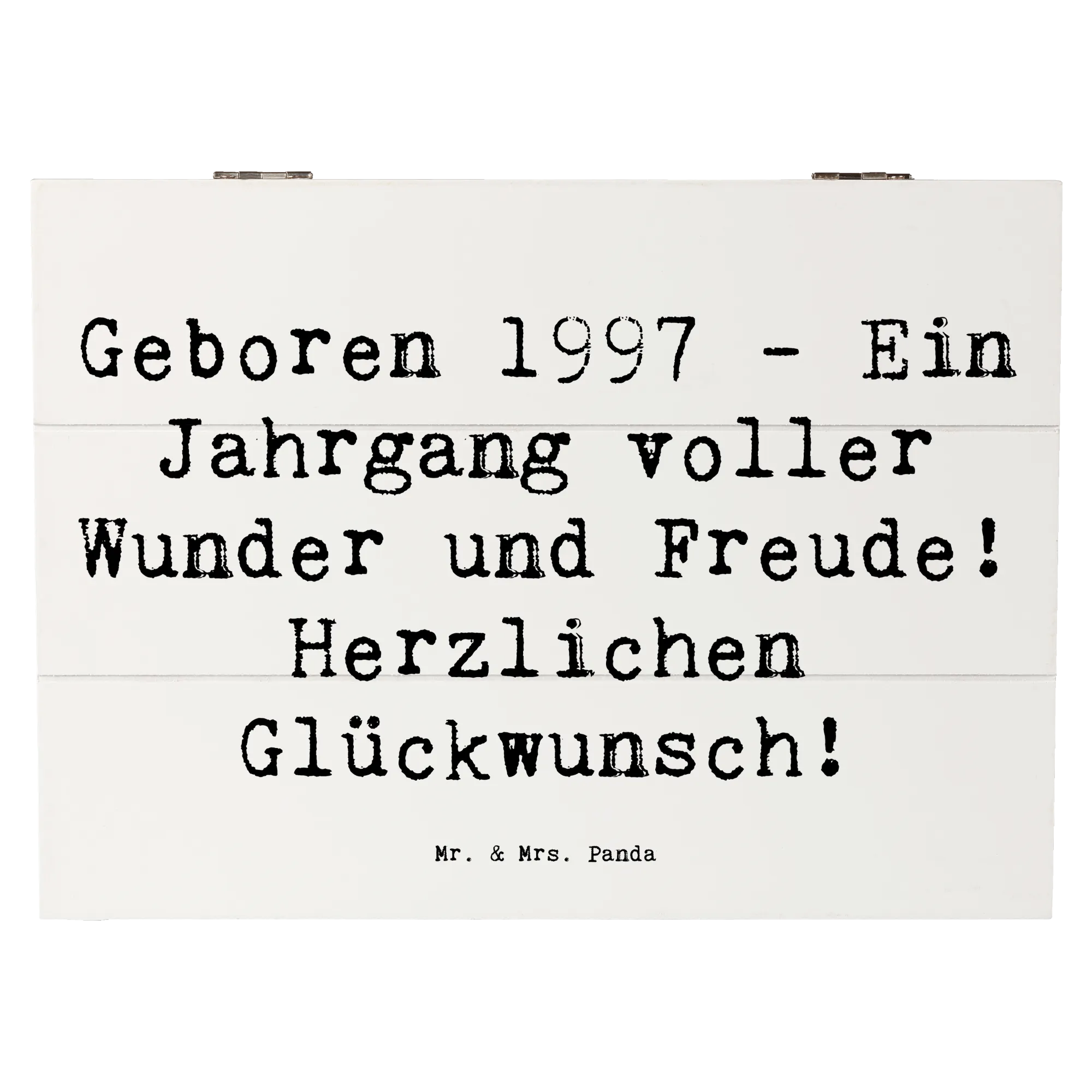 Wooden chest Saying Geboren 1997 - Ein Jahrgang voller Wunder und Freude! Herzlichen Glückwunsch! - 22 x 15 cm - White