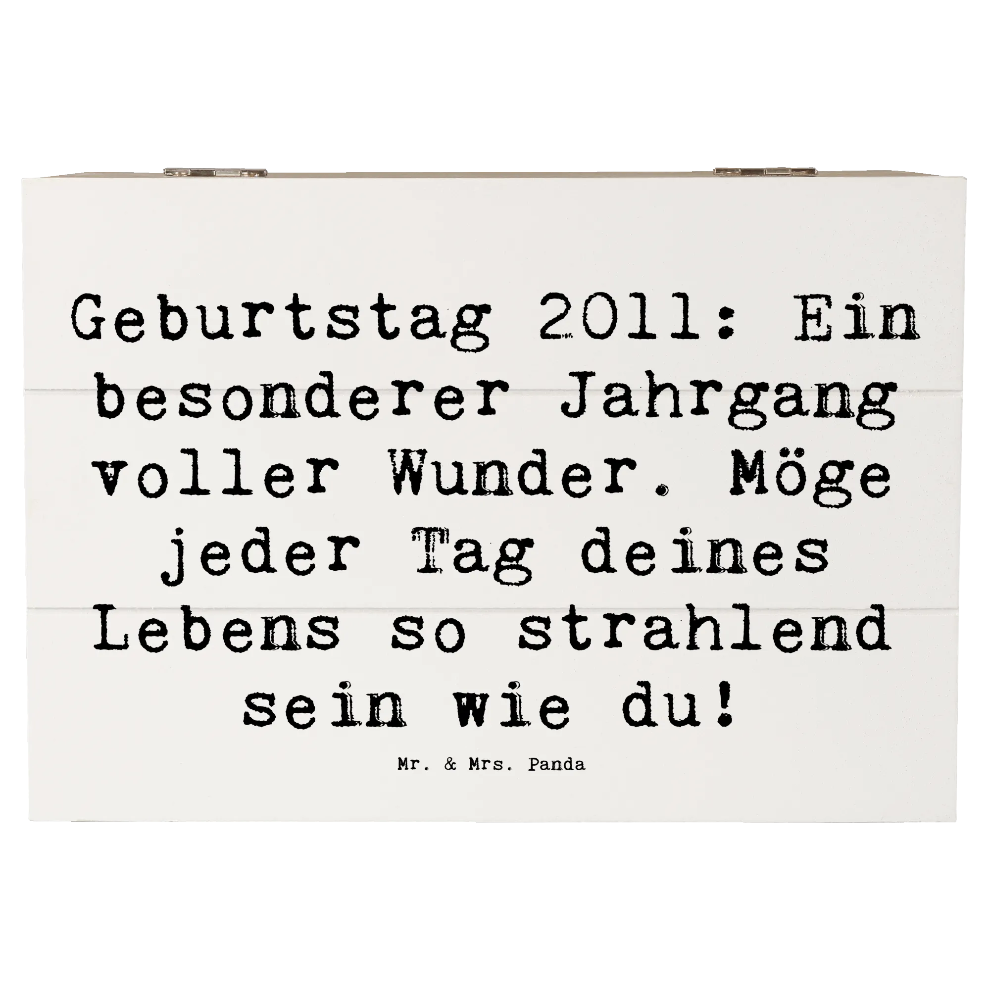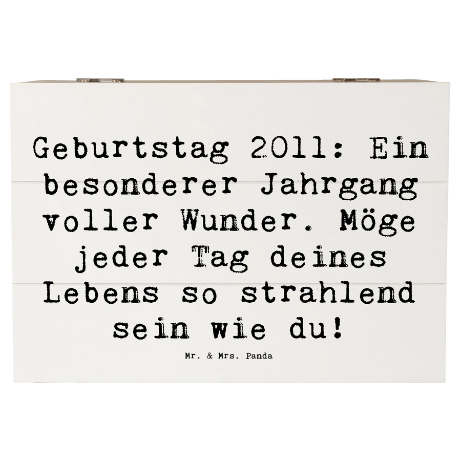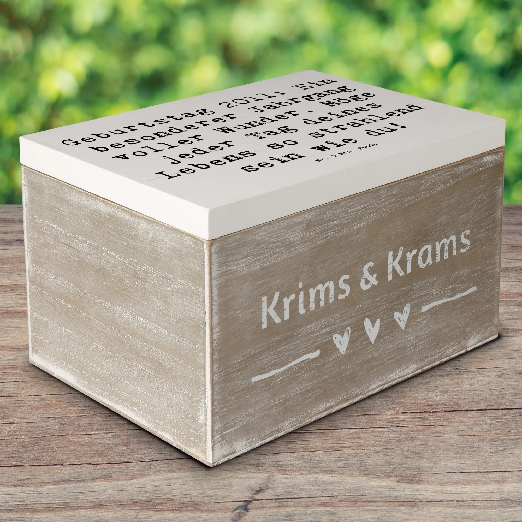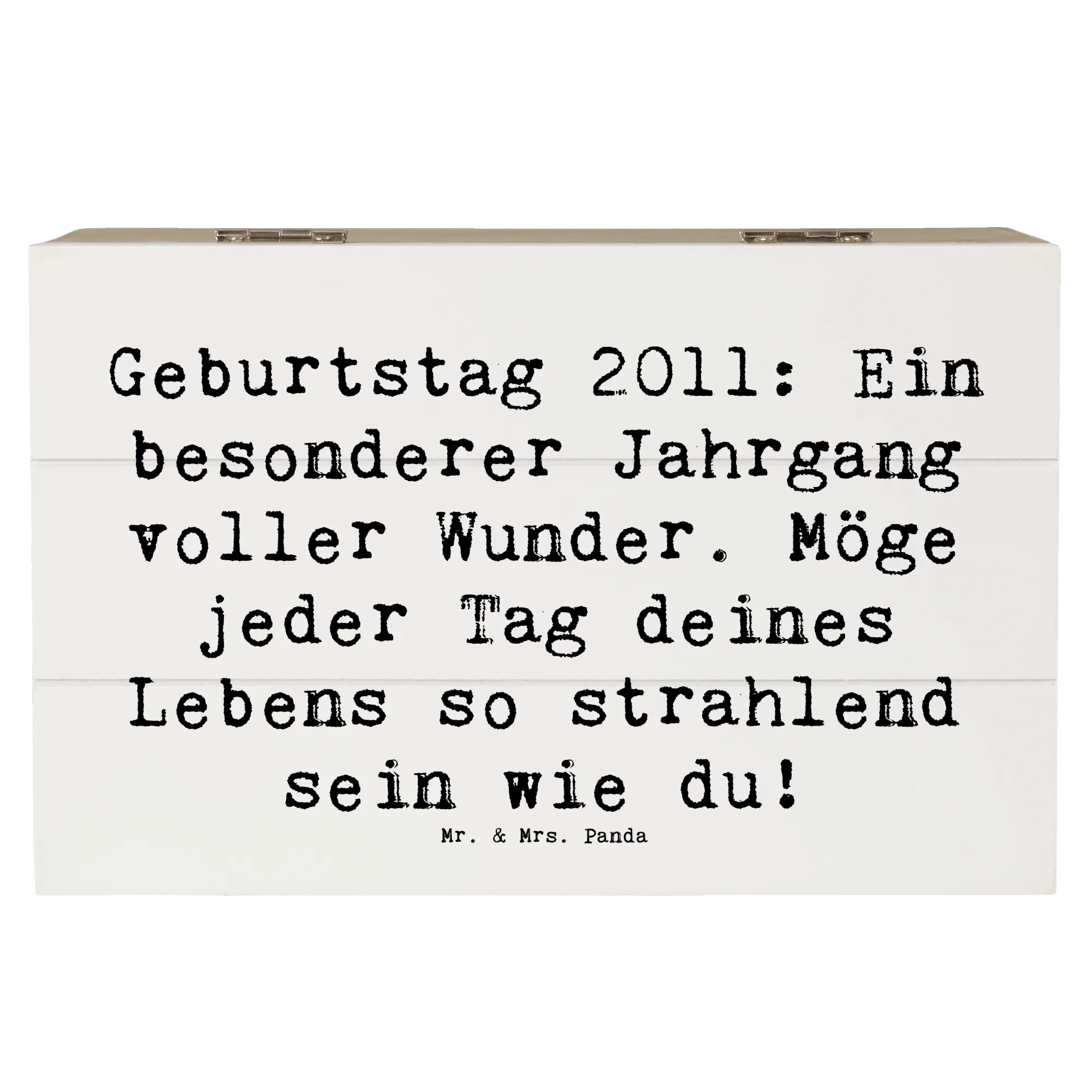 Wooden chest Saying Geburtstag 2011: Ein besonderer Jahrgang voller Wunder. Möge jeder Tag deines Lebens so strahlend sein wie du! - 22 x 15 cm - White