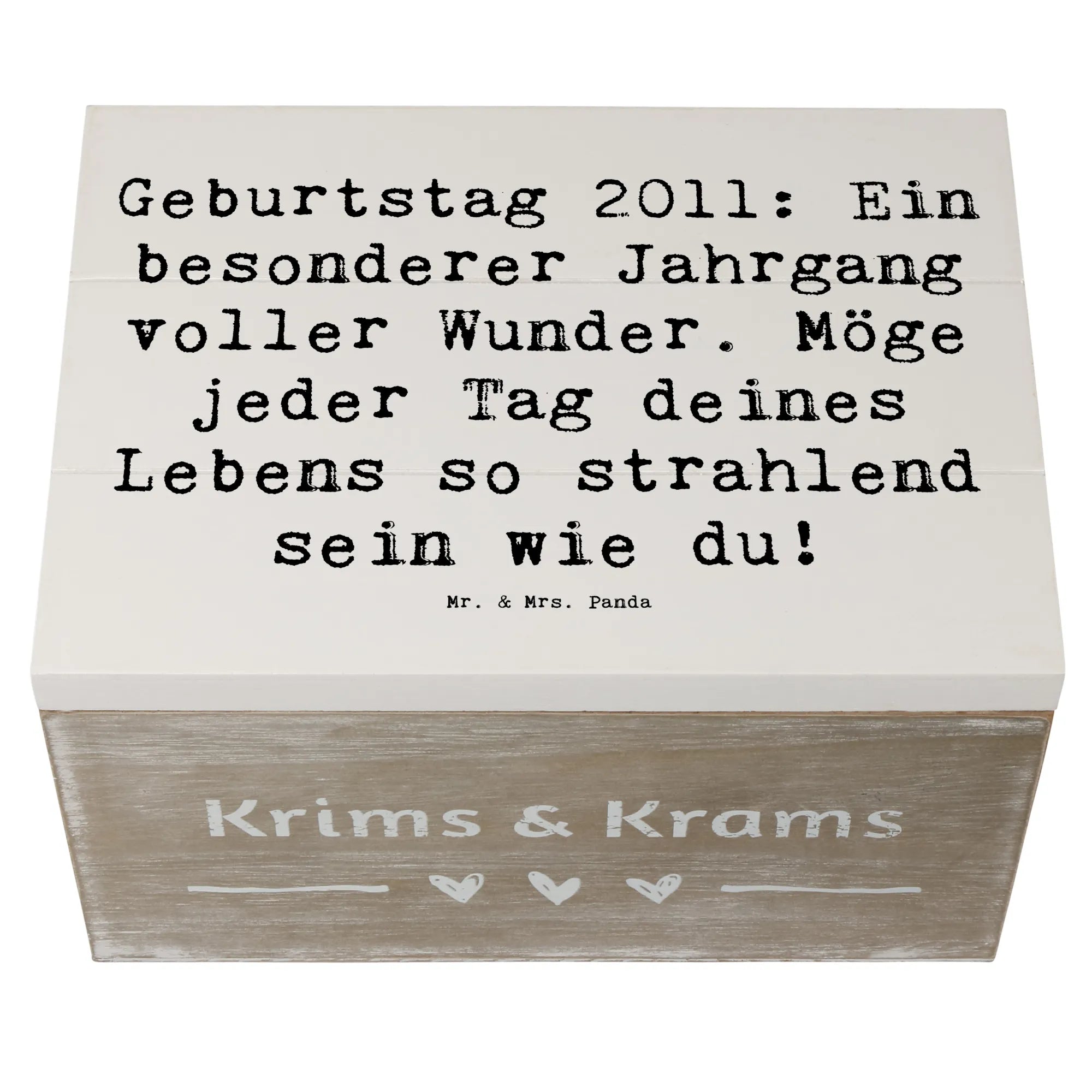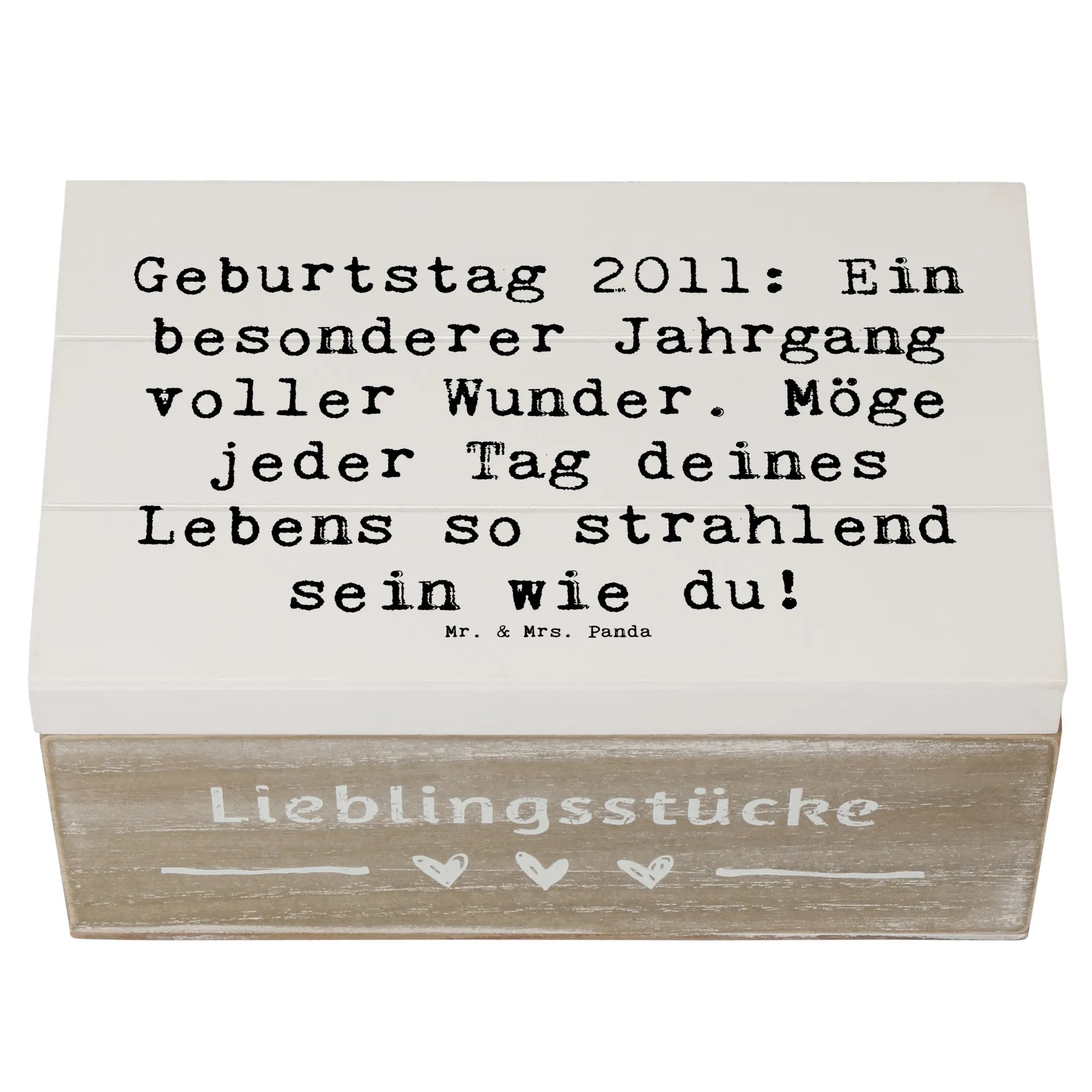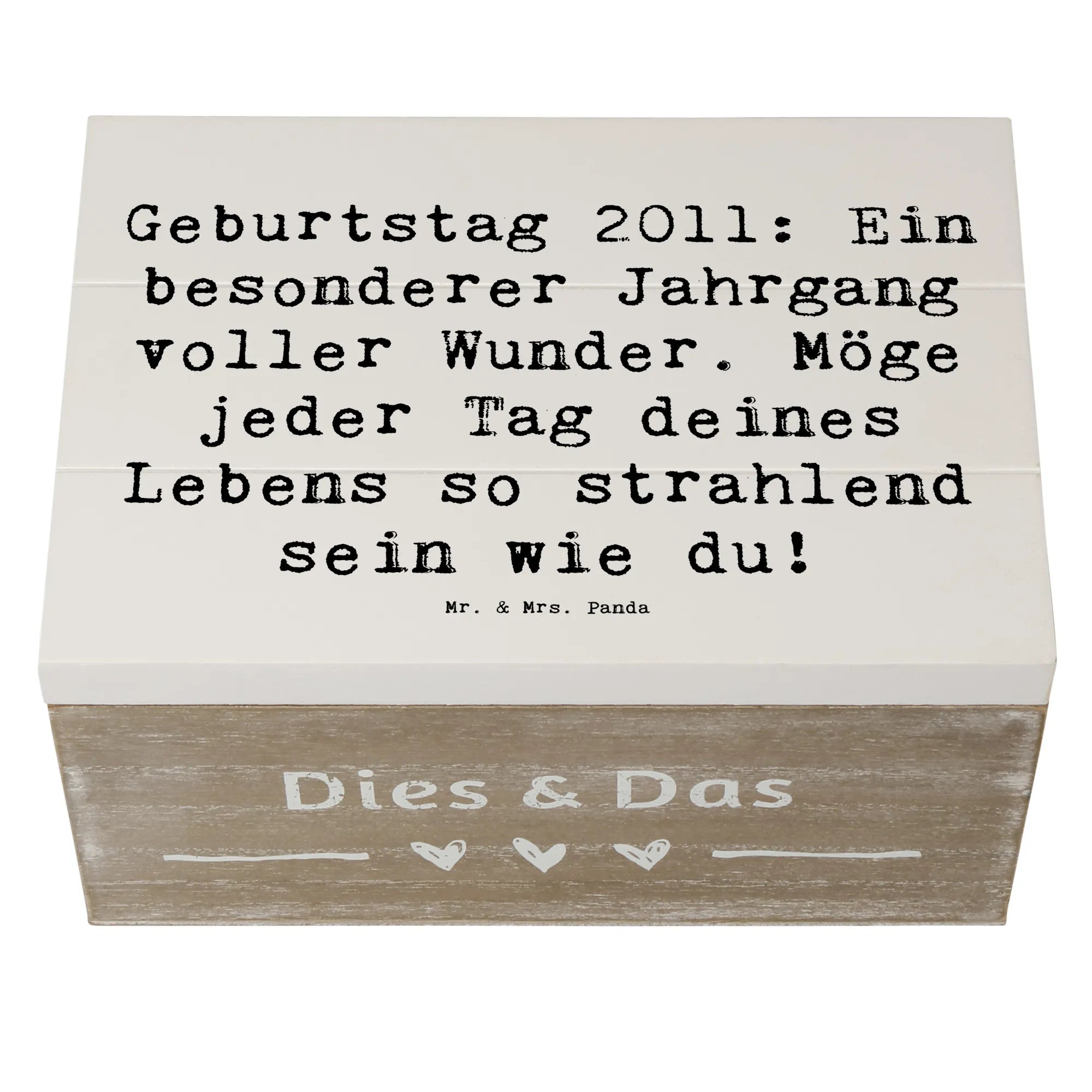 Wooden chest Saying Geburtstag 2011: Ein besonderer Jahrgang voller Wunder. Möge jeder Tag deines Lebens so strahlend sein wie du! - 22 x 15 cm - White