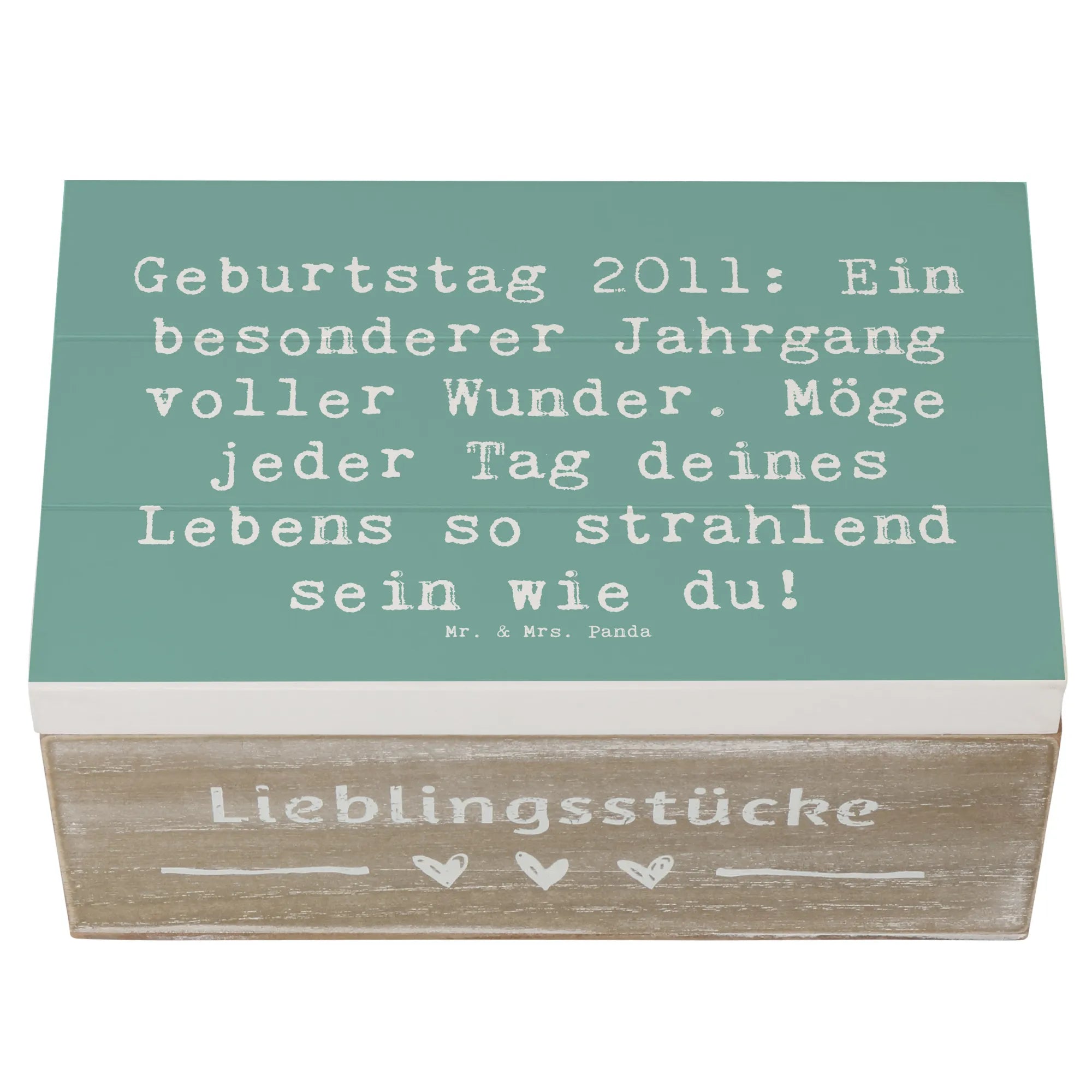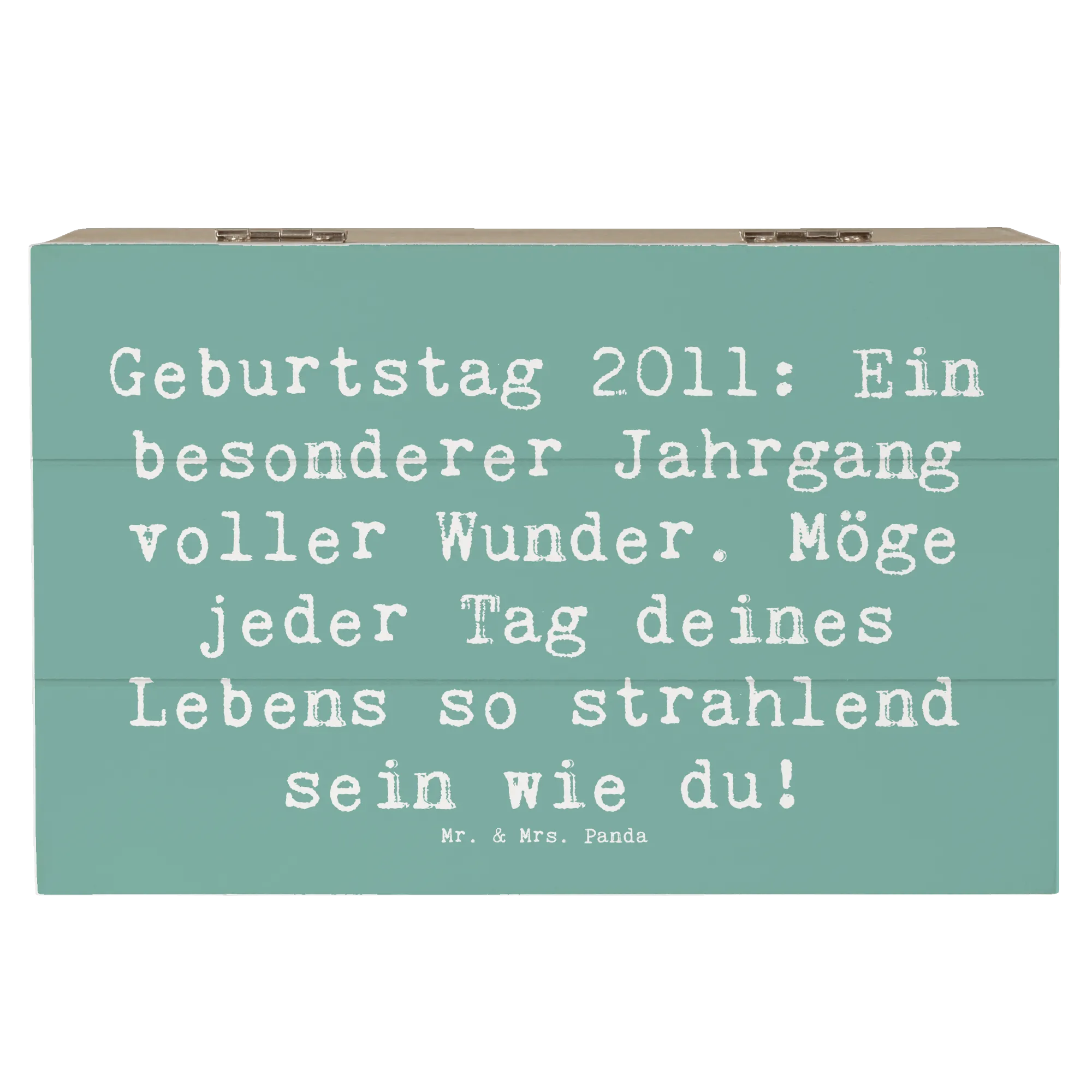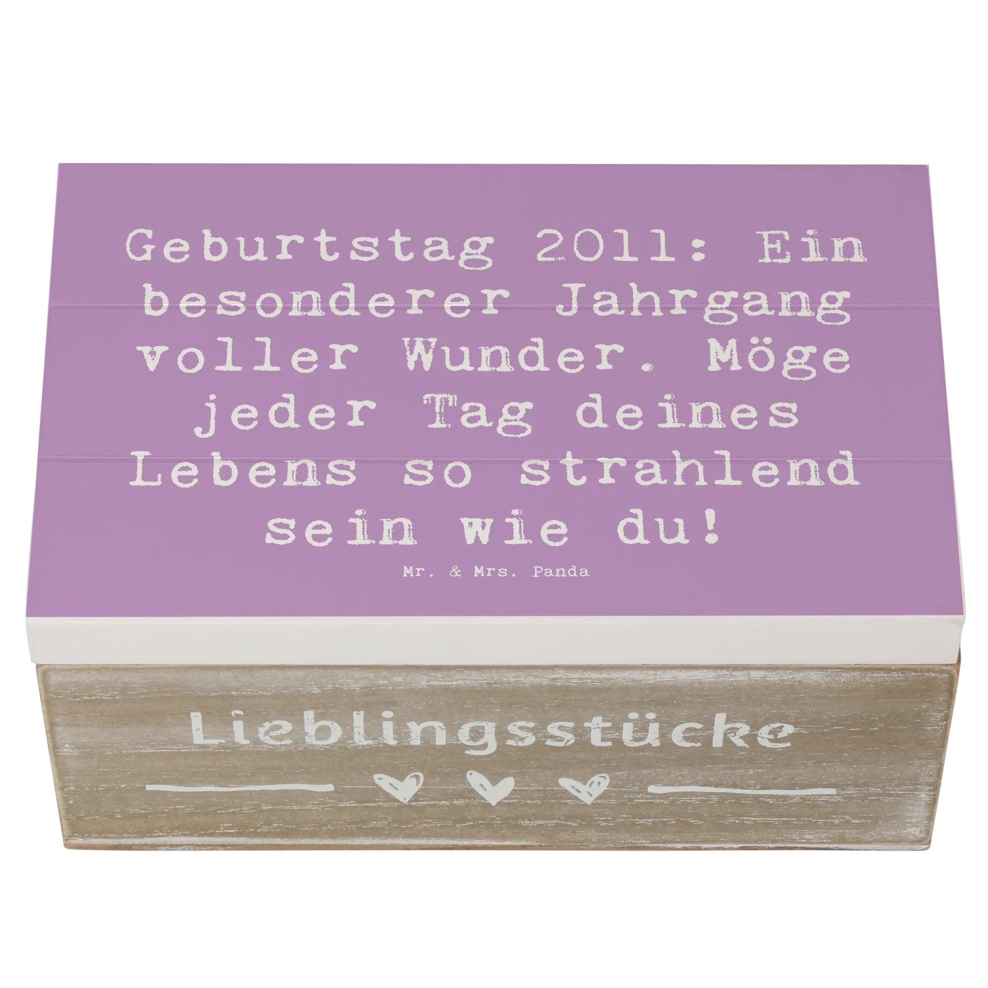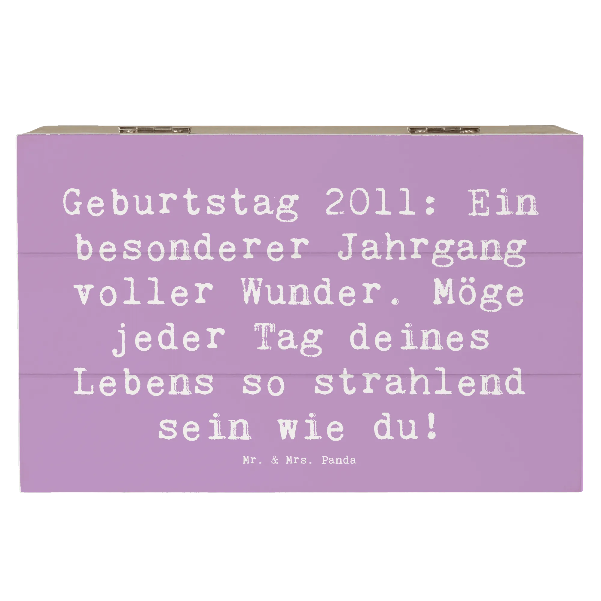Wooden chest Saying Geburtstag 2011: Ein besonderer Jahrgang voller Wunder. Möge jeder Tag deines Lebens so strahlend sein wie du! - 22 x 15 cm - White