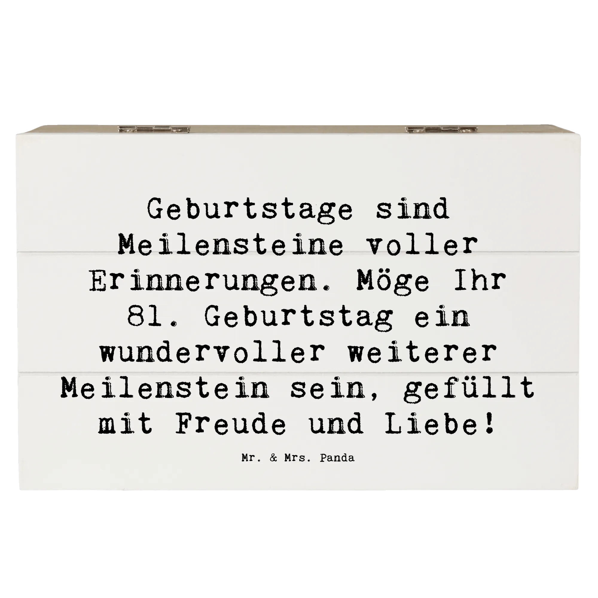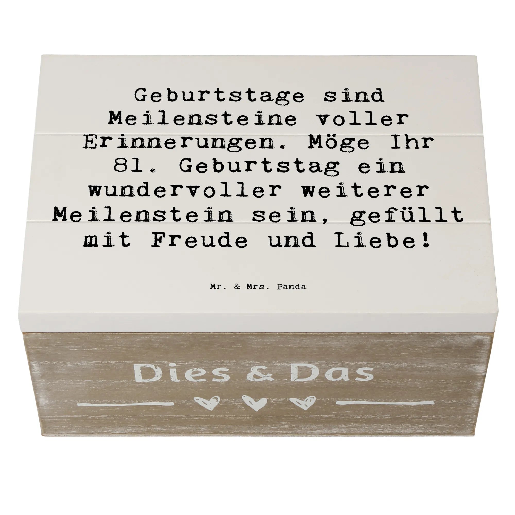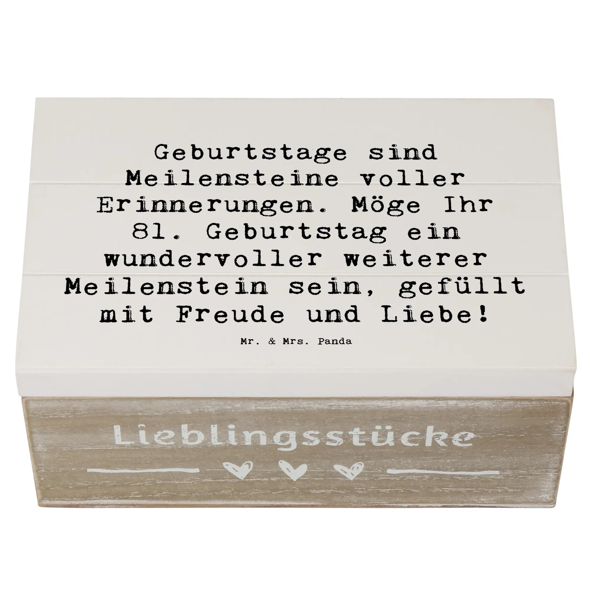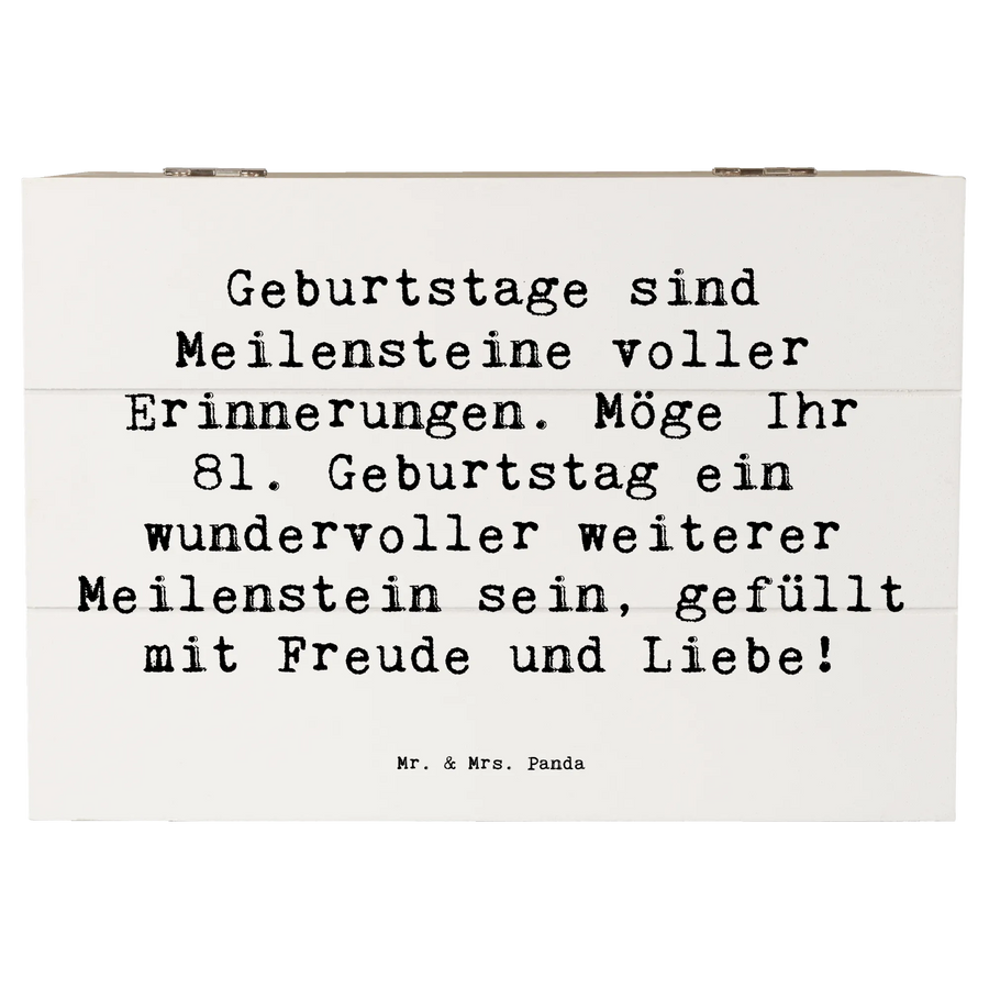 Wooden chest Saying Geburtstage sind Meilensteine voller Erinnerungen. Möge Ihr 81. Geburtstag ein wundervoller weiterer Meilenstein sein, gefüllt mit Freude und Liebe! - 22 x 15 cm - White