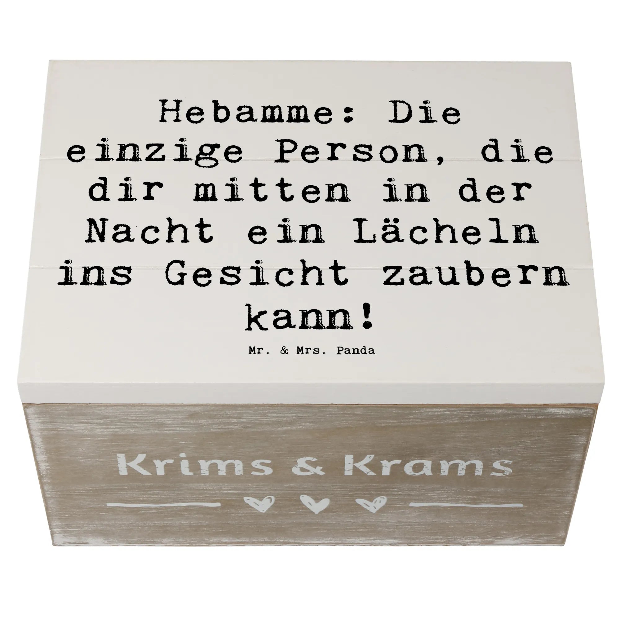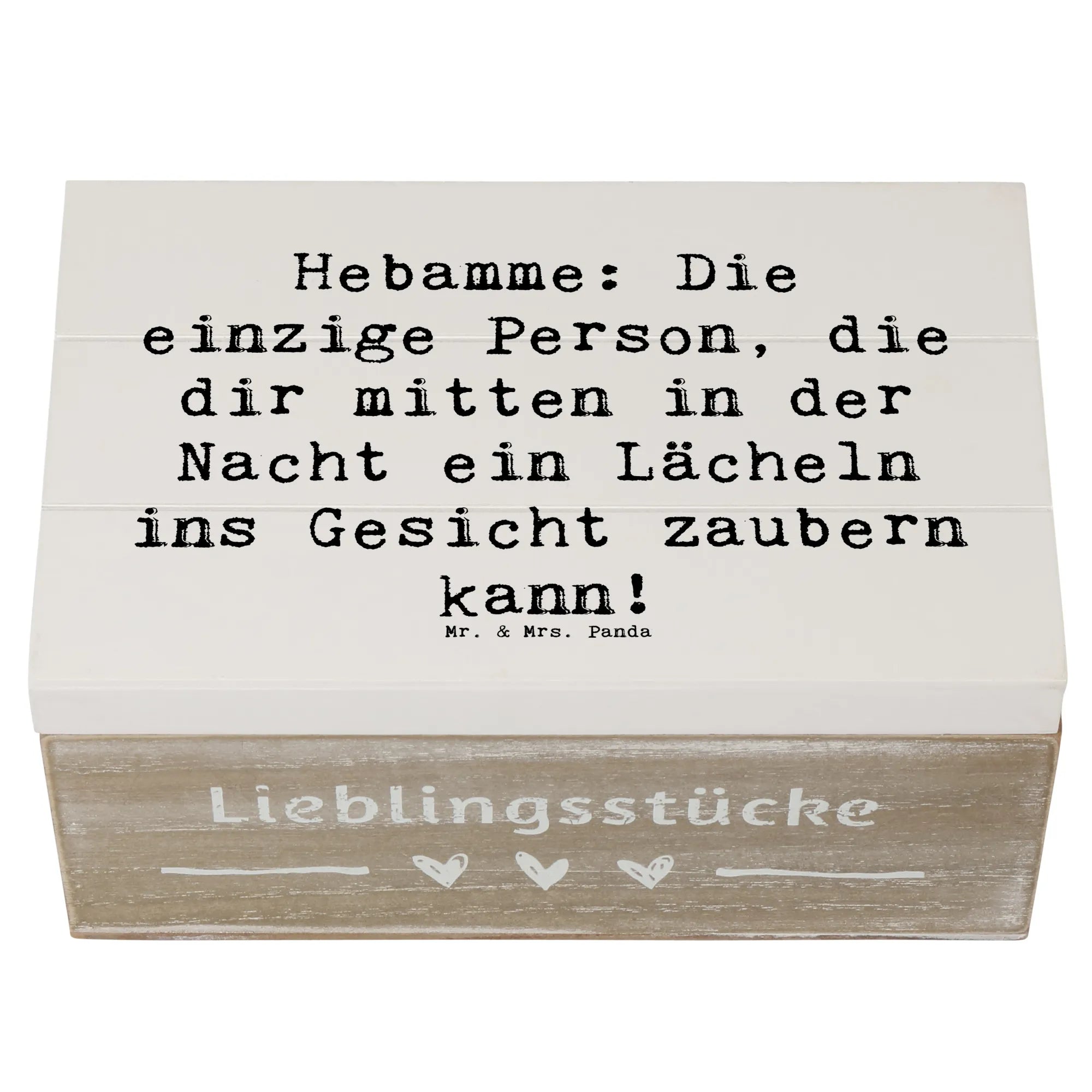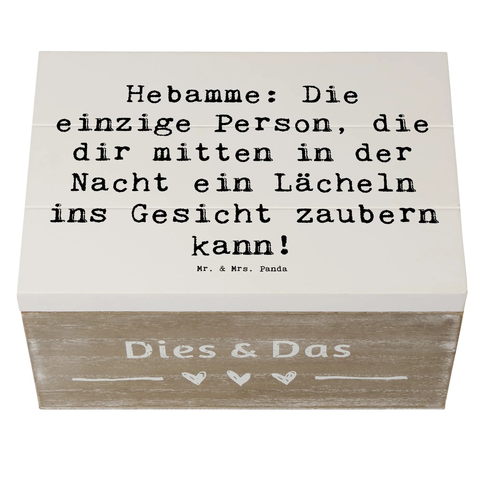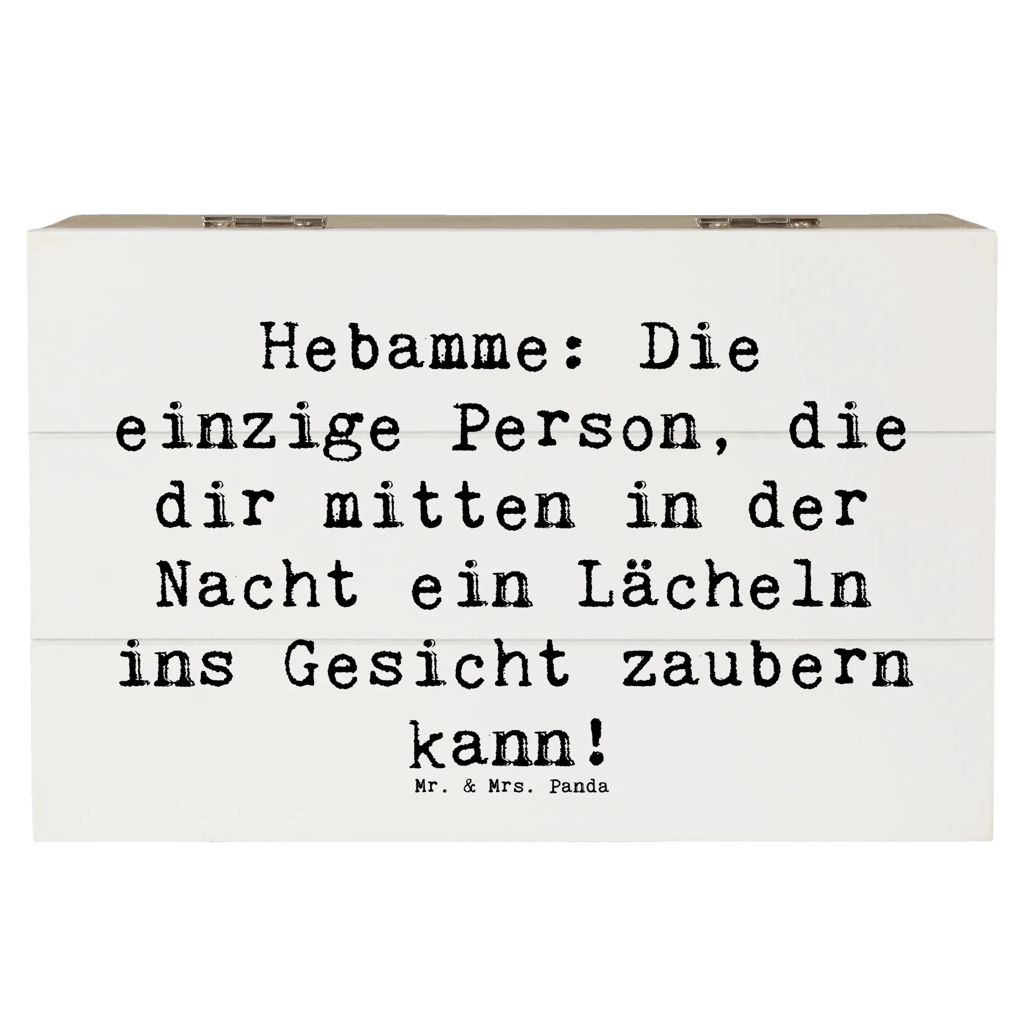 Wooden chest Saying Hebamme: Die einzige Person, die dir mitten in der Nacht ein Lächeln ins Gesicht zaubern kann! - 22 x 15 cm - White