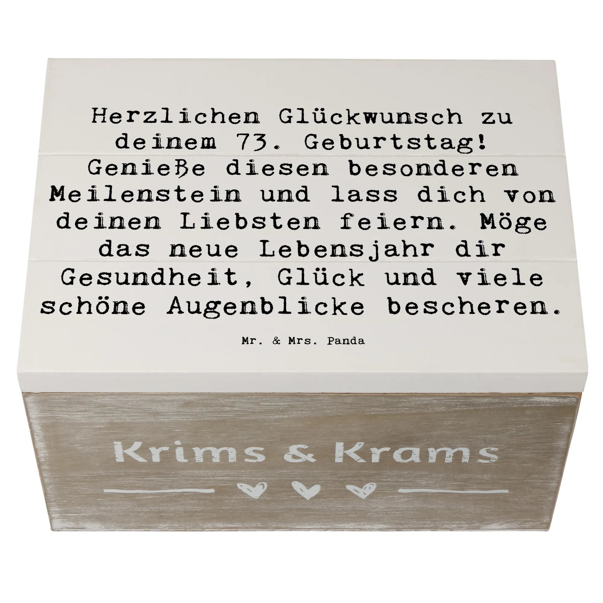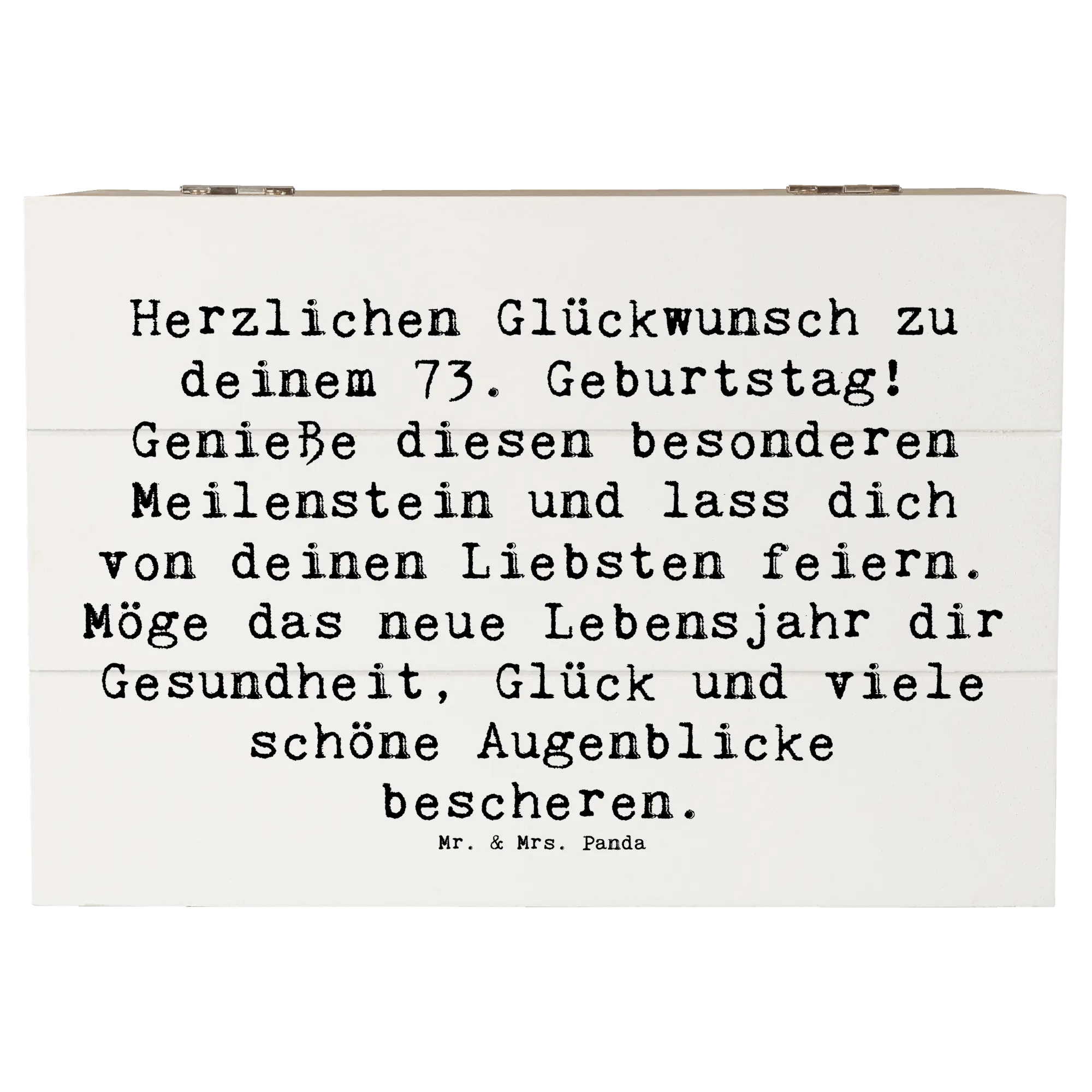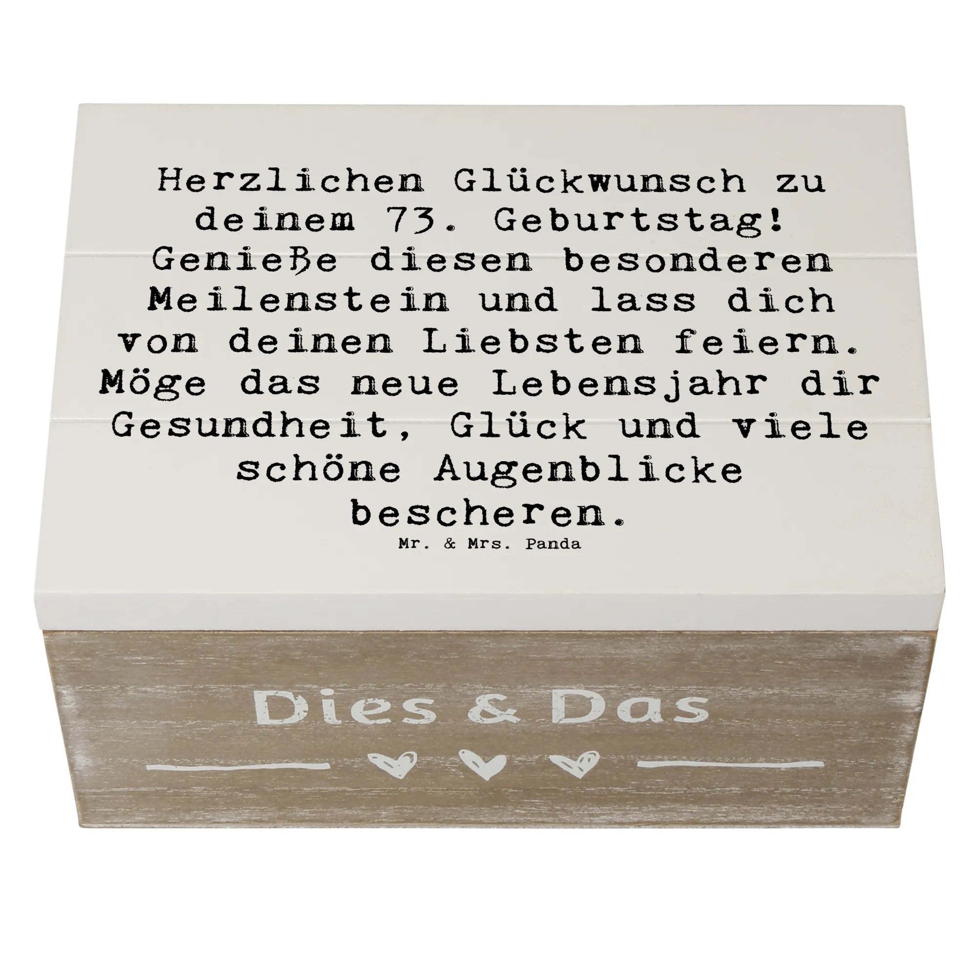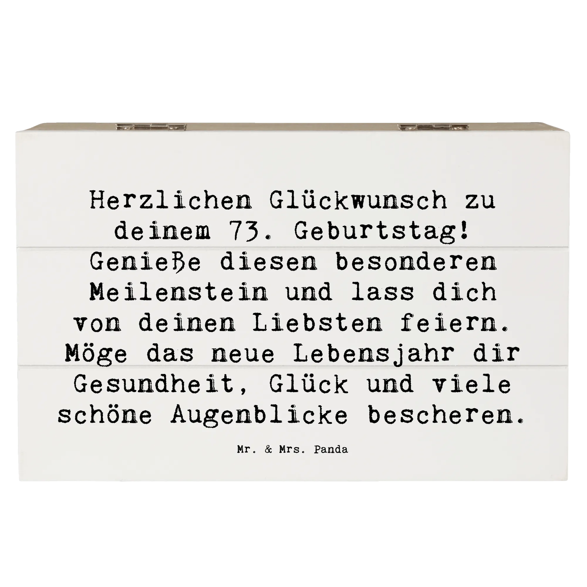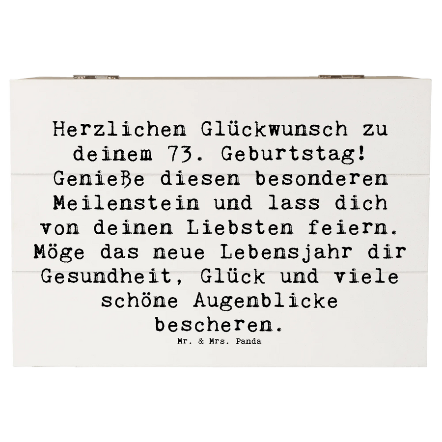 Wooden chest Saying Herzlichen Glückwunsch zu deinem 73. Geburtstag! Genieße diesen besonderen Meilenstein und lass dich von deinen Liebsten feiern. Möge das neue Lebensjahr dir Gesundheit, Glück und viele schöne Augenblicke bescheren. - 22 x 15 cm - White