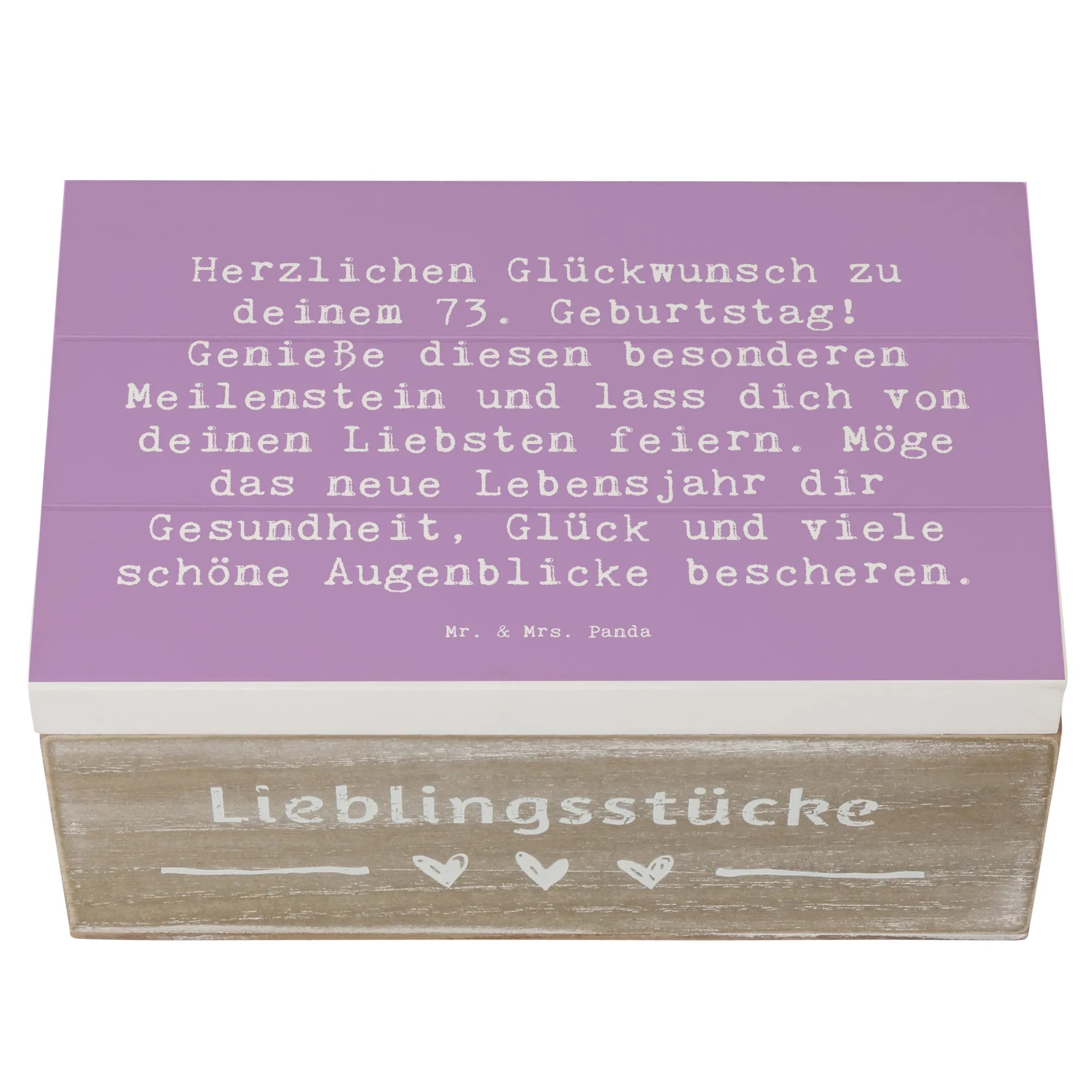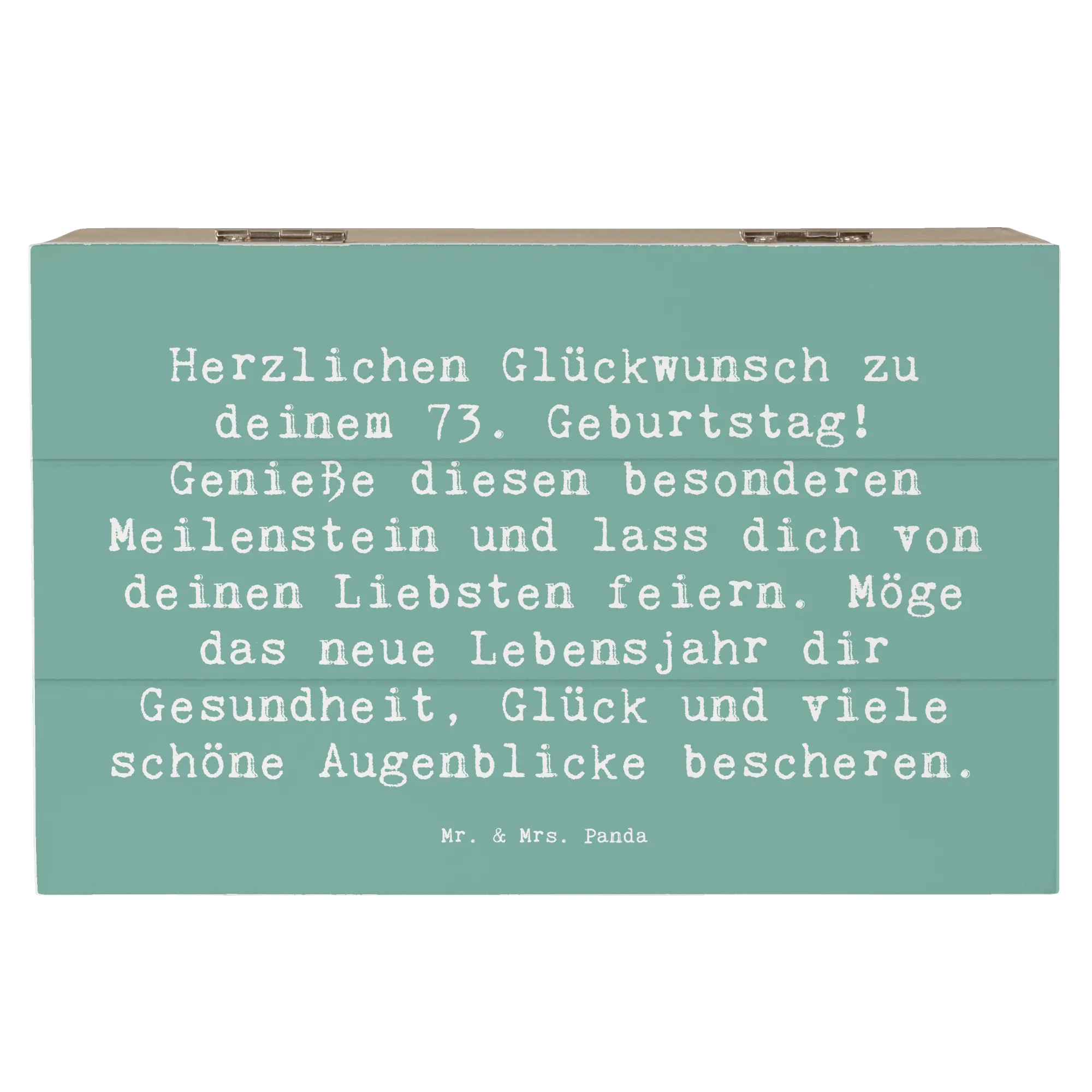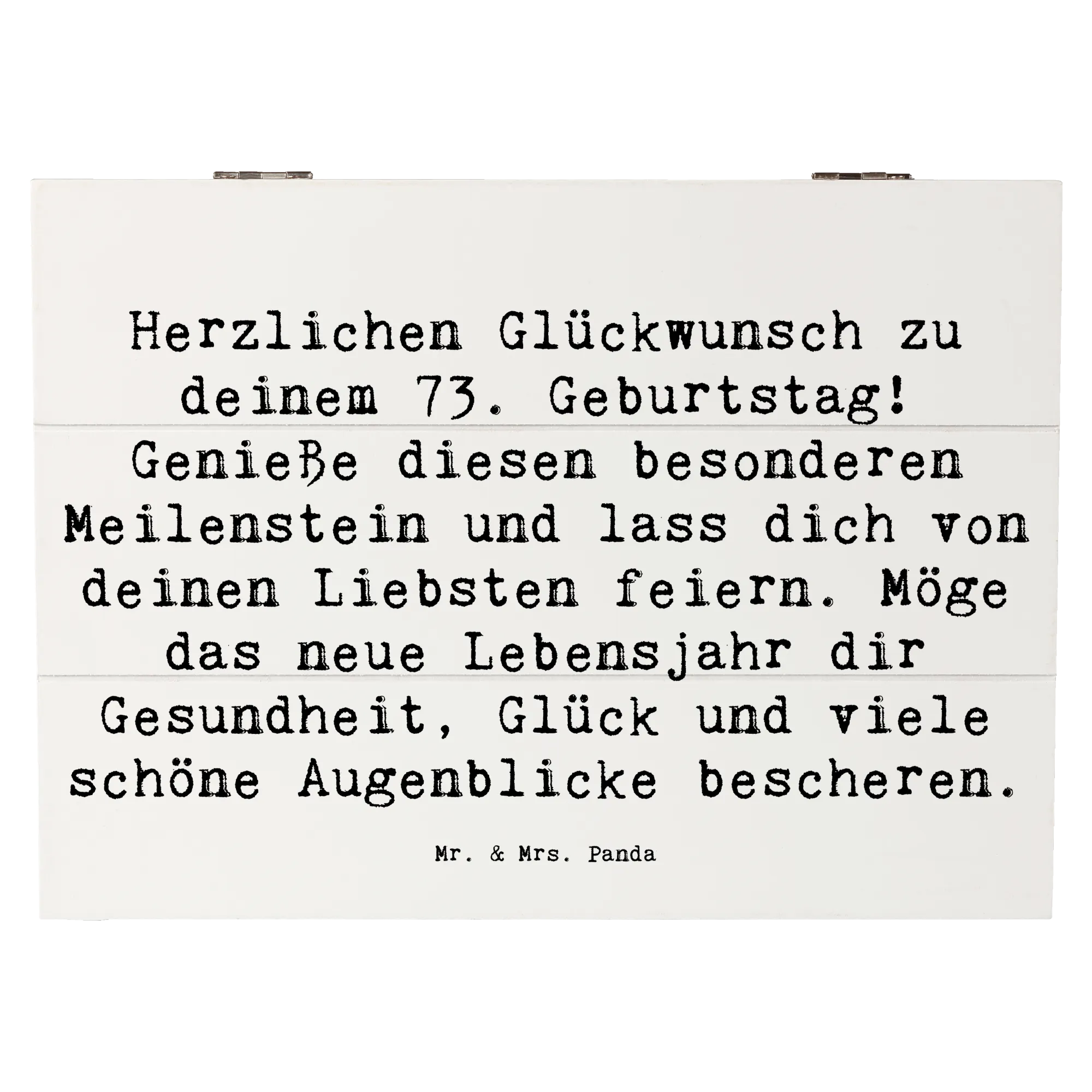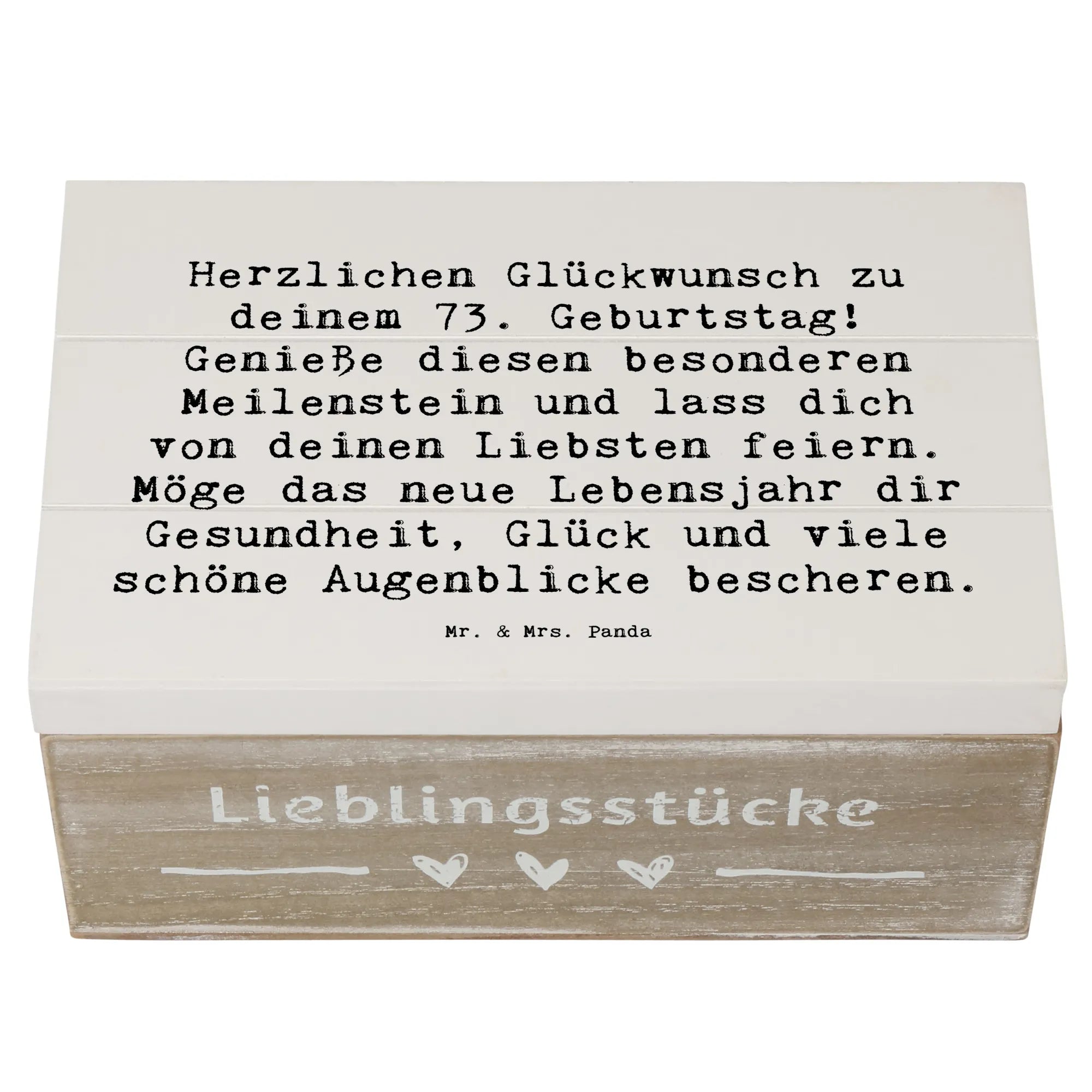 Wooden chest Saying Herzlichen Glückwunsch zu deinem 73. Geburtstag! Genieße diesen besonderen Meilenstein und lass dich von deinen Liebsten feiern. Möge das neue Lebensjahr dir Gesundheit, Glück und viele schöne Augenblicke bescheren. - 22 x 15 cm - White