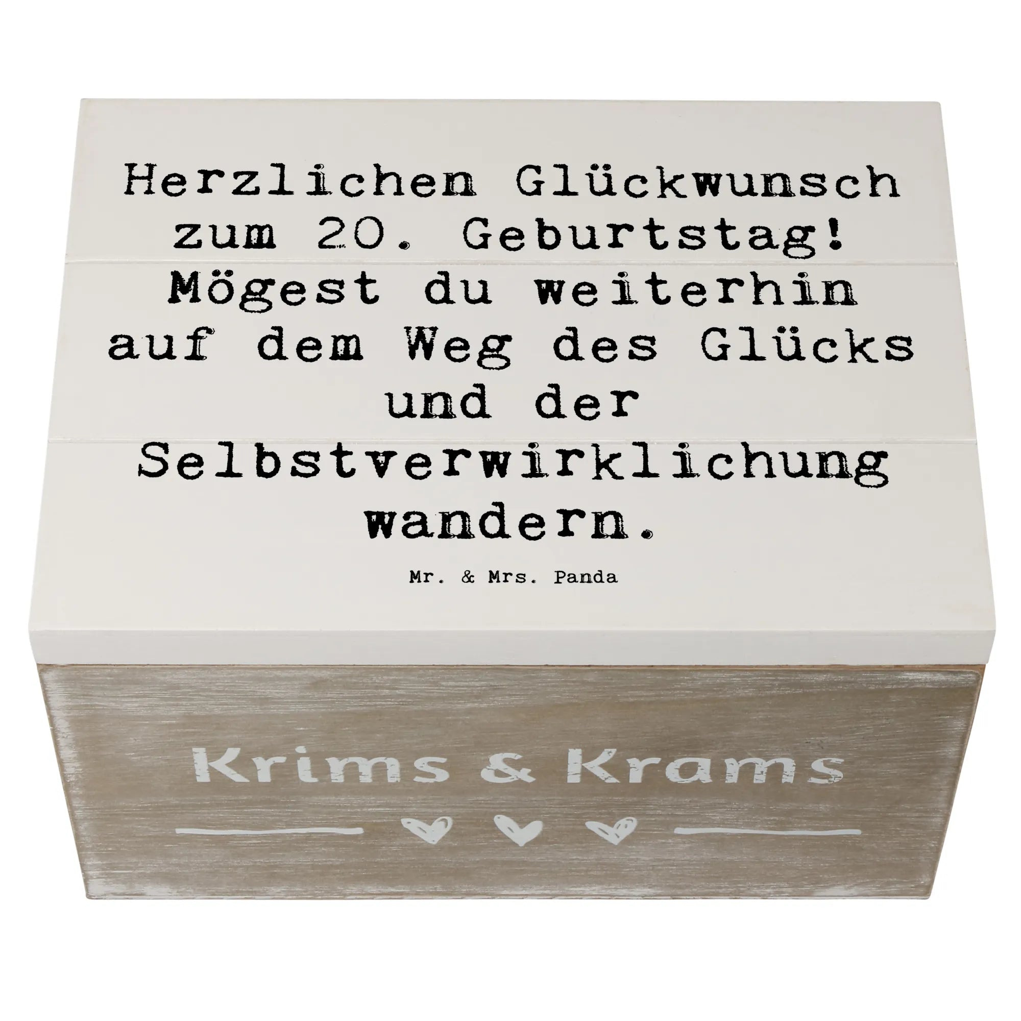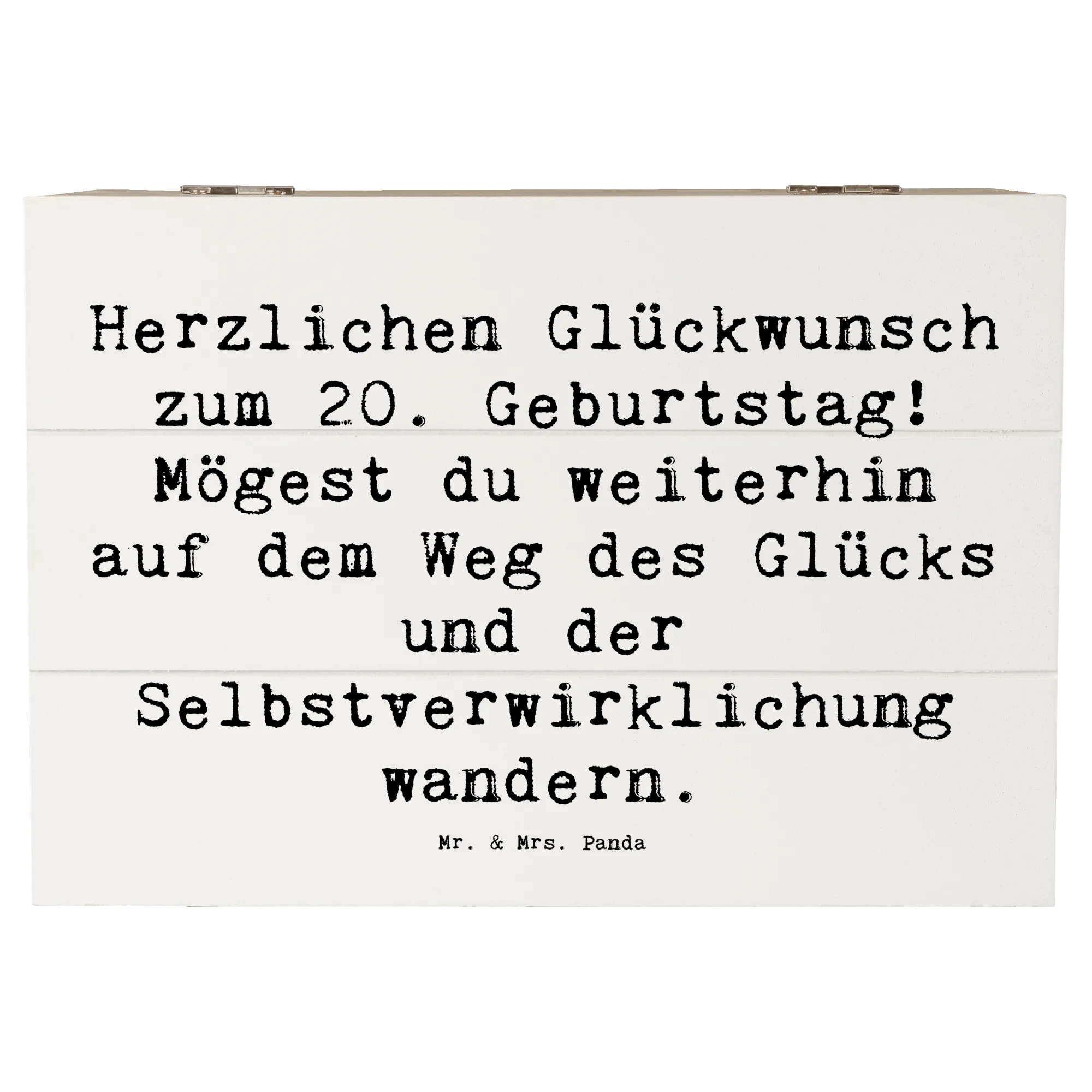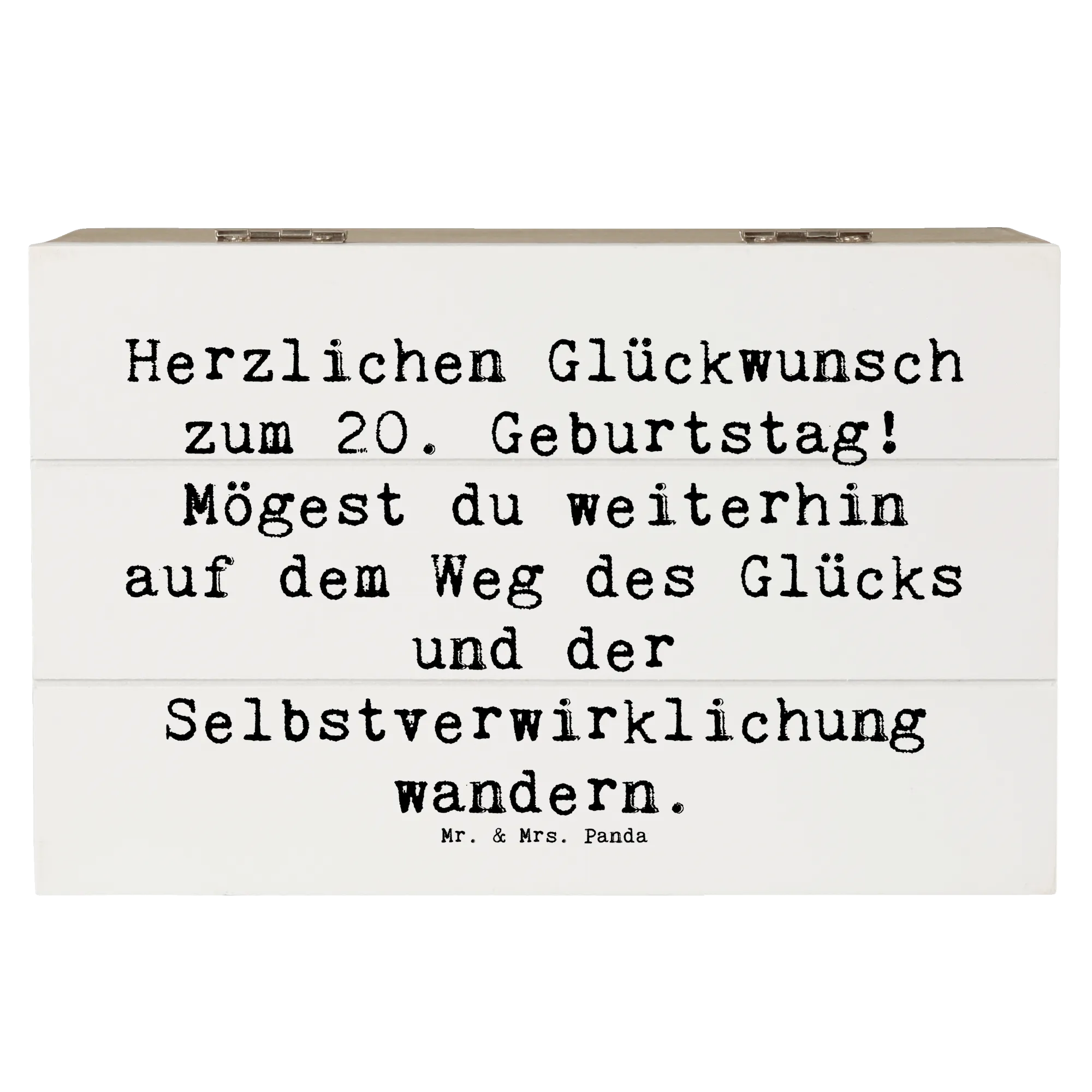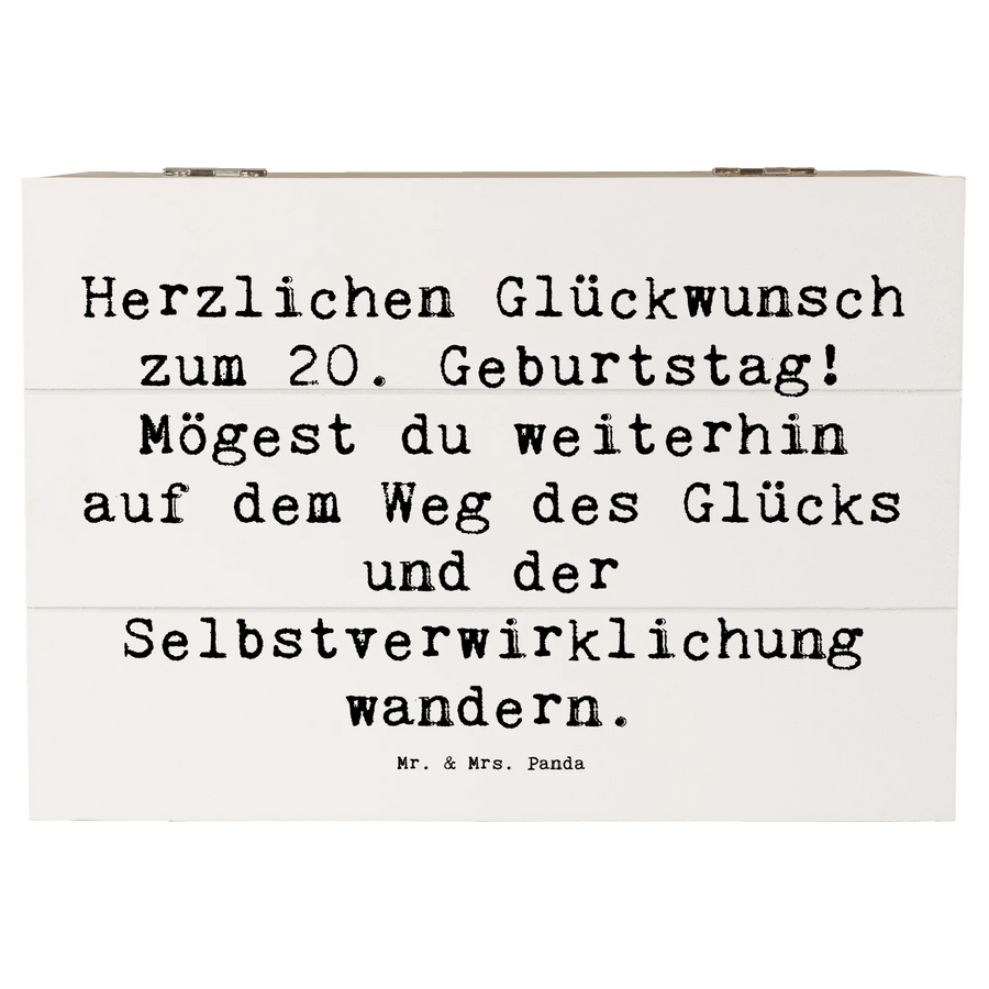 Wooden chest Saying Herzlichen Glückwunsch zum 20. Geburtstag! Mögest du weiterhin auf dem Weg des Glücks und der Selbstverwirklichung wandern. - 22 x 15 cm - White
