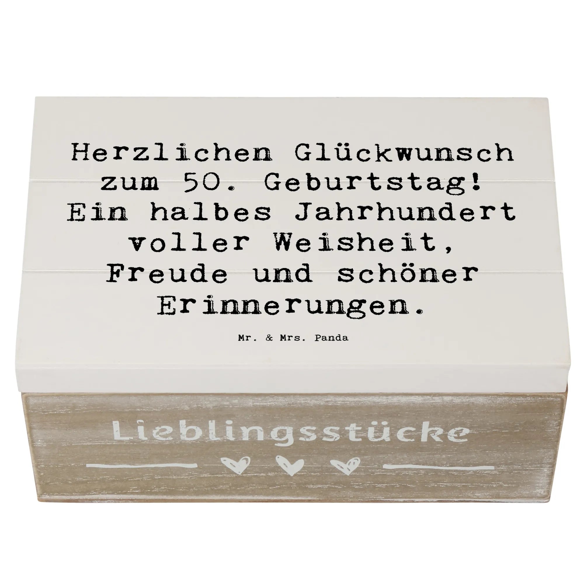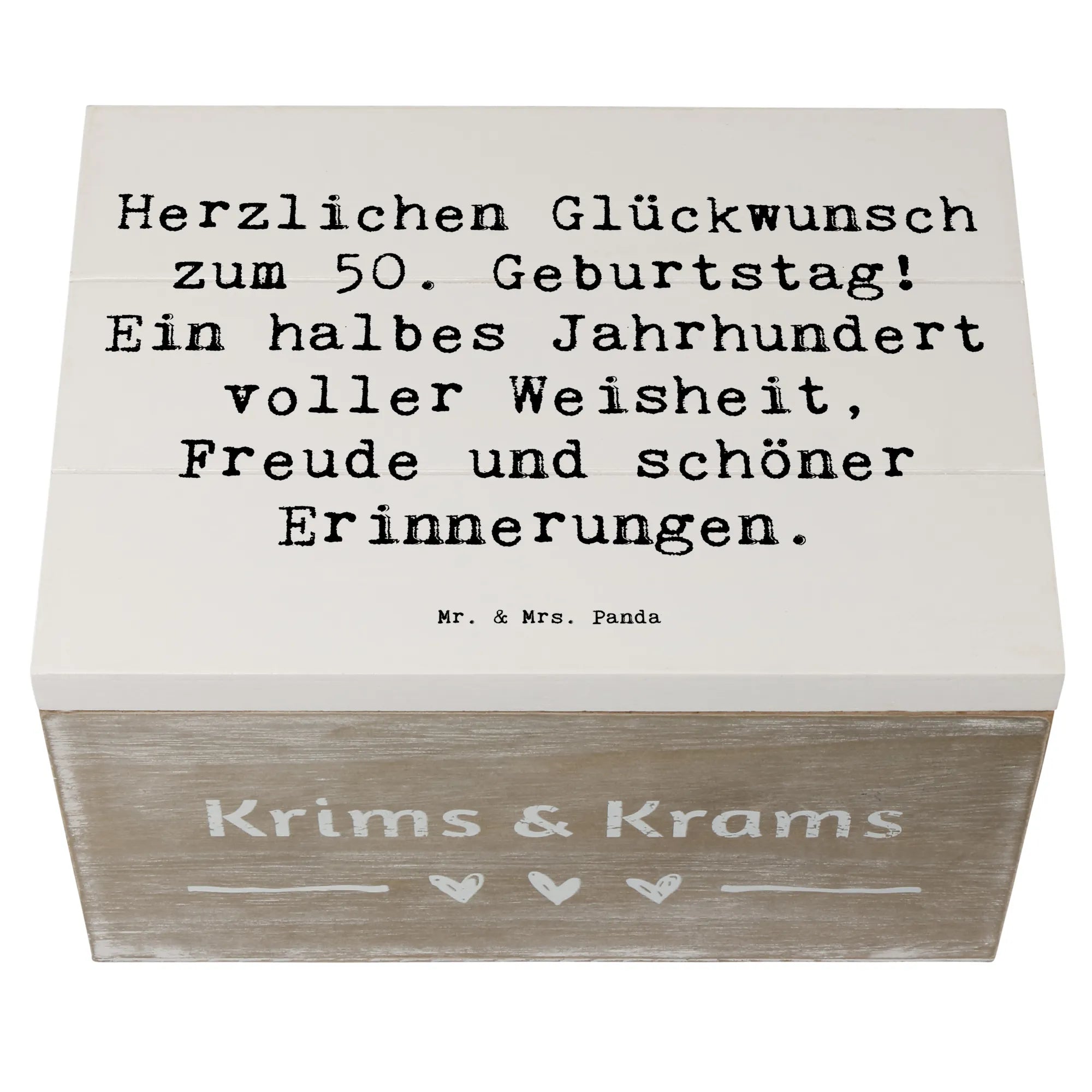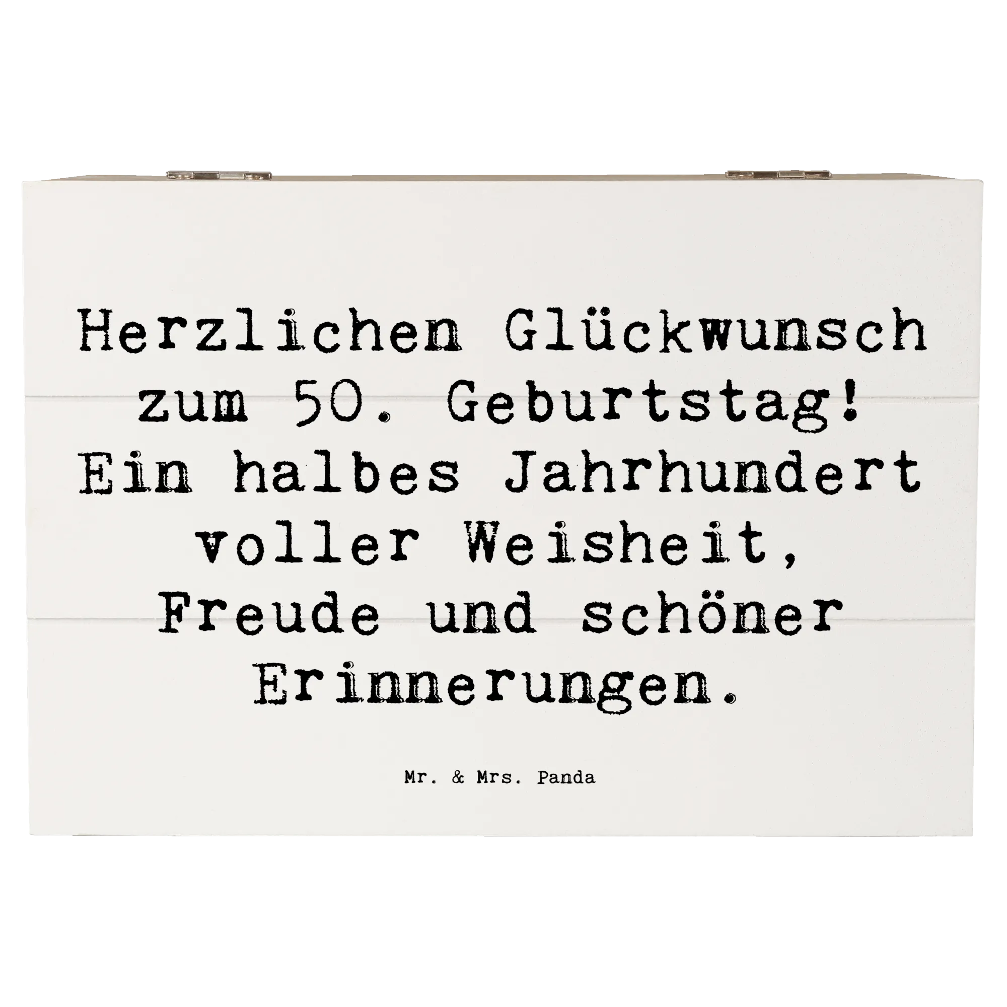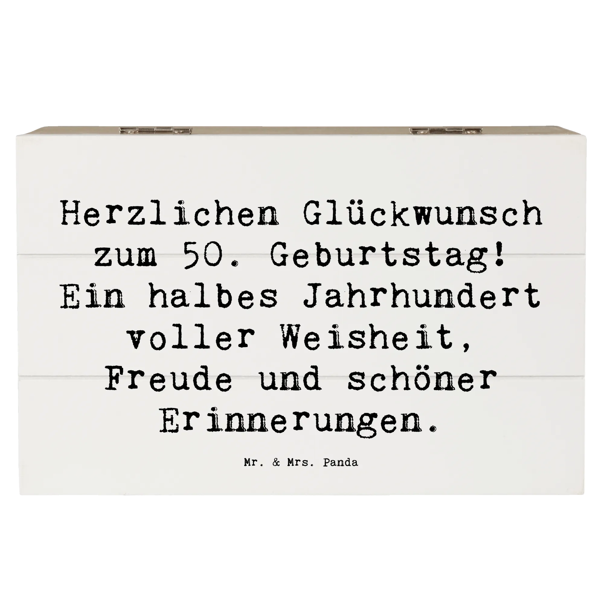 Wooden chest Saying Herzlichen Glückwunsch zum 50. Geburtstag! Ein halbes Jahrhundert voller Weisheit, Freude und schöner Erinnerungen. - 22 x 15 cm - White