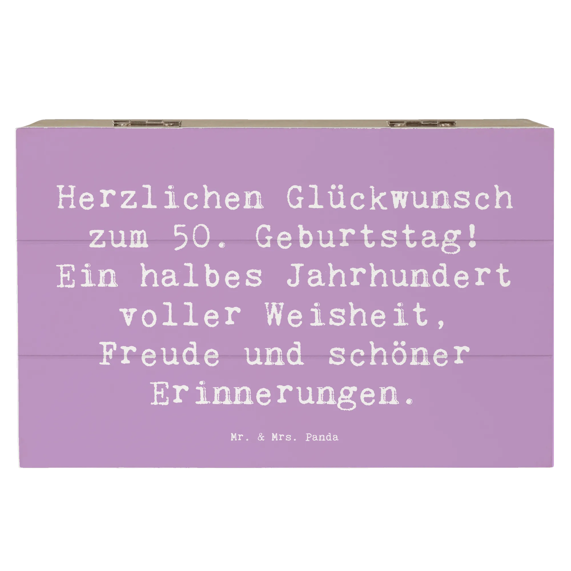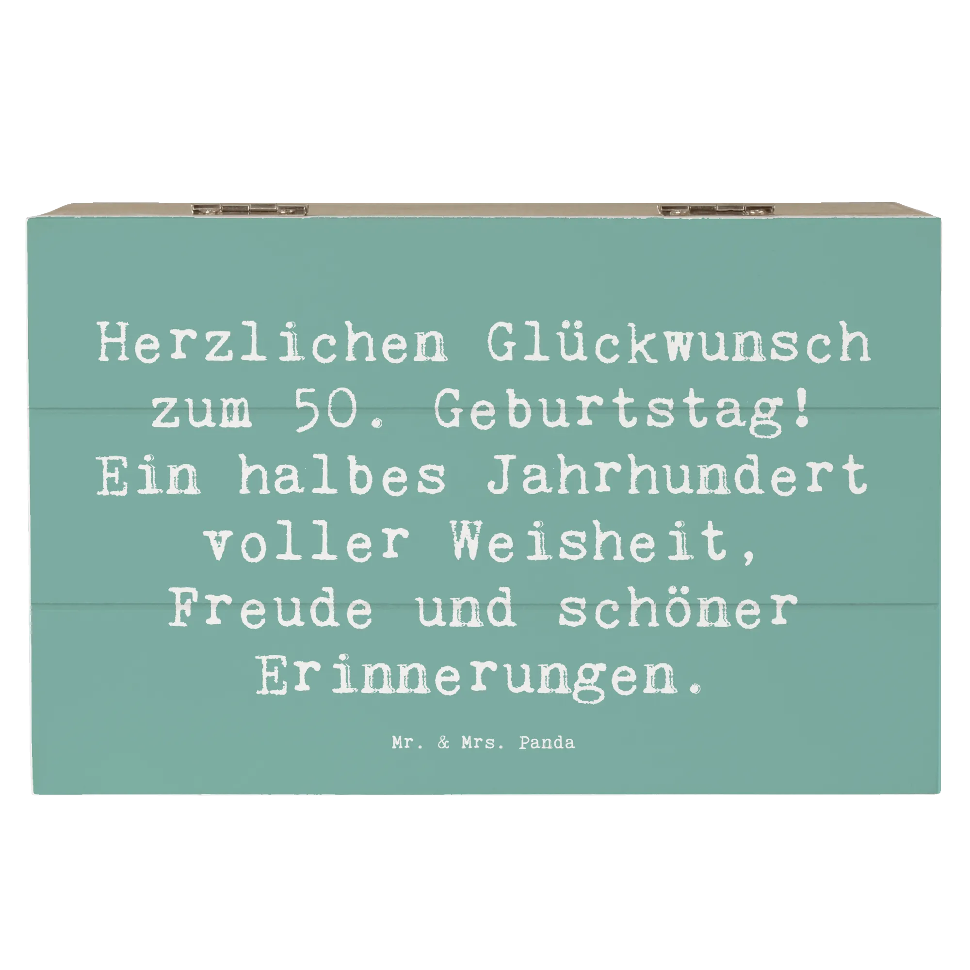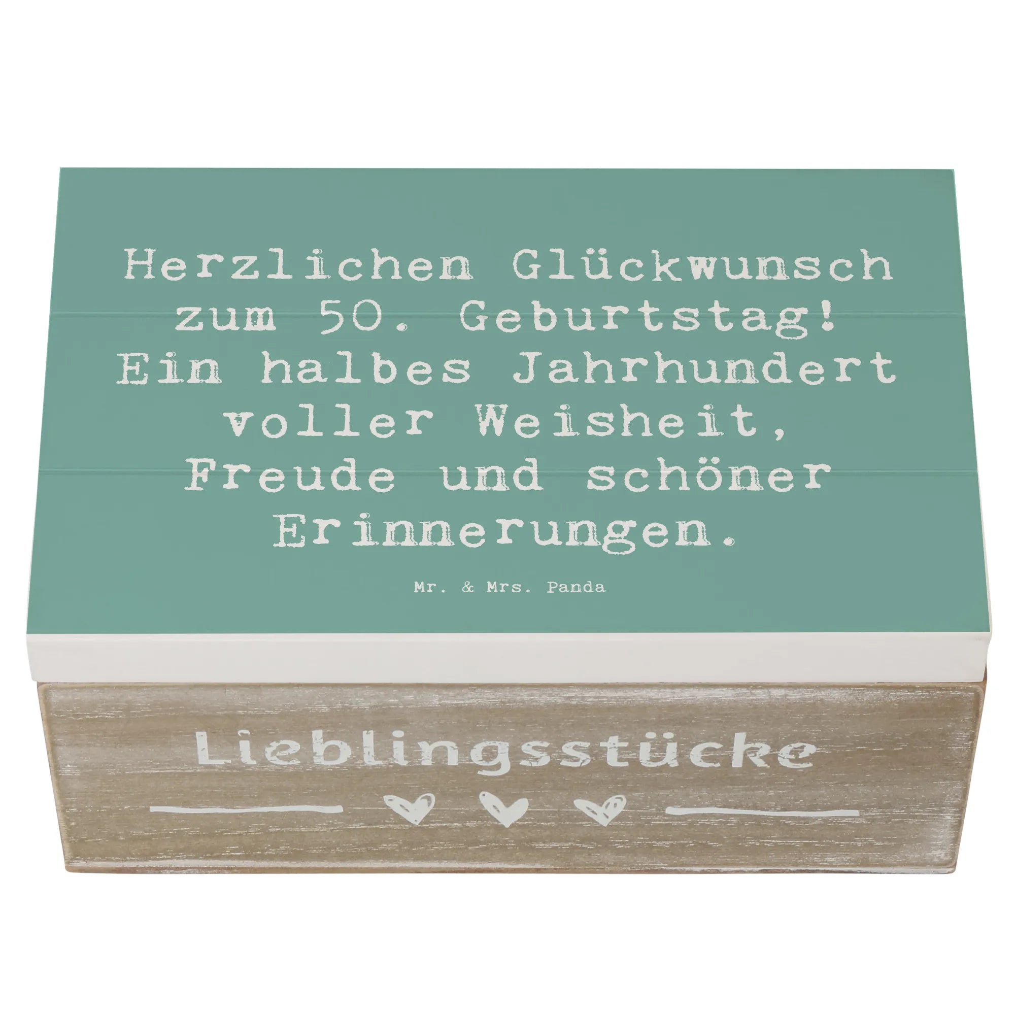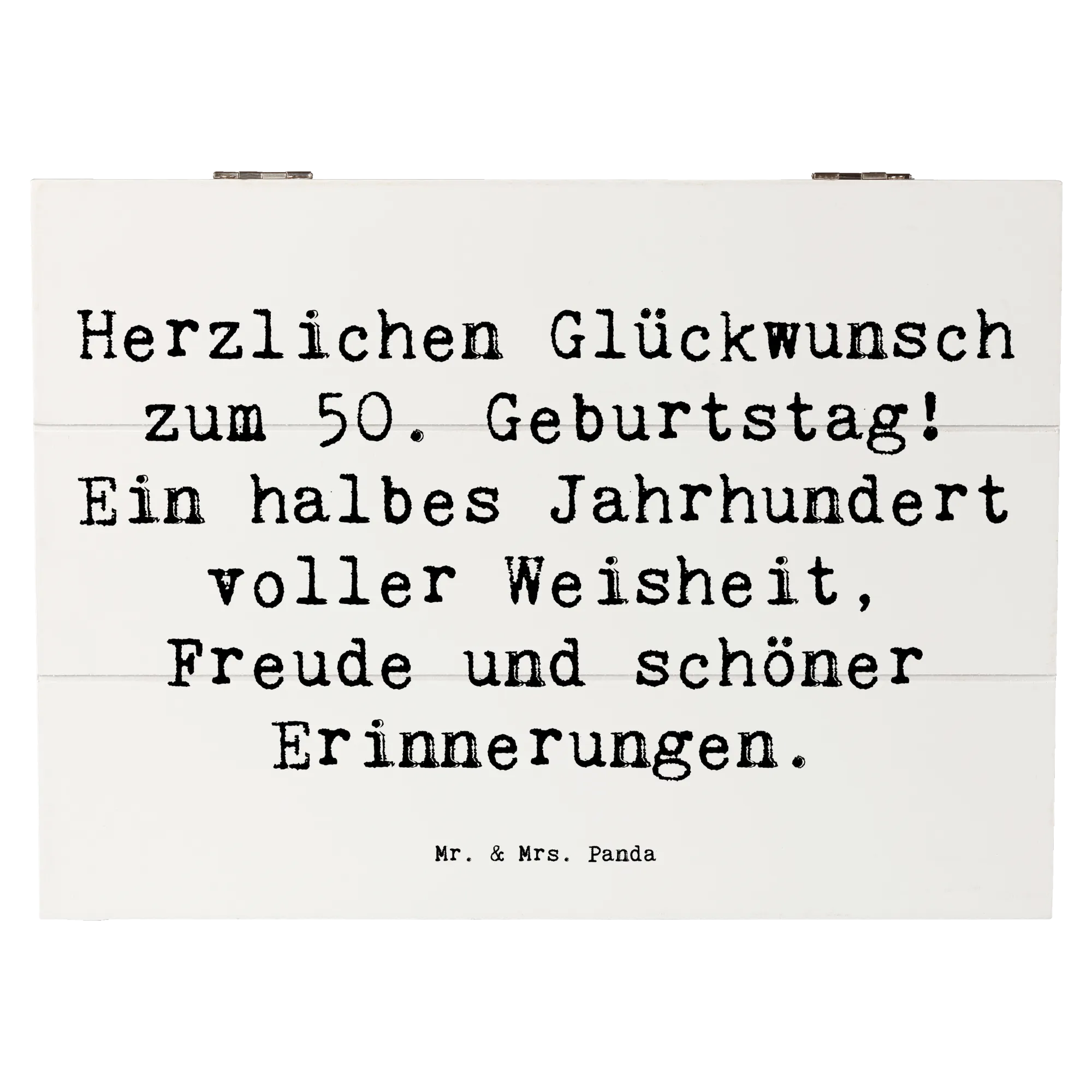 Wooden chest Saying Herzlichen Glückwunsch zum 50. Geburtstag! Ein halbes Jahrhundert voller Weisheit, Freude und schöner Erinnerungen. - 22 x 15 cm - White