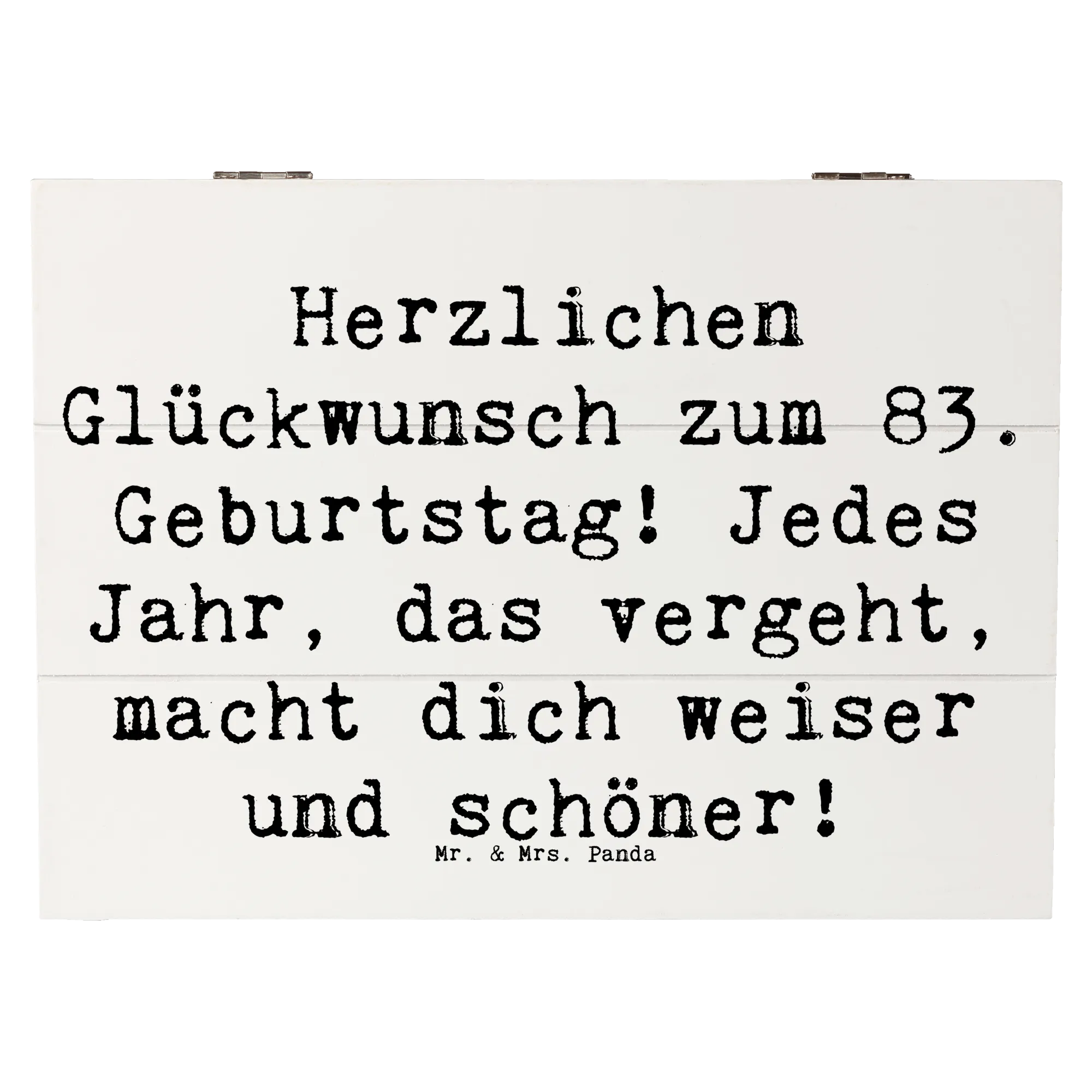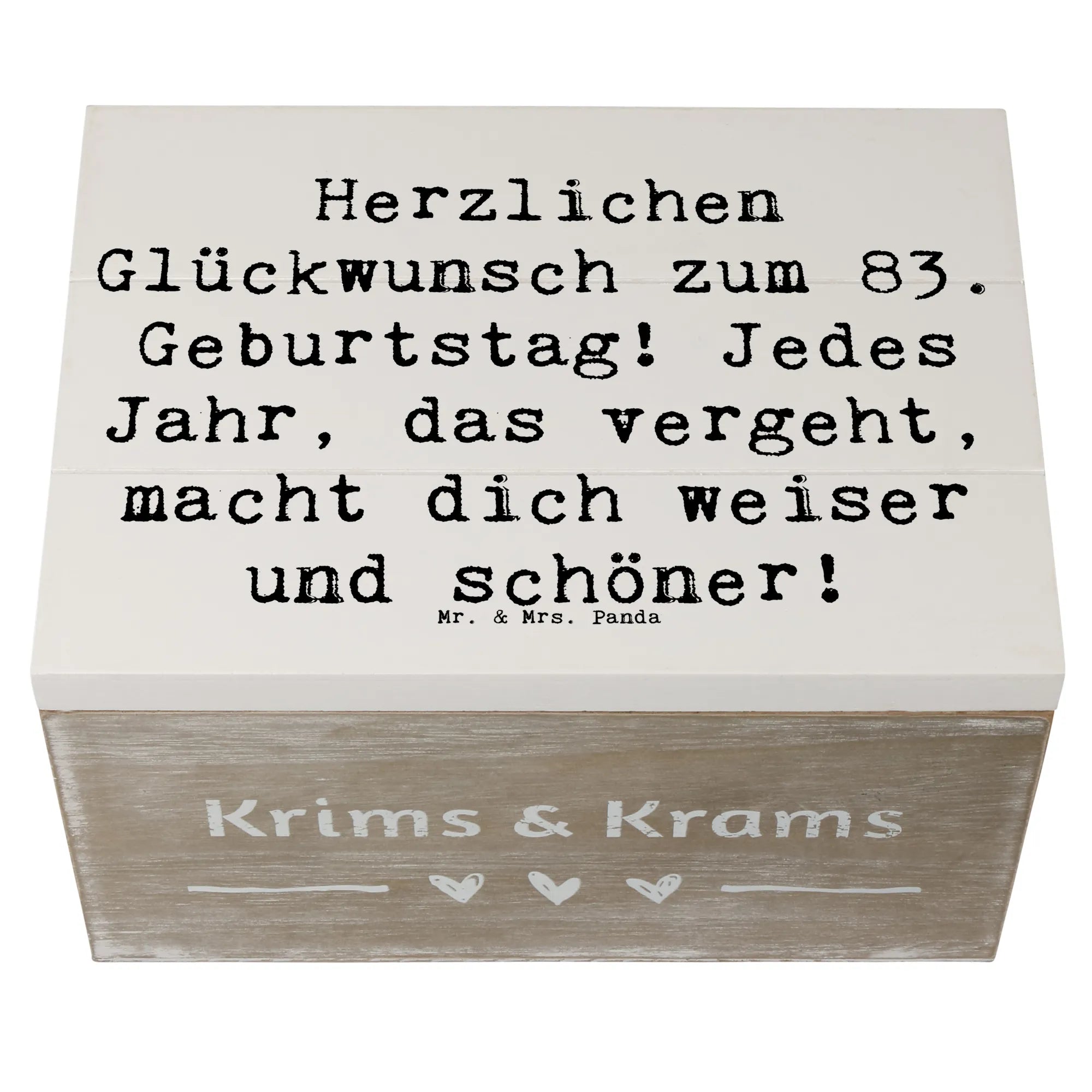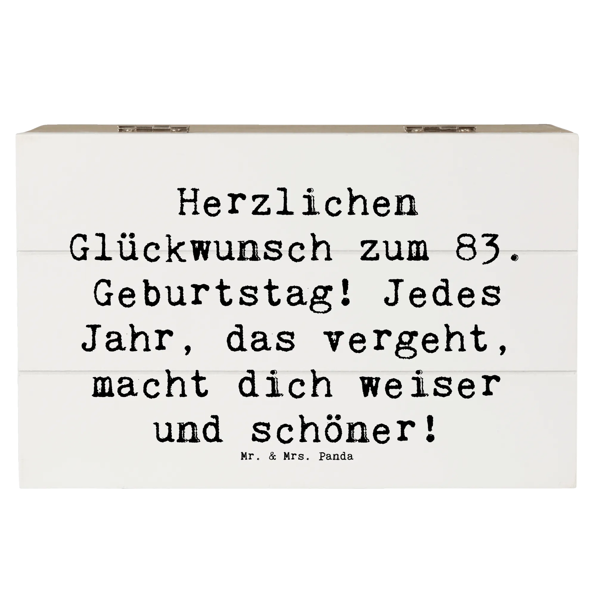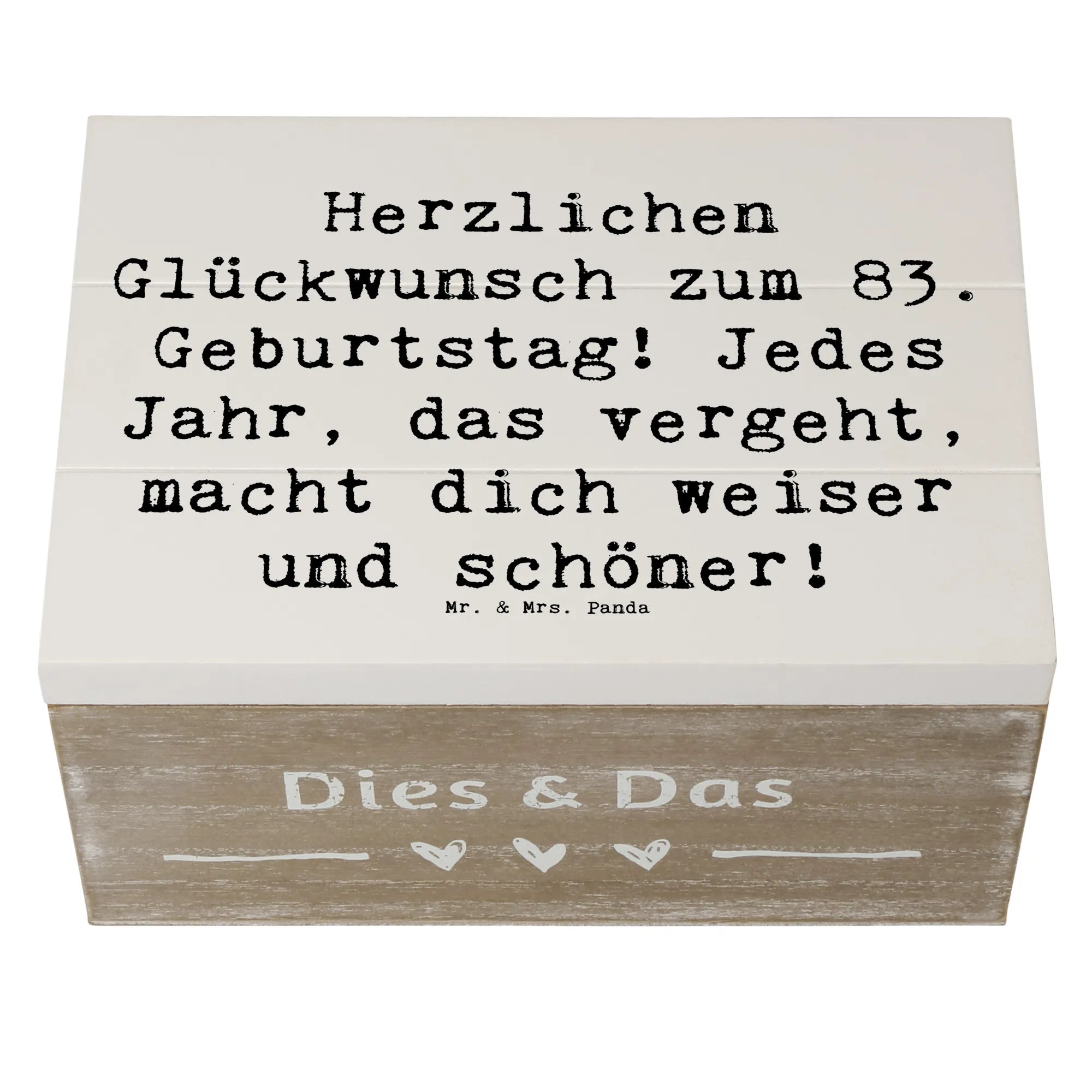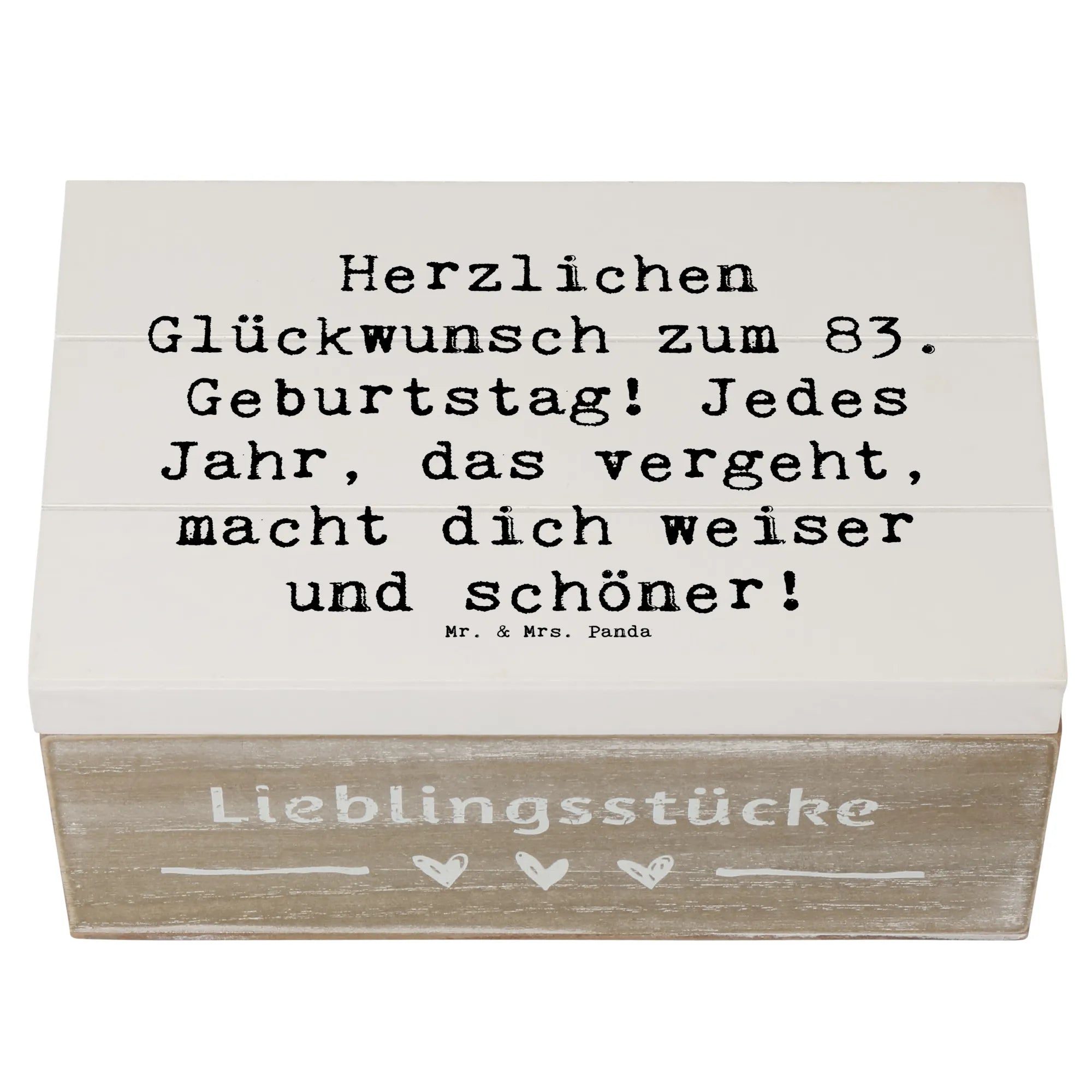 Wooden chest Saying Herzlichen Glückwunsch zum 83. Geburtstag! Jedes Jahr, das vergeht, macht dich weiser und schöner! - 22 x 15 cm - White