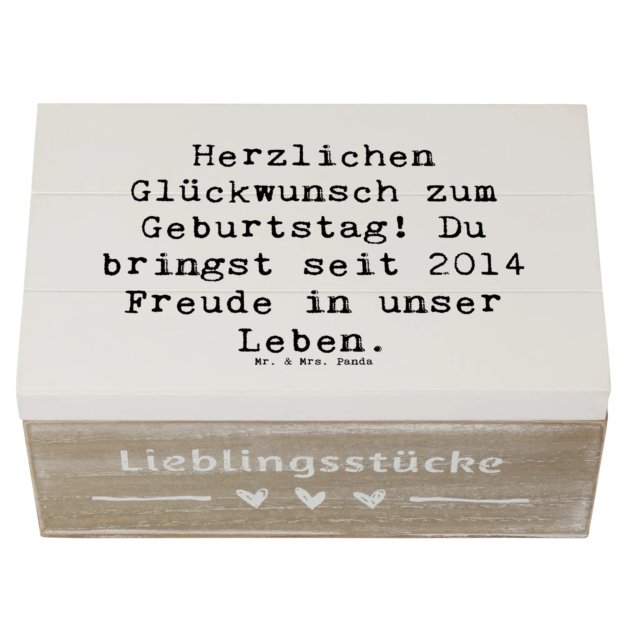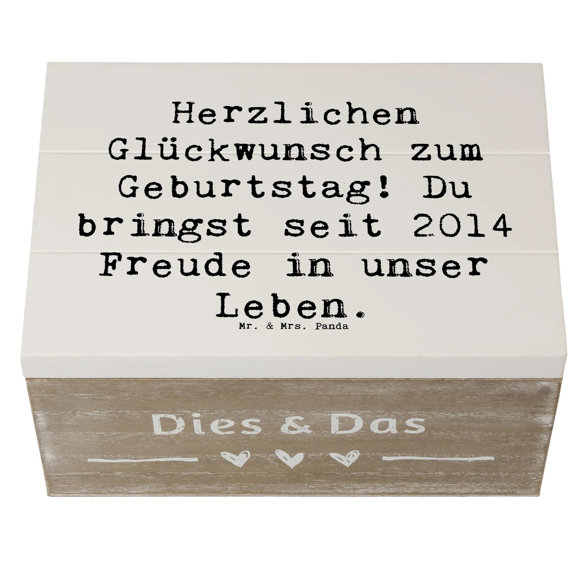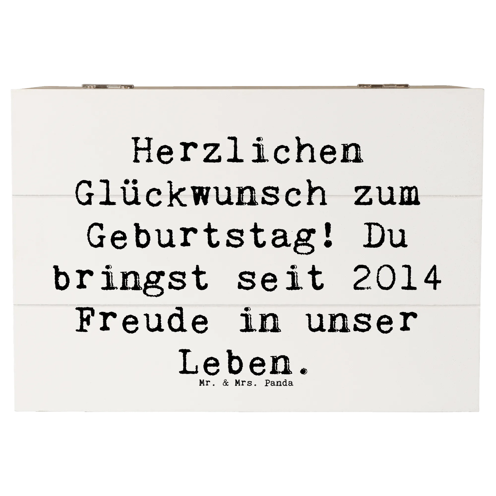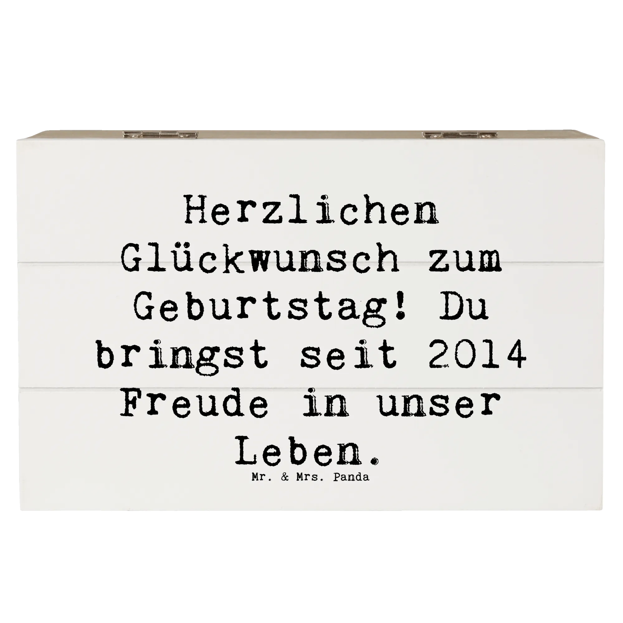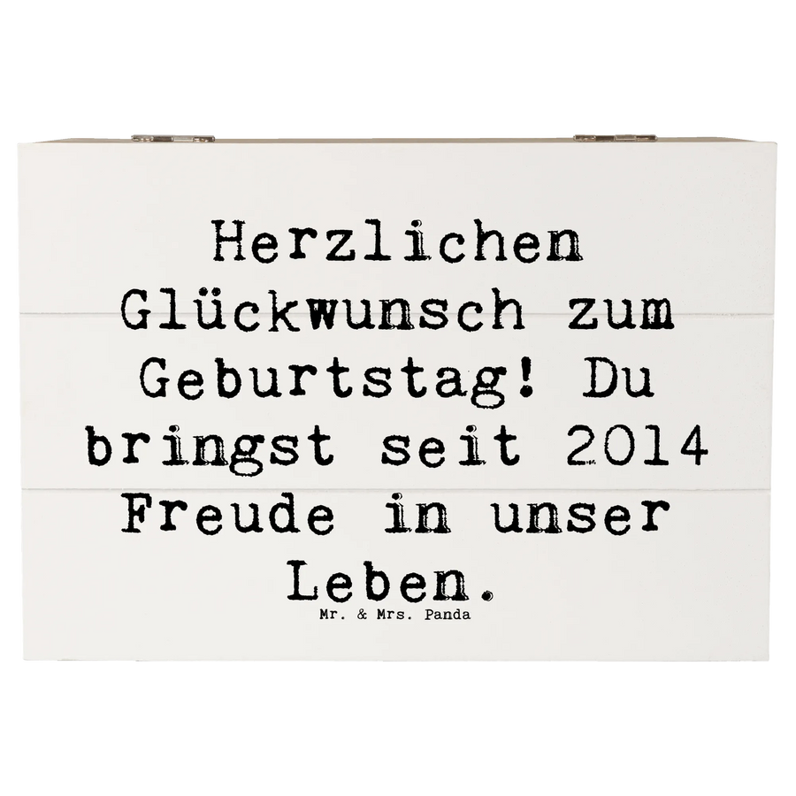 Wooden chest Saying Herzlichen Glückwunsch zum Geburtstag! Du bringst seit 2014 Freude in unser Leben. - 22 x 15 cm - White