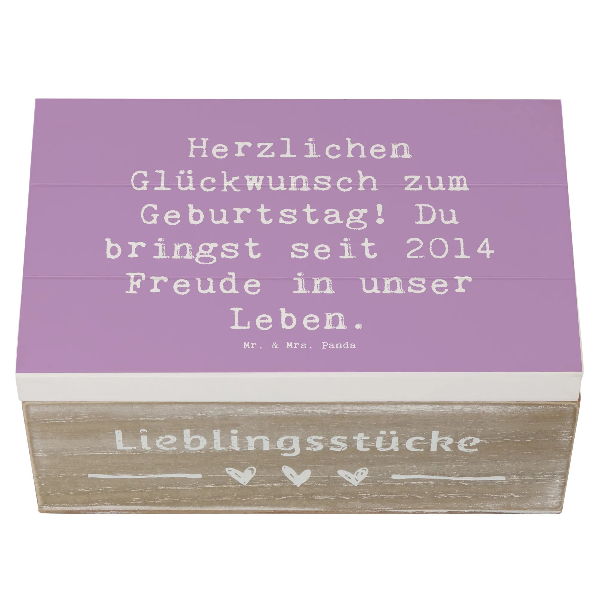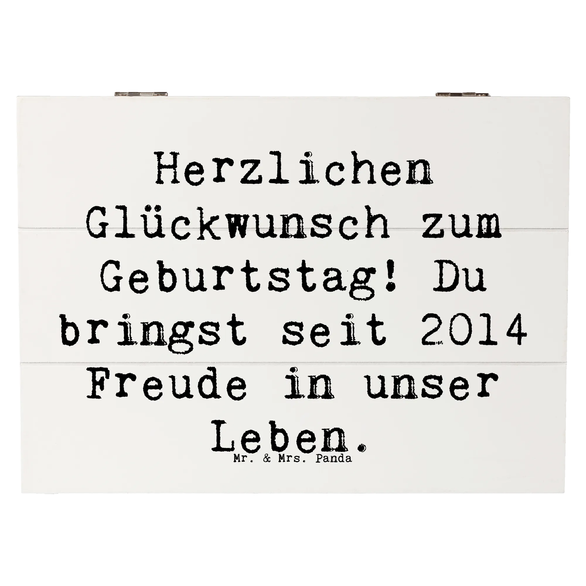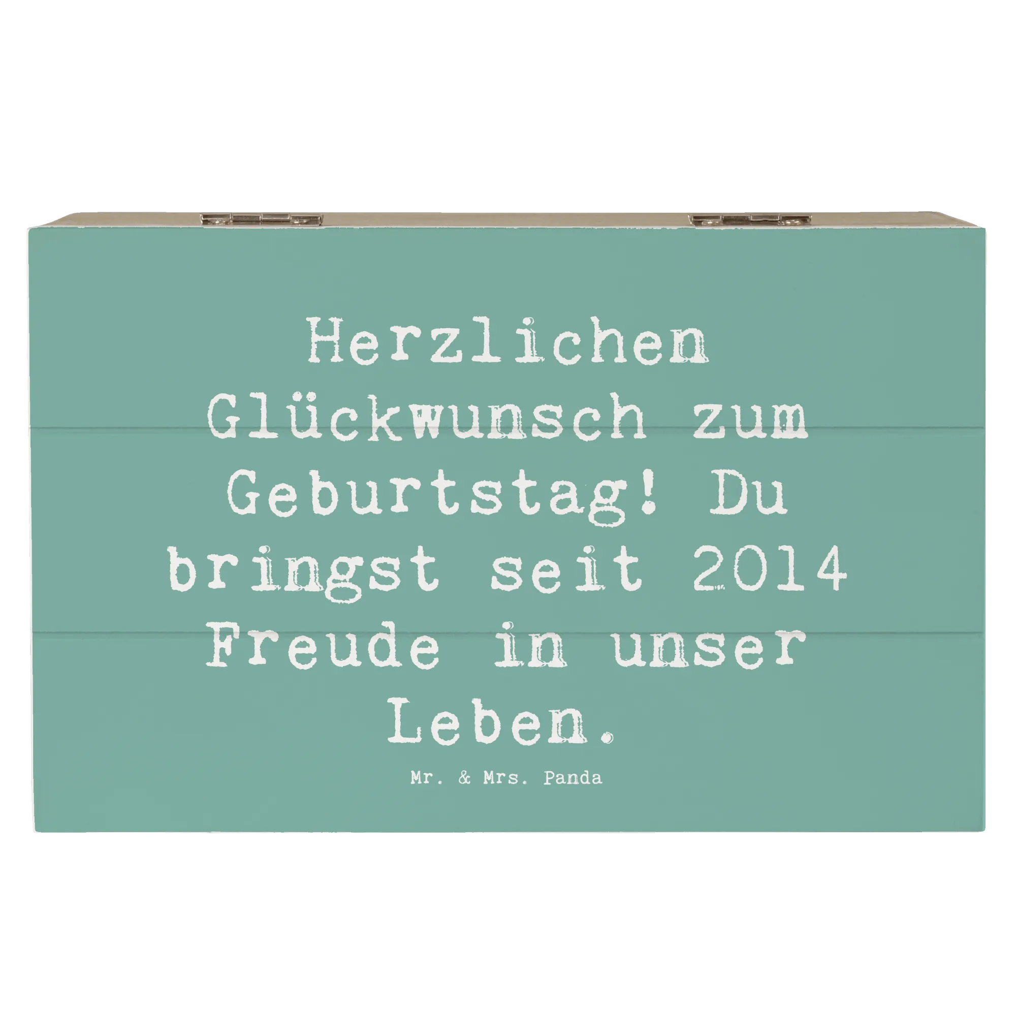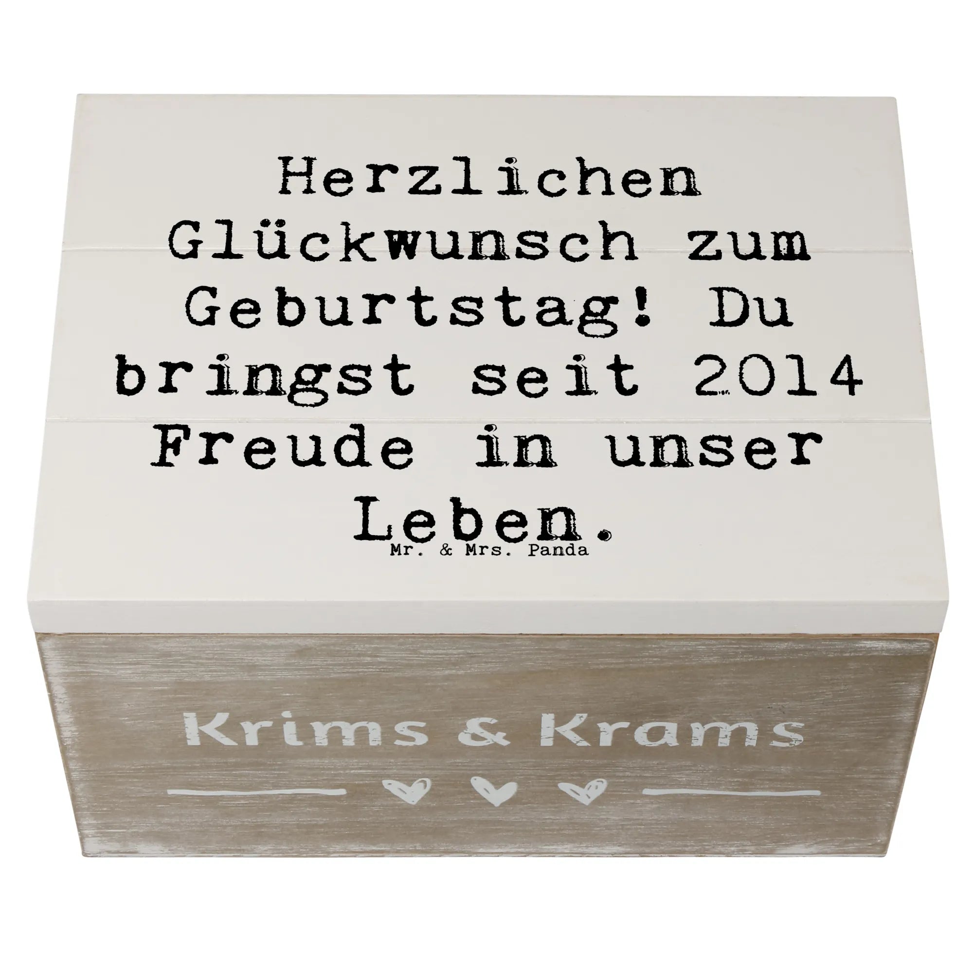 Wooden chest Saying Herzlichen Glückwunsch zum Geburtstag! Du bringst seit 2014 Freude in unser Leben. - 22 x 15 cm - White