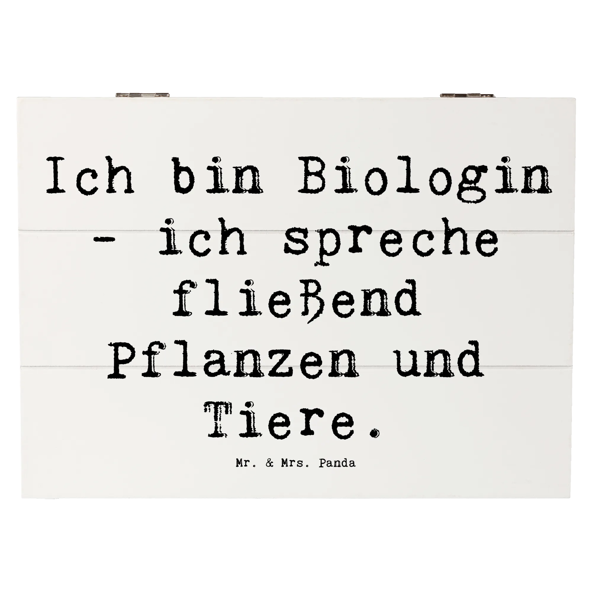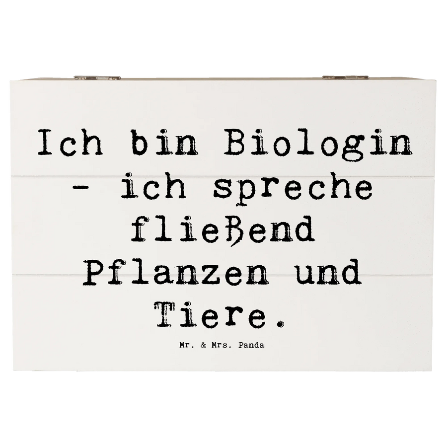 Wooden chest Saying Ich bin Biologin - ich spreche fließend Pflanzen und Tiere. - 22 x 15 cm - White