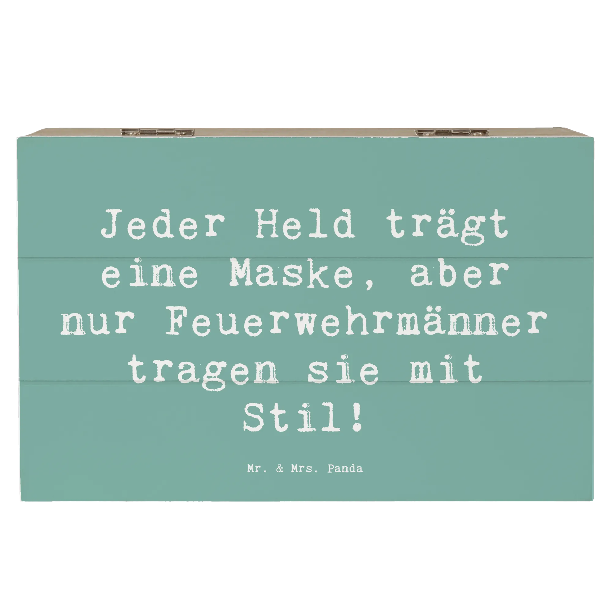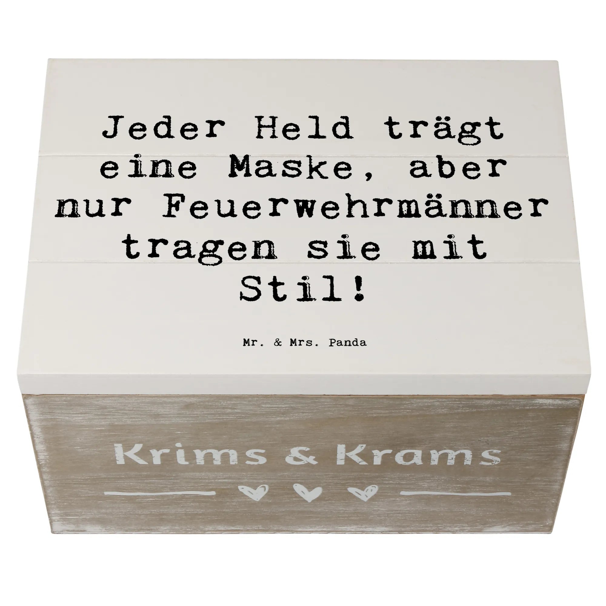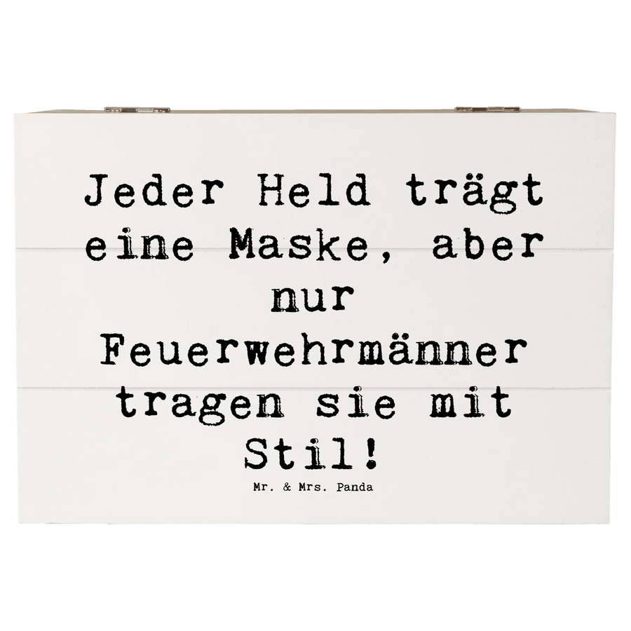 Wooden chest Saying Jeder Held trägt eine Maske, aber nur Feuerwehrmänner tragen sie mit Stil! - 22 x 15 cm - White