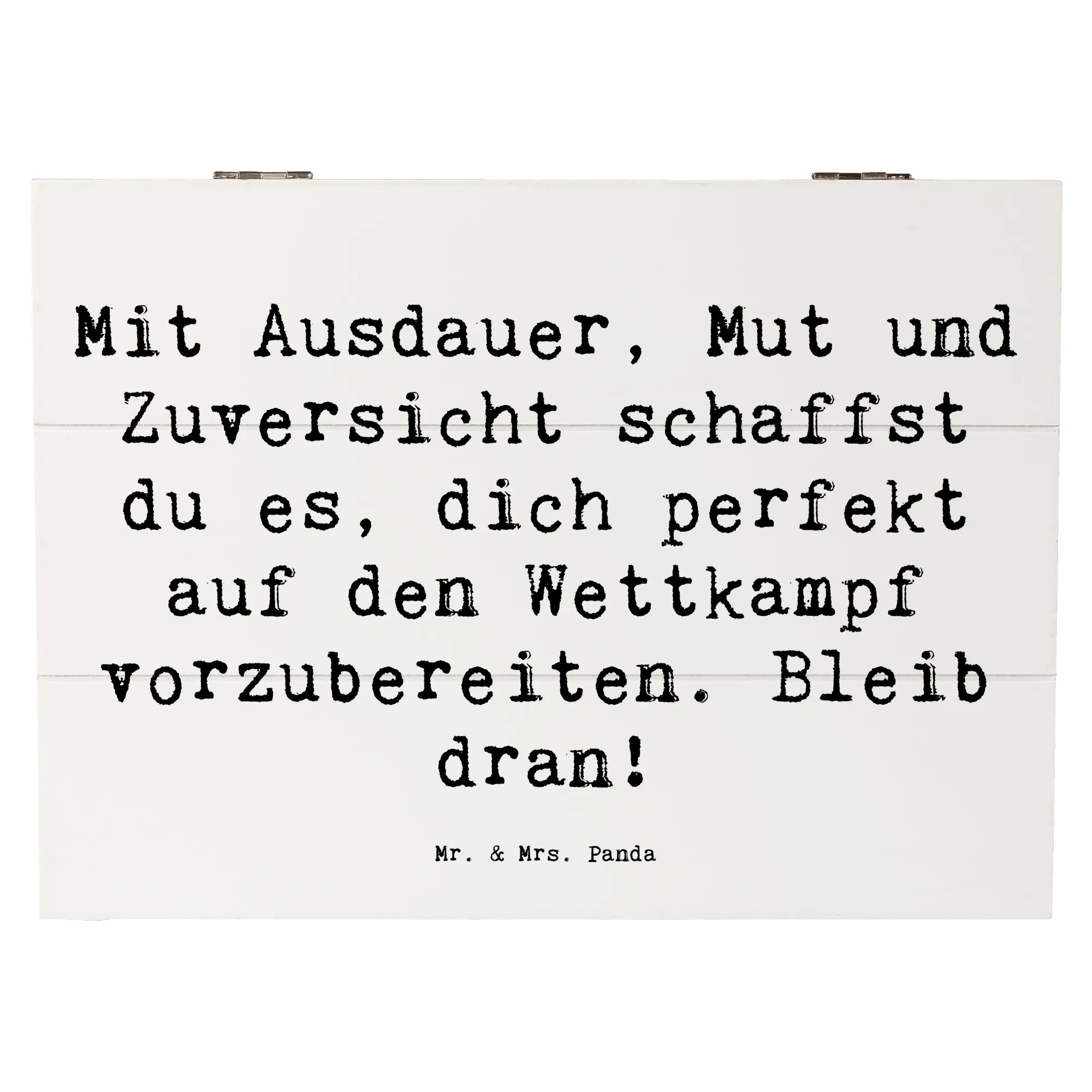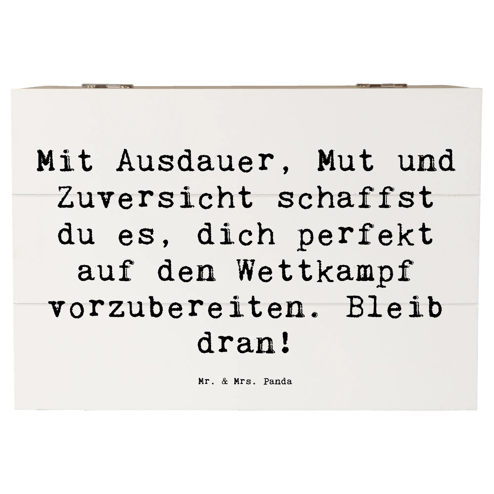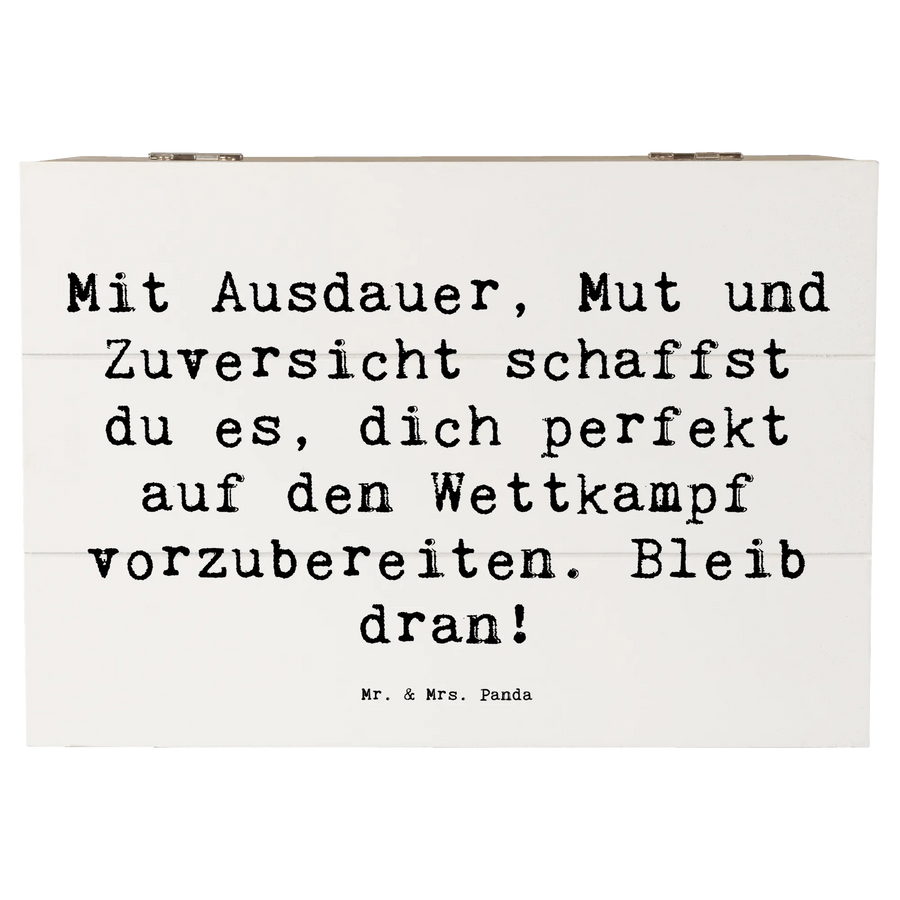Wooden chest Saying Mit Ausdauer, Mut und Zuversicht schaffst du es, dich perfekt auf den Wettkampf vorzubereiten. Bleib dran! - 22 x 15 cm - White