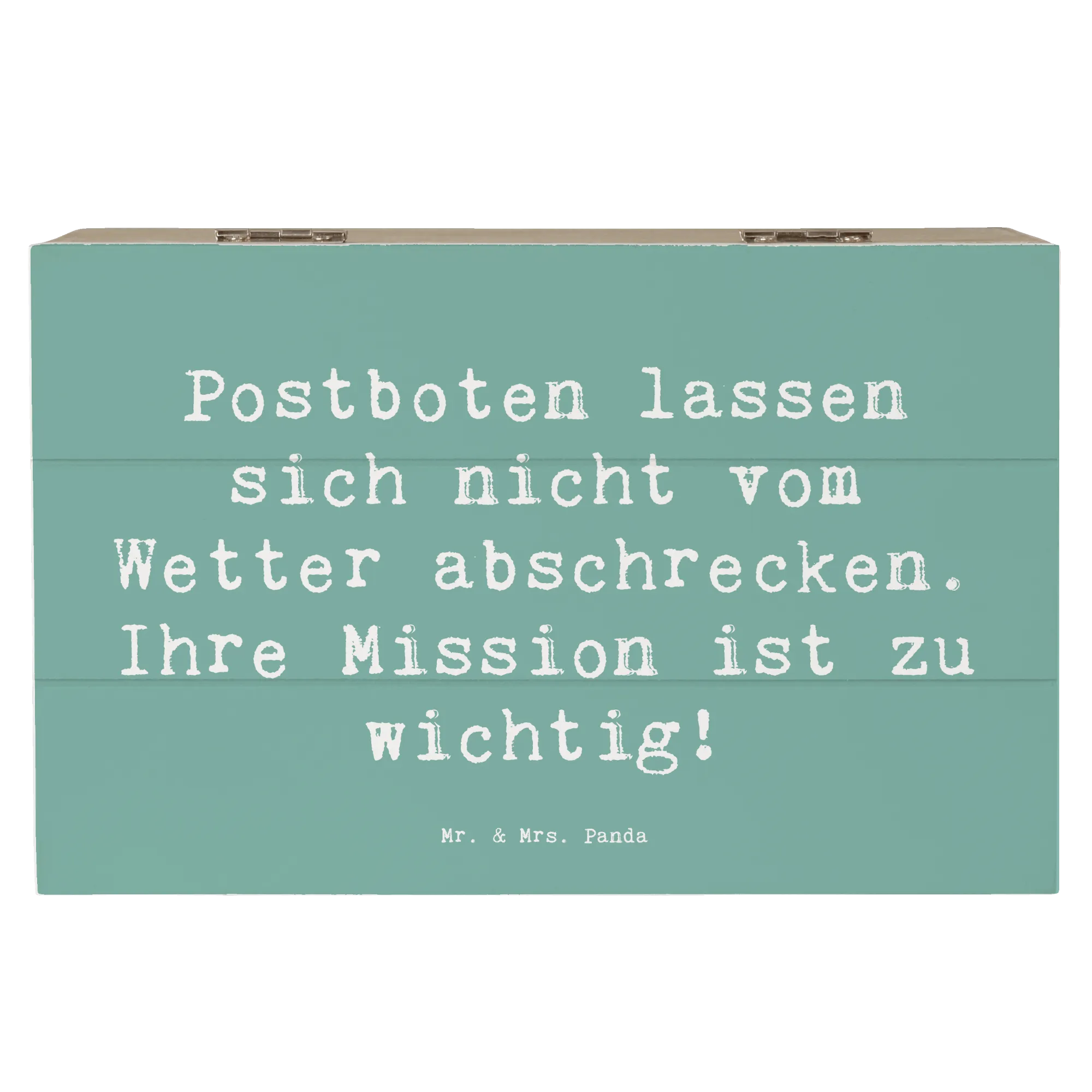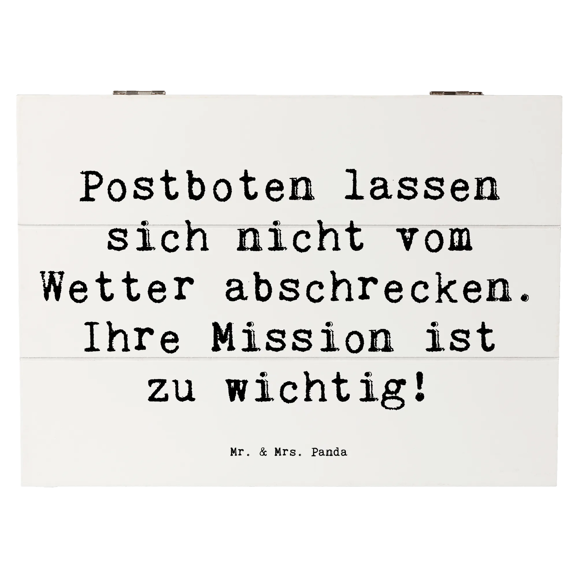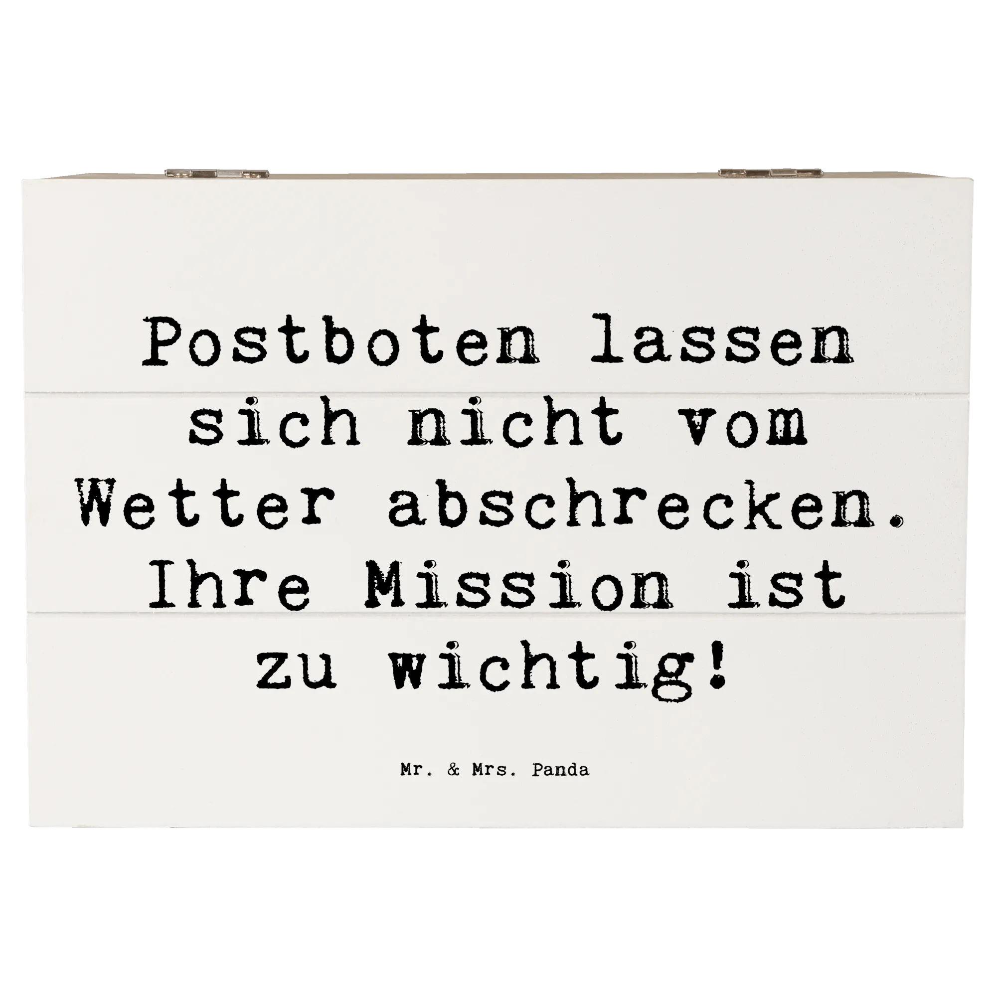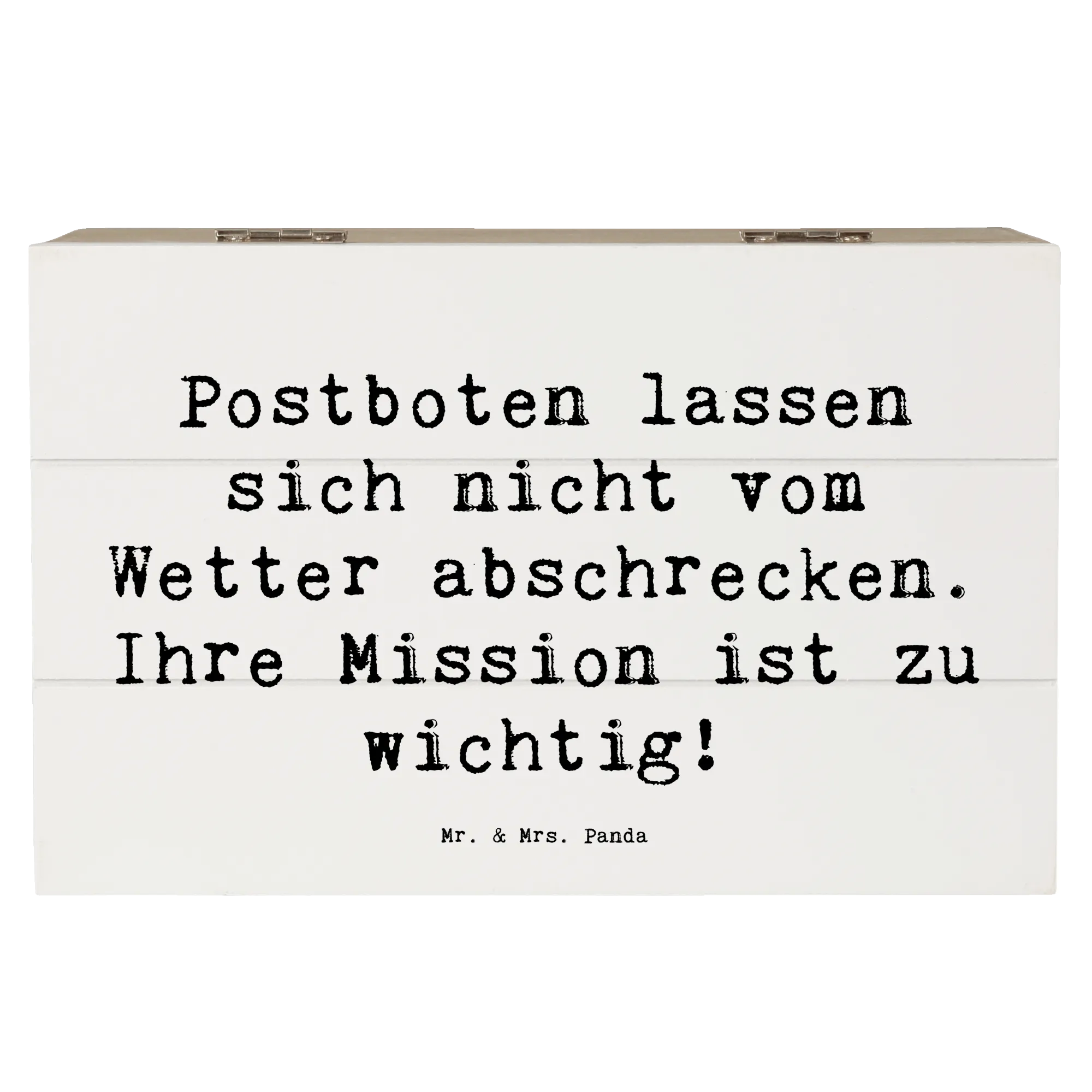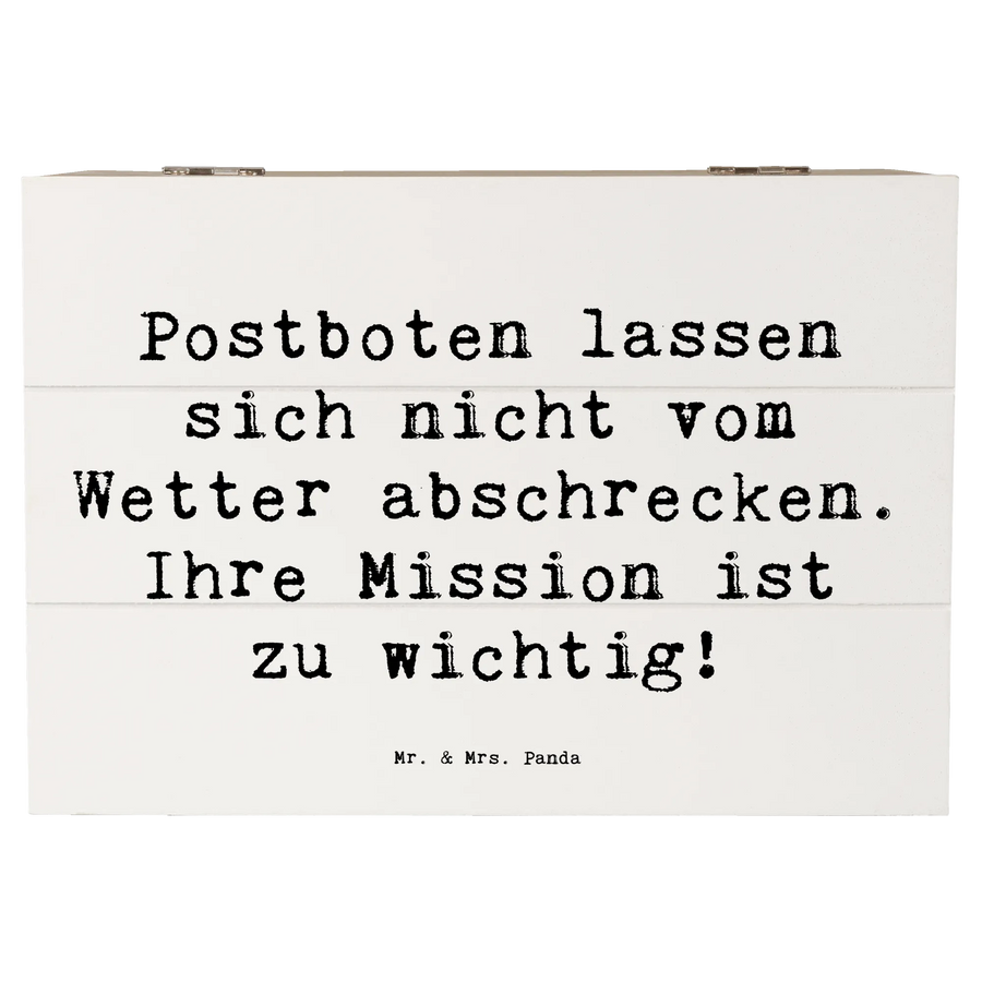 Wooden chest Saying Postboten lassen sich nicht vom Wetter abschrecken. Ihre Mission ist zu wichtig! - 22 x 15 cm - White
