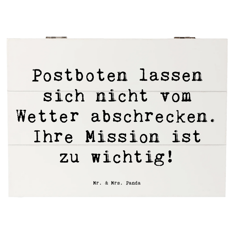 Wooden chest Saying Postboten lassen sich nicht vom Wetter abschrecken. Ihre Mission ist zu wichtig! - 25 x 18 cm - White