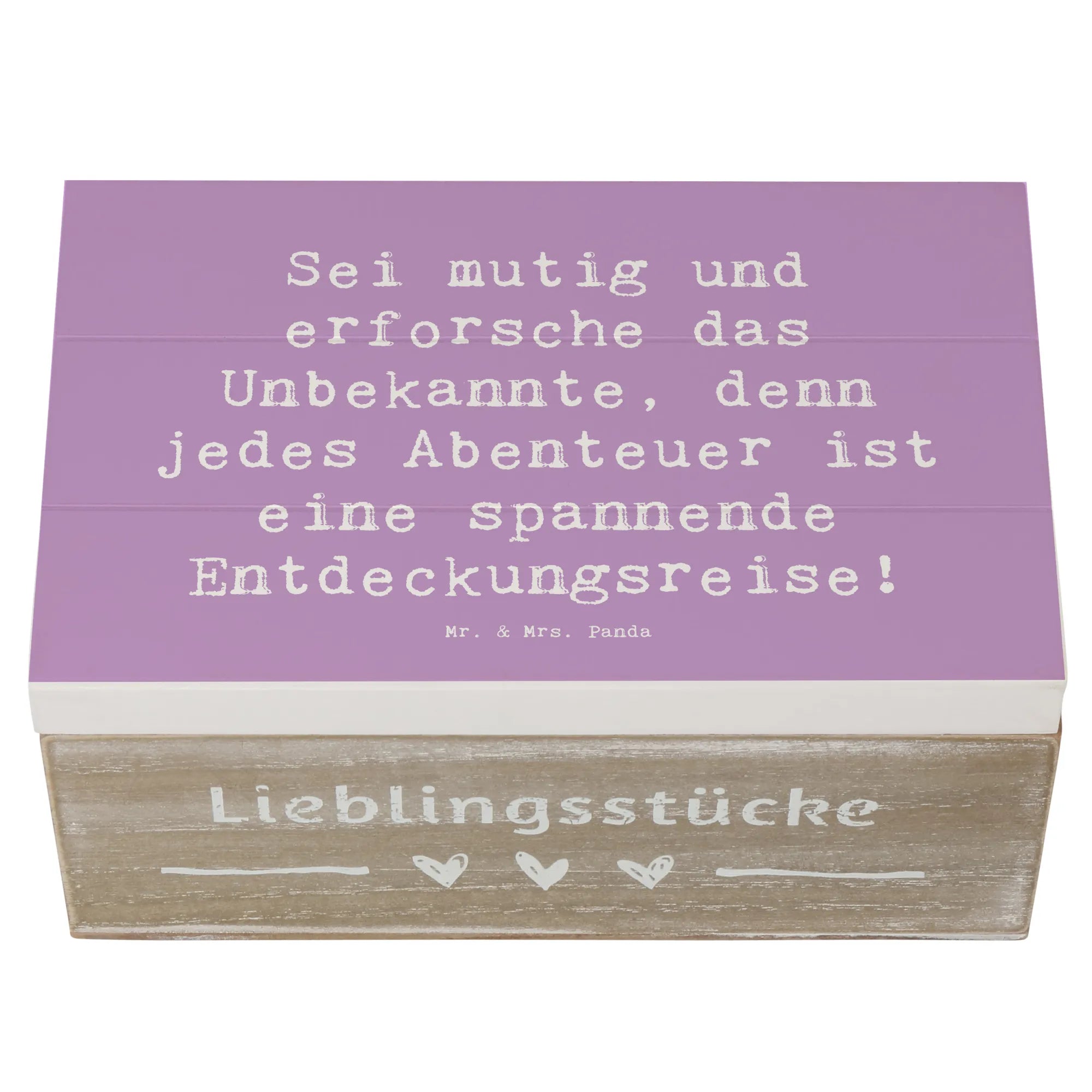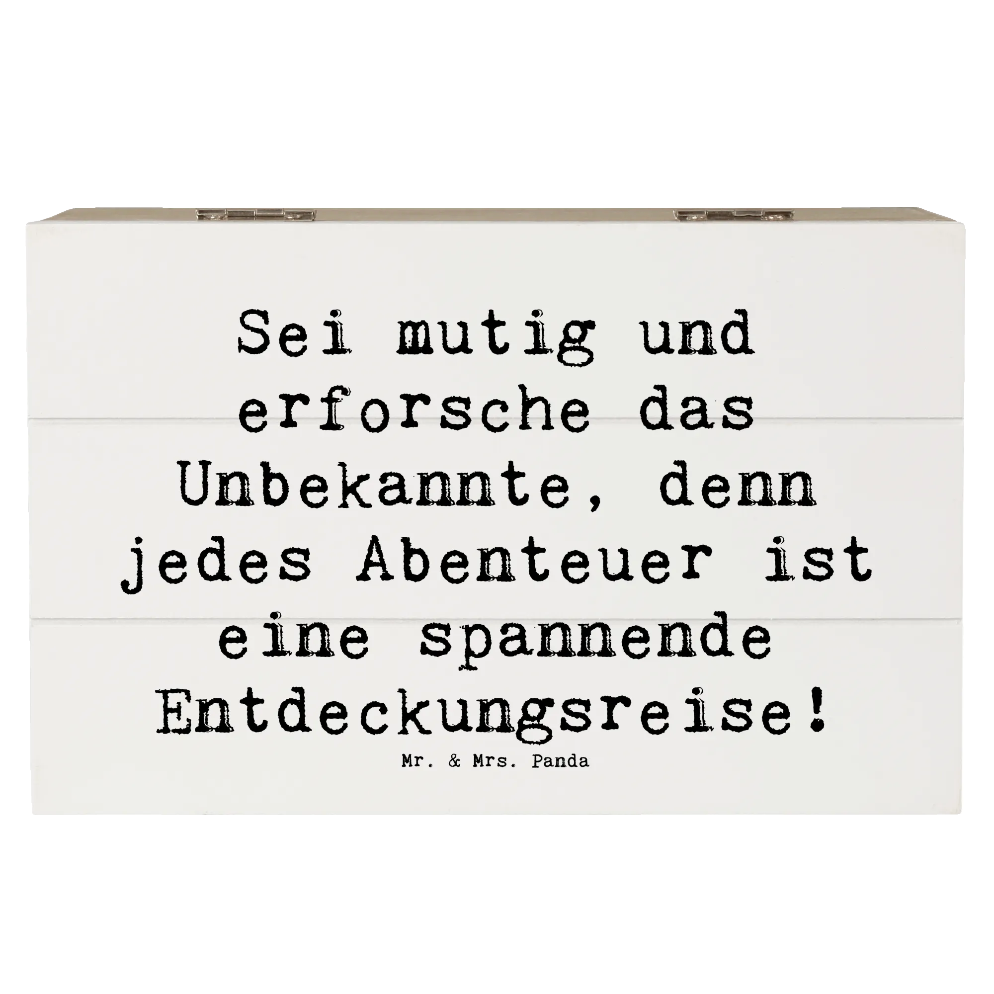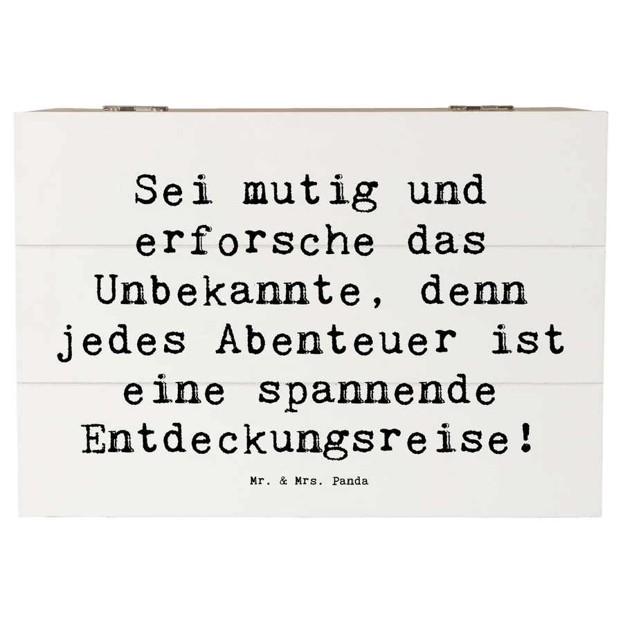Wooden chest Saying Sei mutig und erforsche das Unbekannte, denn jedes Abenteuer ist eine spannende Entdeckungsreise! - 22 x 15 cm - White