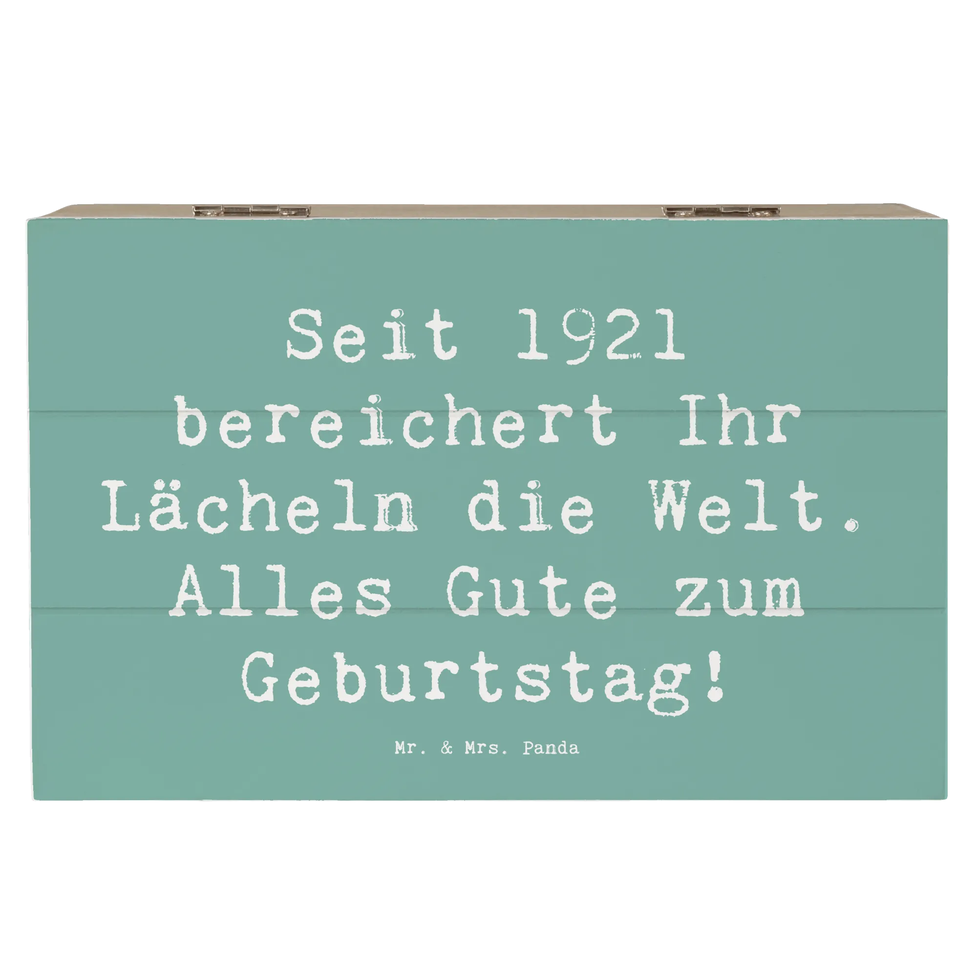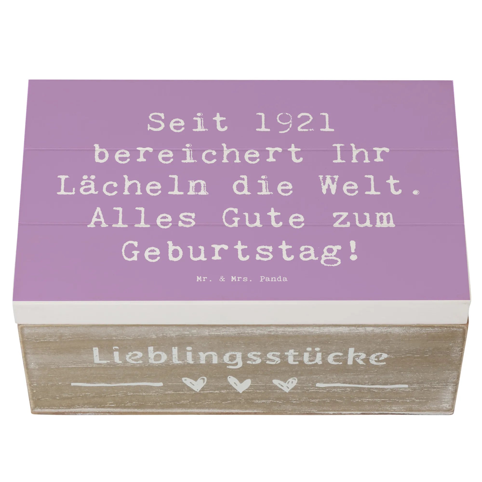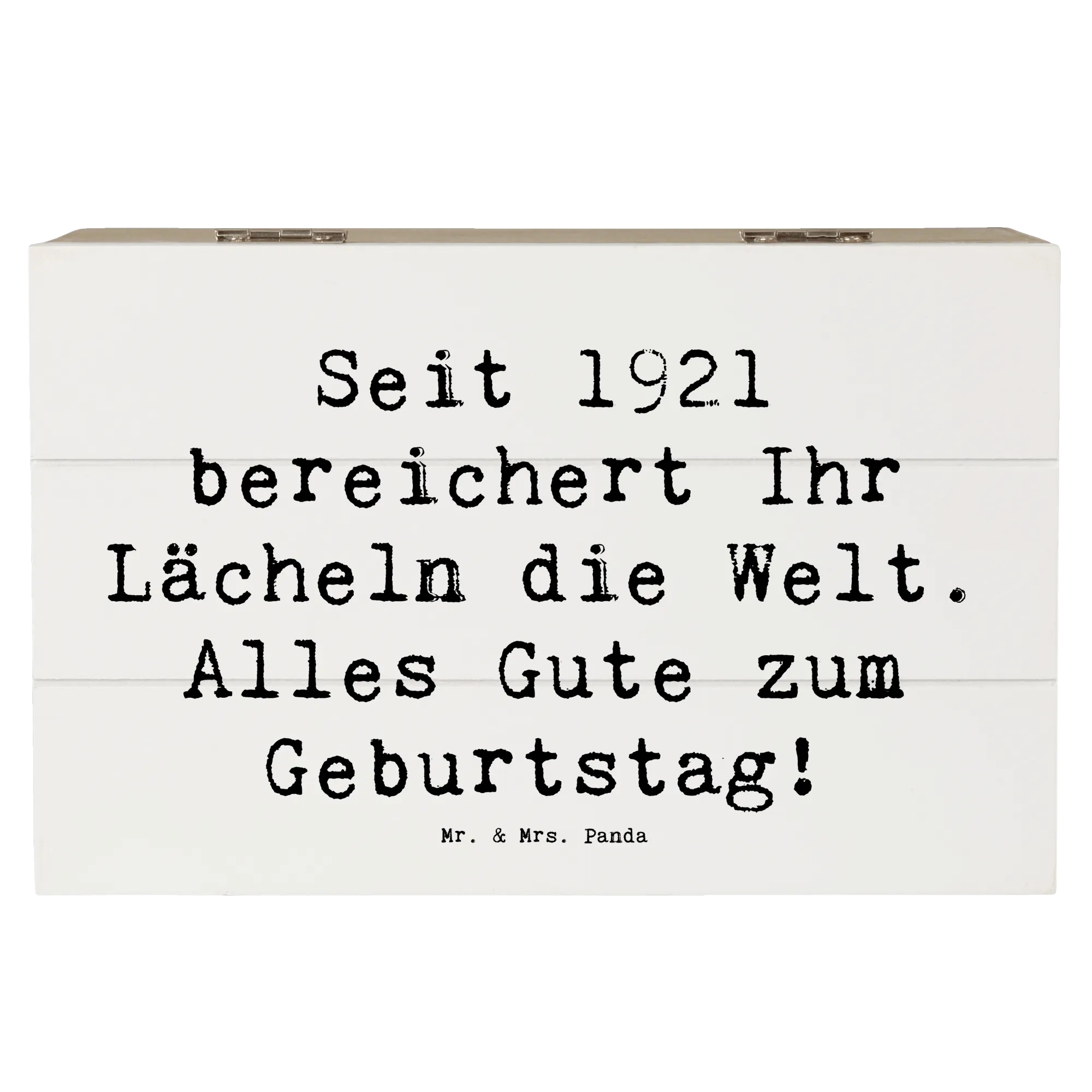 Wooden chest Saying Seit 1921 bereichert Ihr Lächeln die Welt. Alles Gute zum Geburtstag! - 22 x 15 cm - White