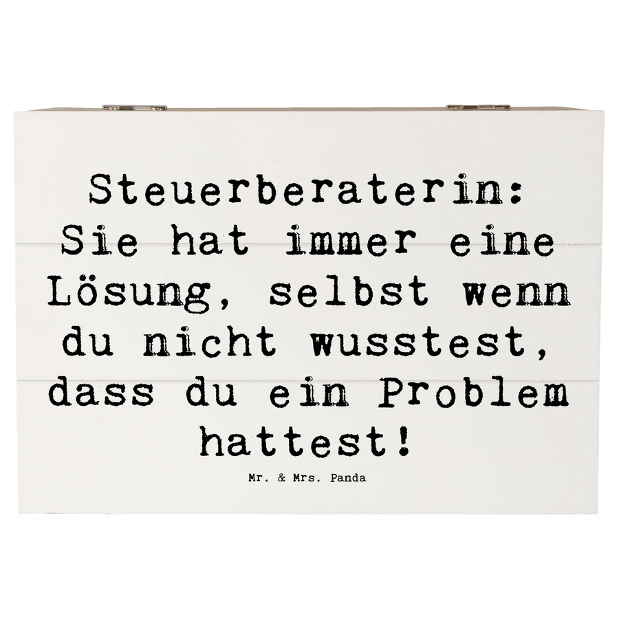 Mr. & Mrs. Panda Holzkiste „Steuerberaterin“ – ein kleines Geschenk mit großer Wirkung. Diese dekorative Aufbewahrungsbox Holz aus der Berufe-Kollektion trägt den liebevollen Spruch „Steuerberaterin: Sie hat immer eine Lösung, selbst wenn du nicht wusstest, dass du ein Problem hattest!“ und zaubert damit ein Lächeln auf jedes Gesicht.