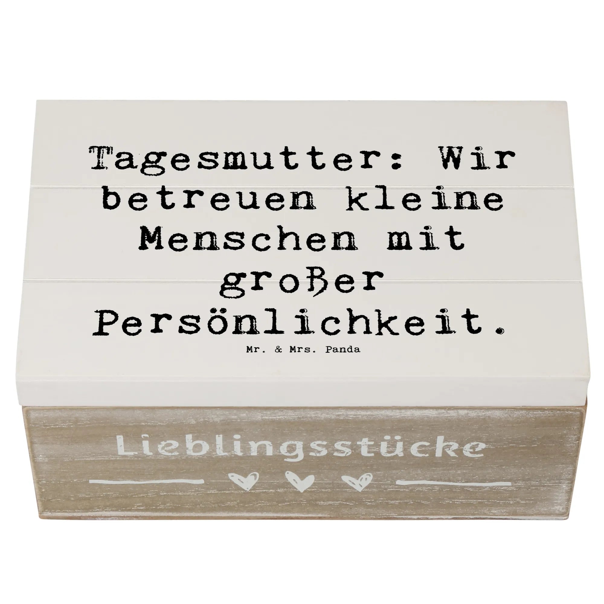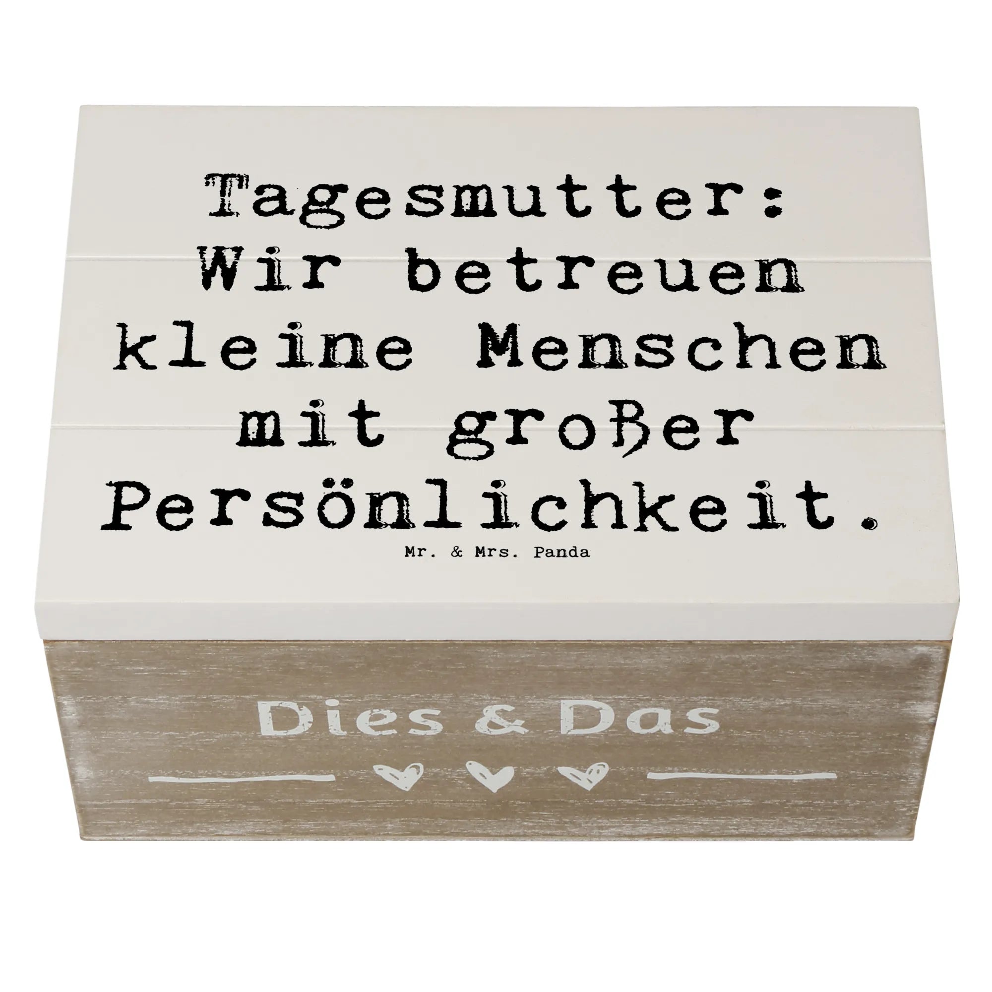 Wooden chest Saying Tagesmutter: Wir betreuen kleine Menschen mit großer Persönlichkeit. - 22 x 15 cm - White