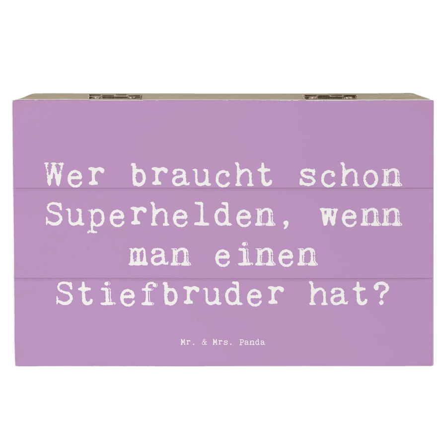 Wooden chest Saying Wer braucht schon Superhelden, wenn man einen Stiefbruder hat? - 19 x 12 cm - Lavender Dream