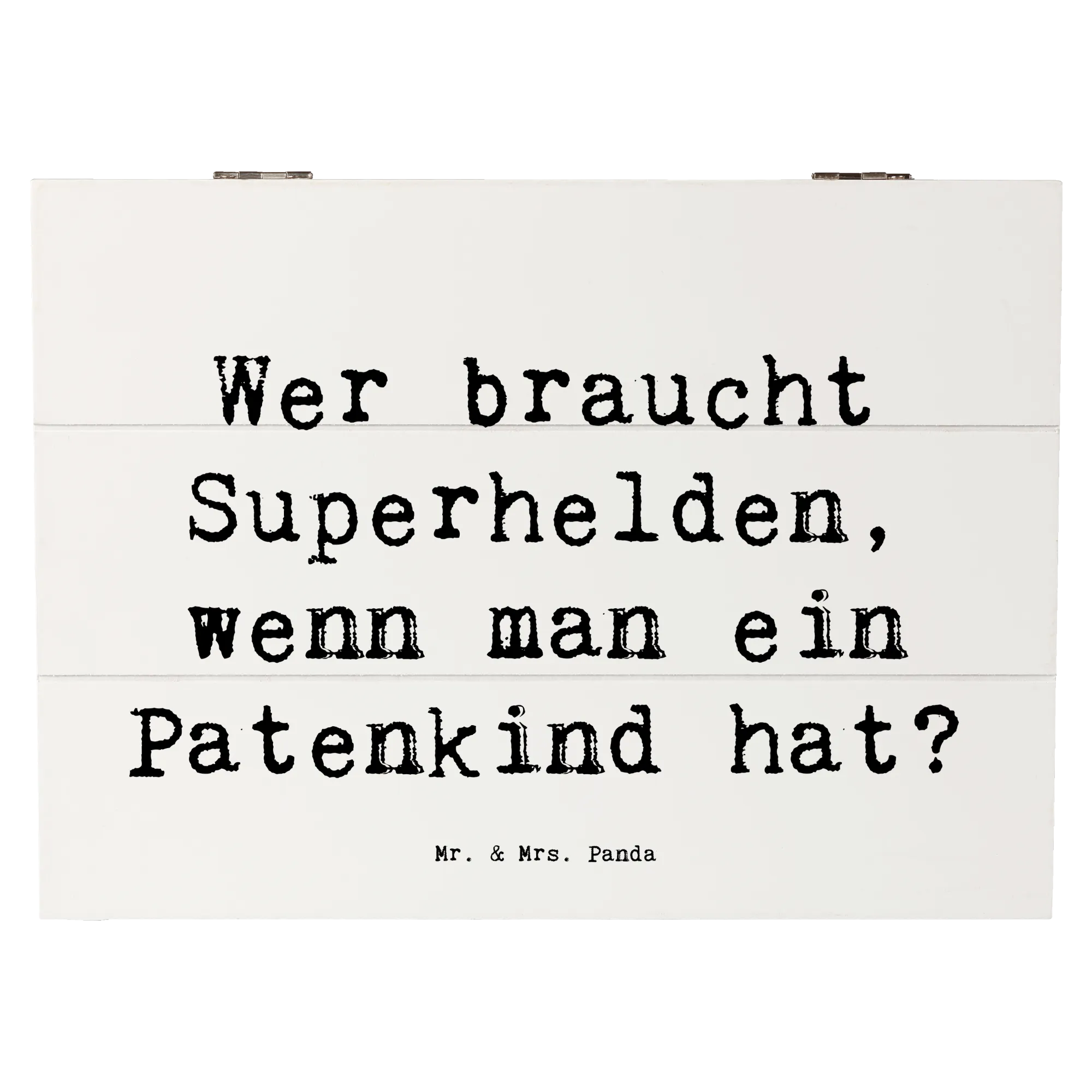 Wooden chest Saying Wer braucht Superhelden, wenn man ein Patenkind hat? - 22 x 15 cm - White