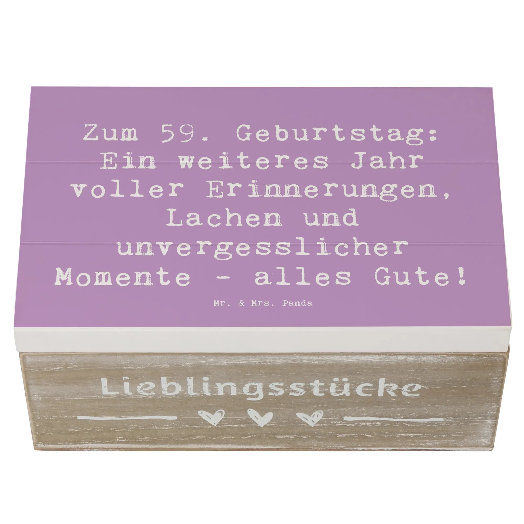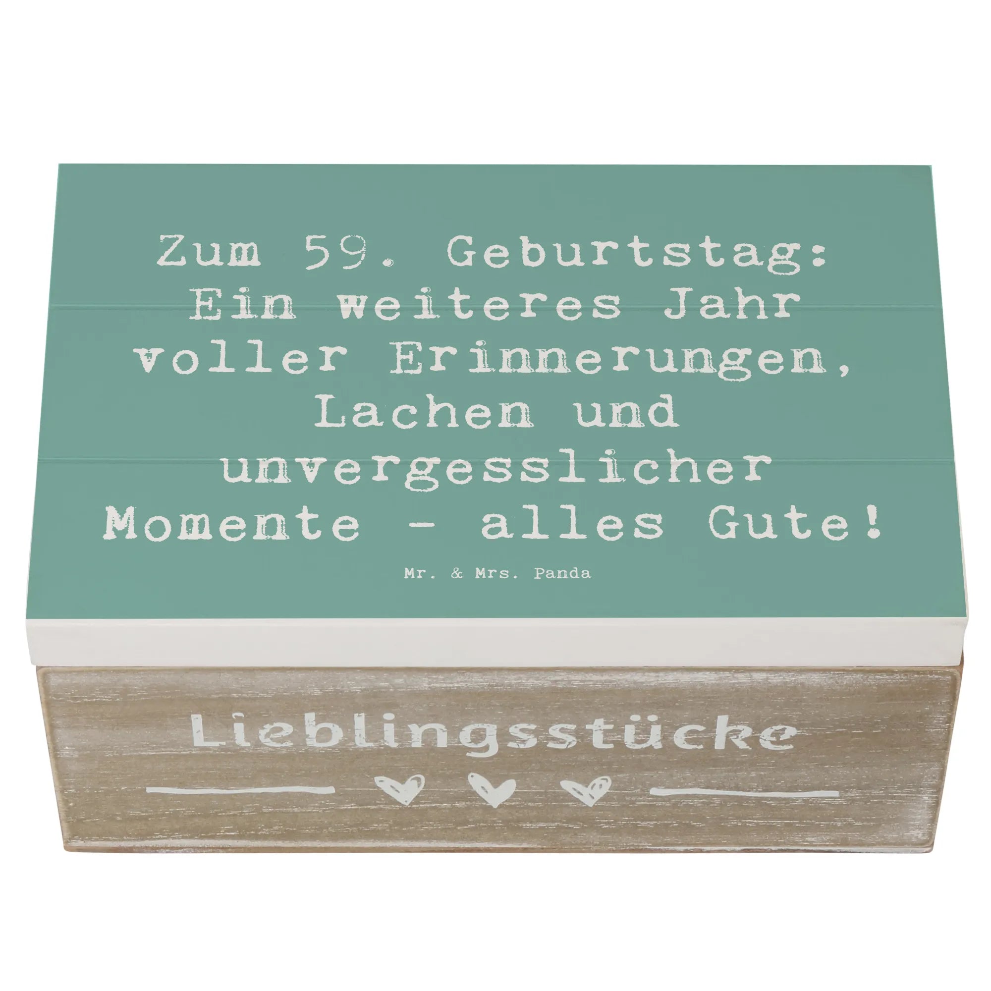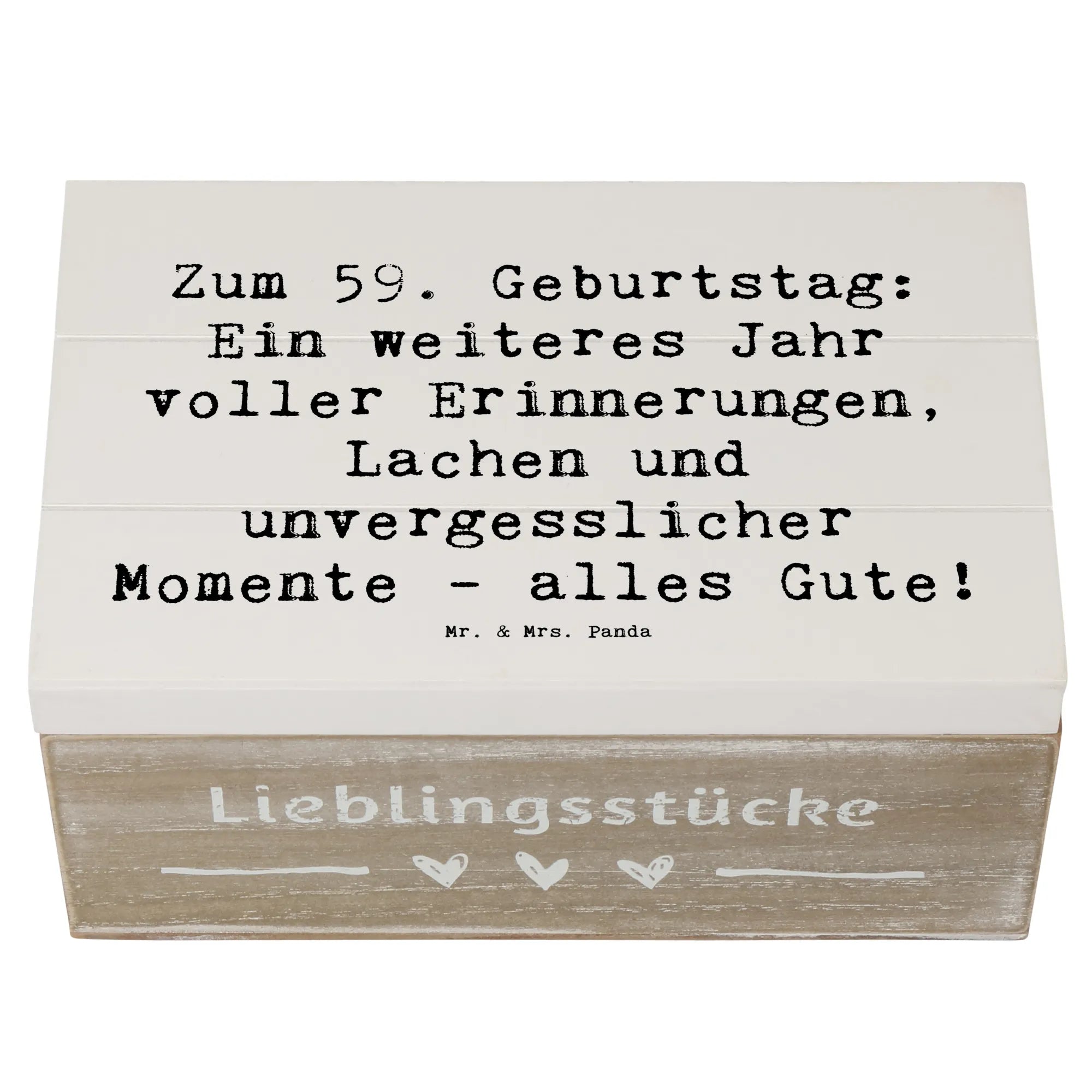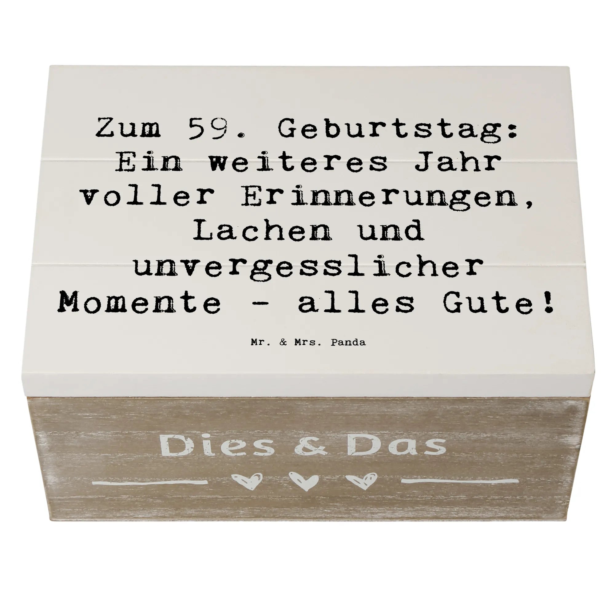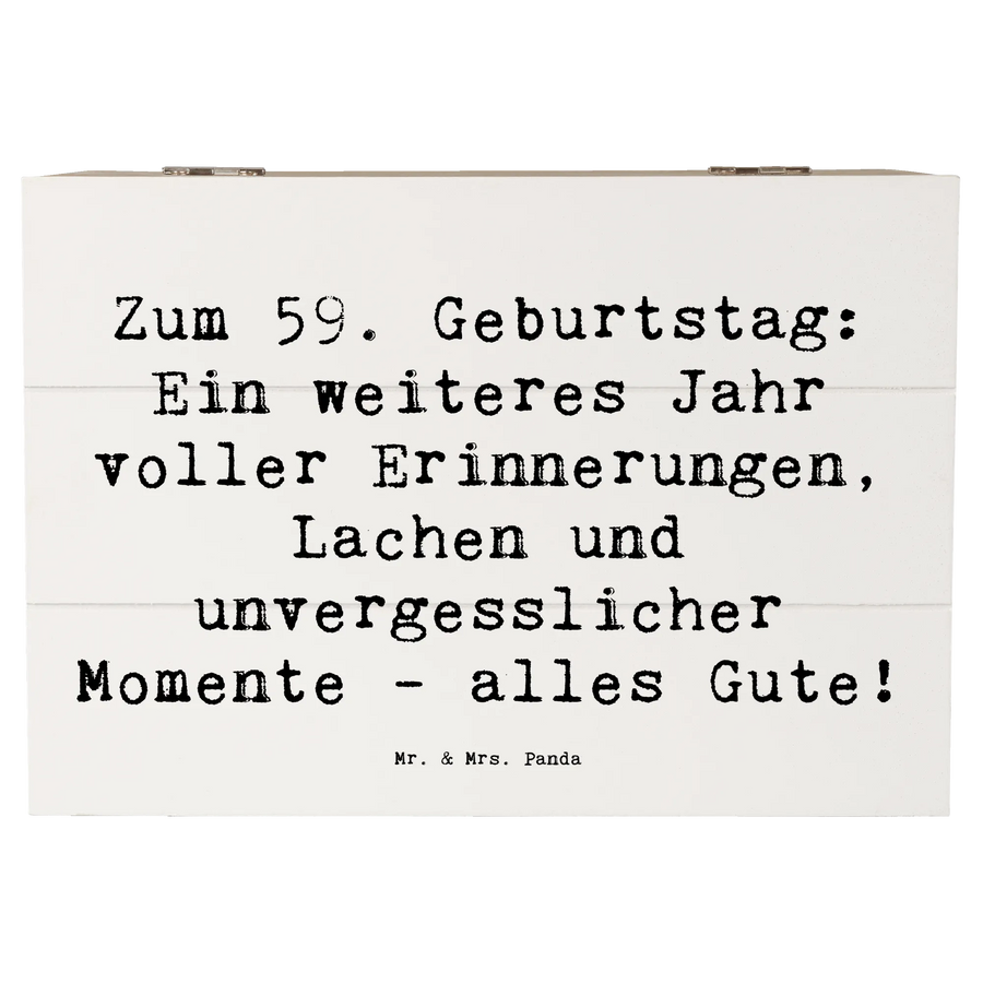 Wooden chest Saying Zum 59. Geburtstag: Ein weiteres Jahr voller Erinnerungen, Lachen und unvergesslicher Momente - alles Gute! - 22 x 15 cm - White