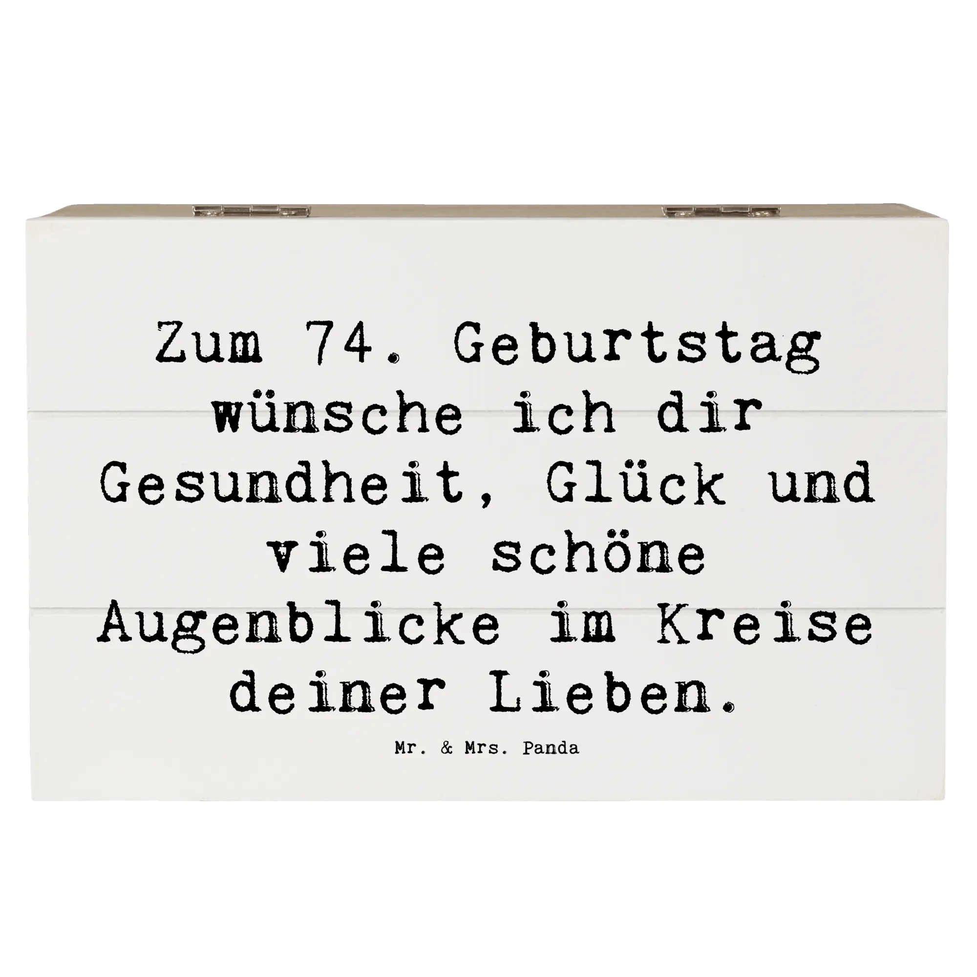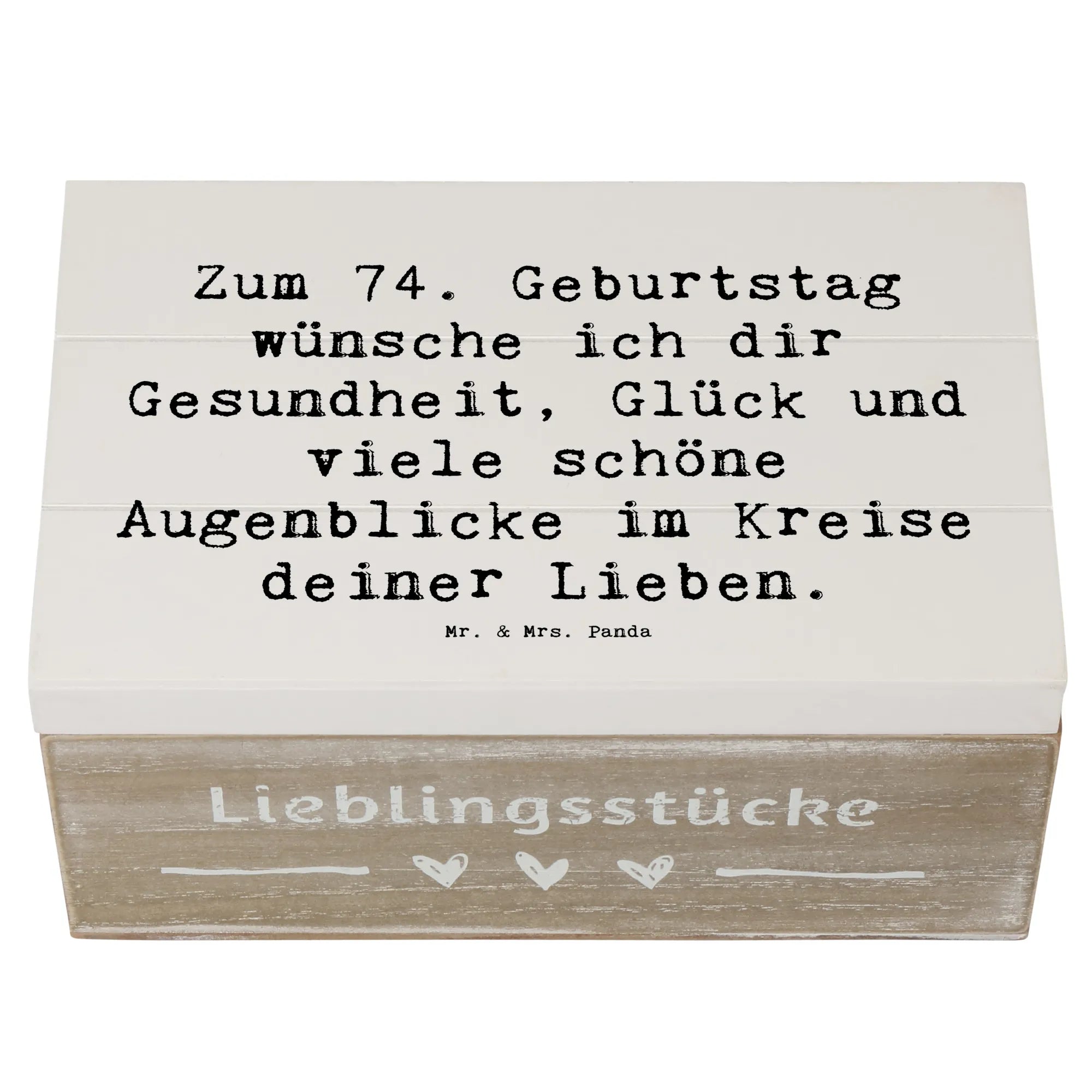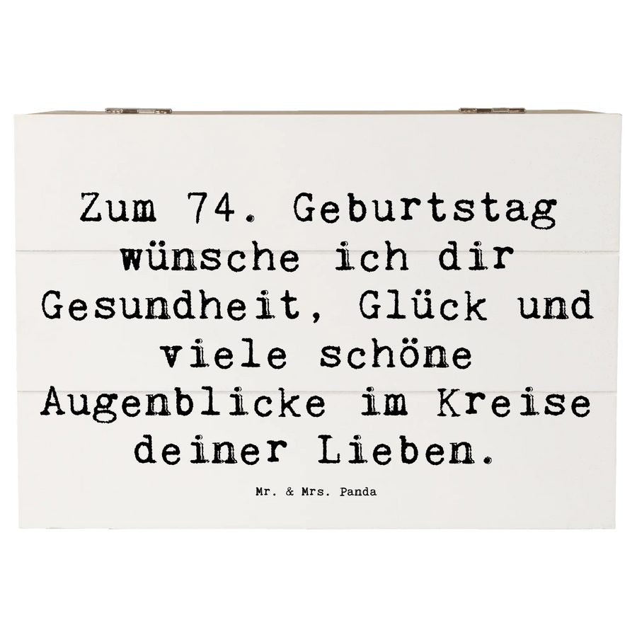 Wooden chest Saying Zum 74. Geburtstag wünsche ich dir Gesundheit, Glück und viele schöne Augenblicke im Kreise deiner Lieben. - 22 x 15 cm - White