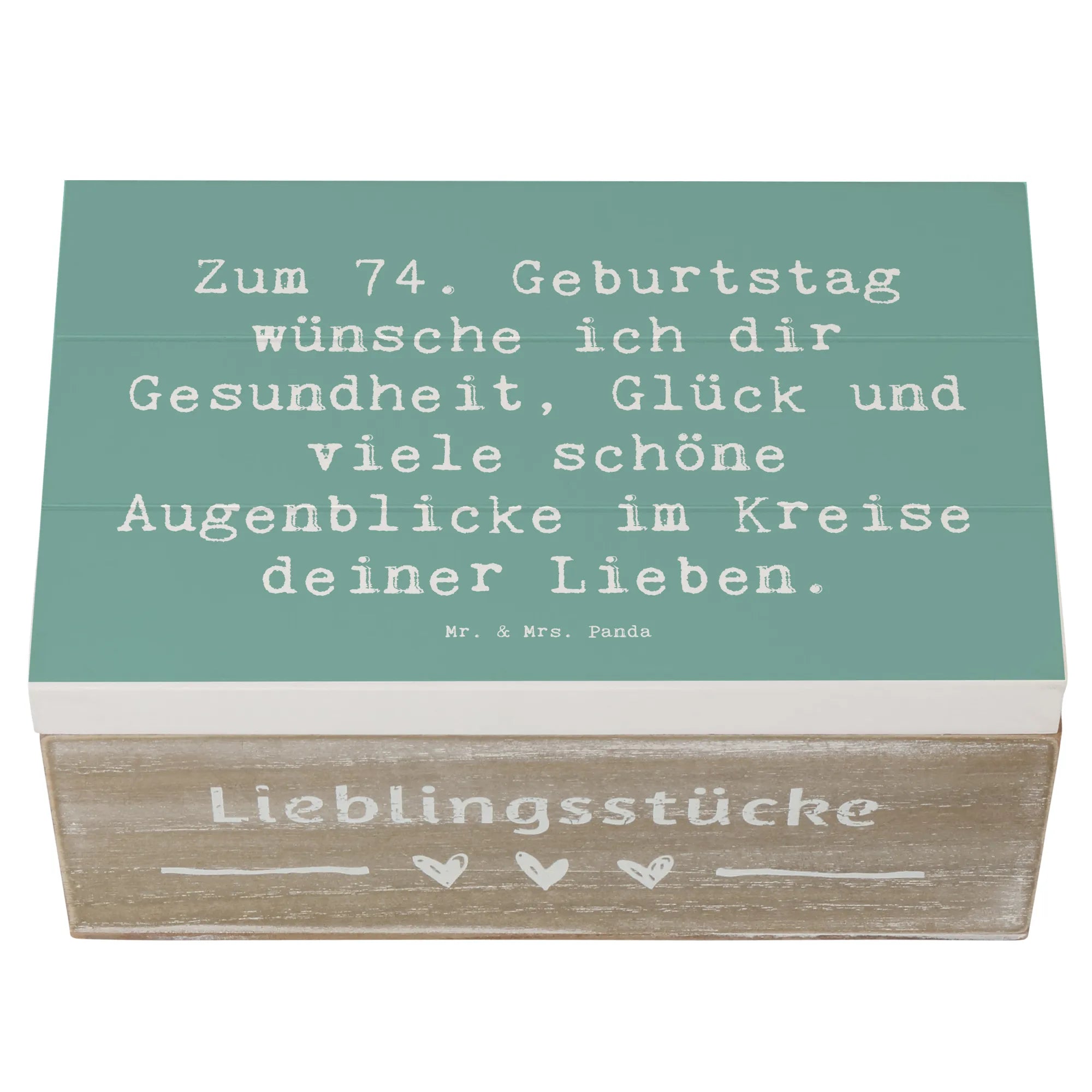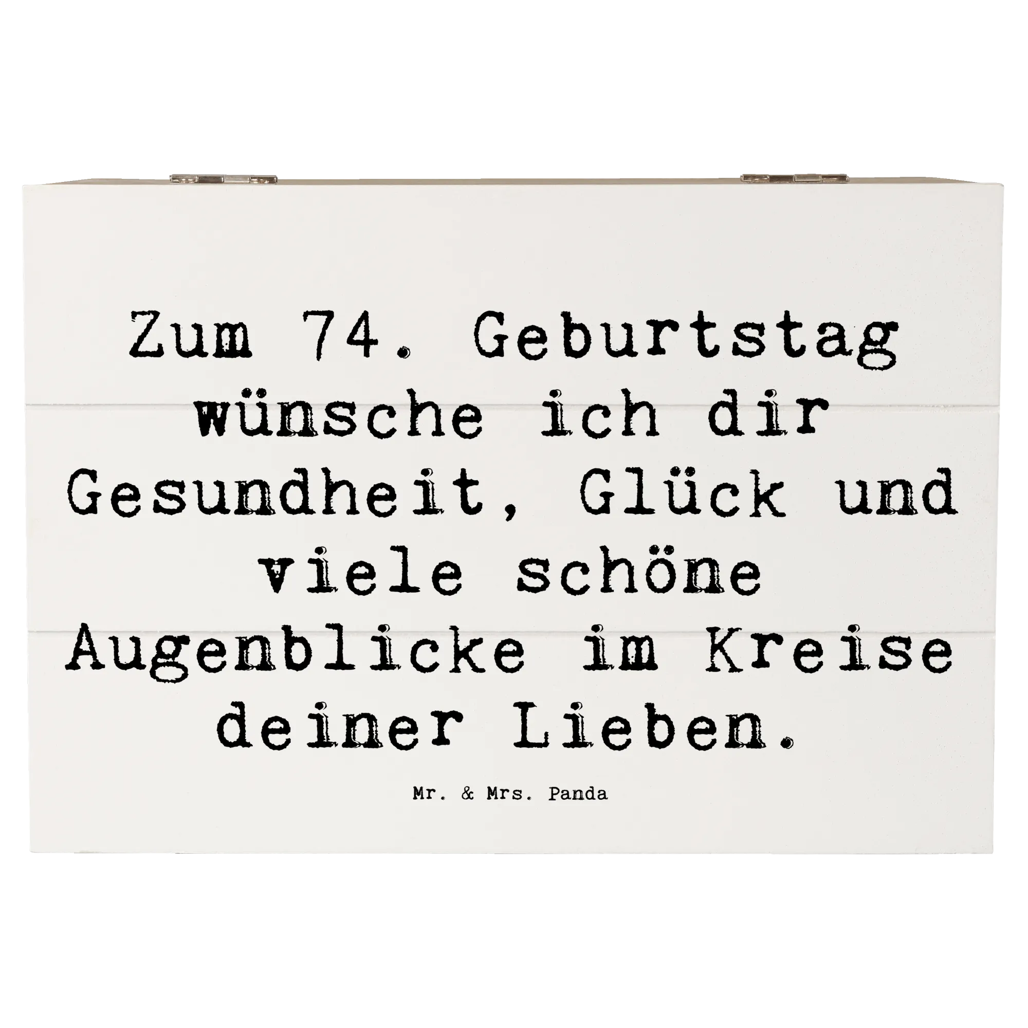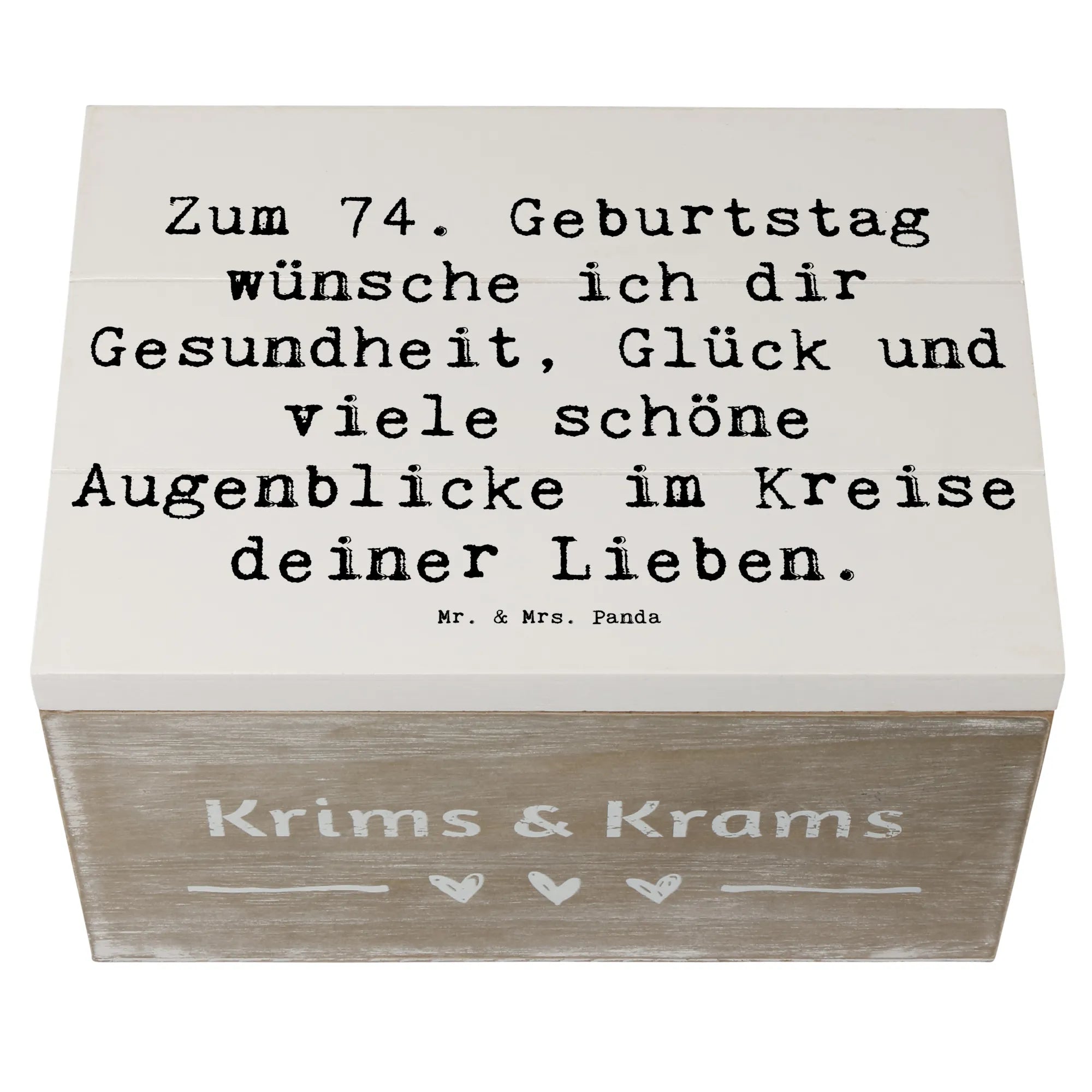 Wooden chest Saying Zum 74. Geburtstag wünsche ich dir Gesundheit, Glück und viele schöne Augenblicke im Kreise deiner Lieben. - 22 x 15 cm - White