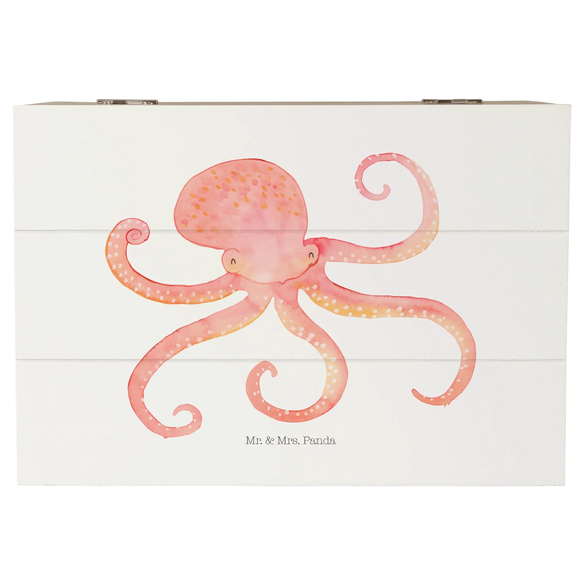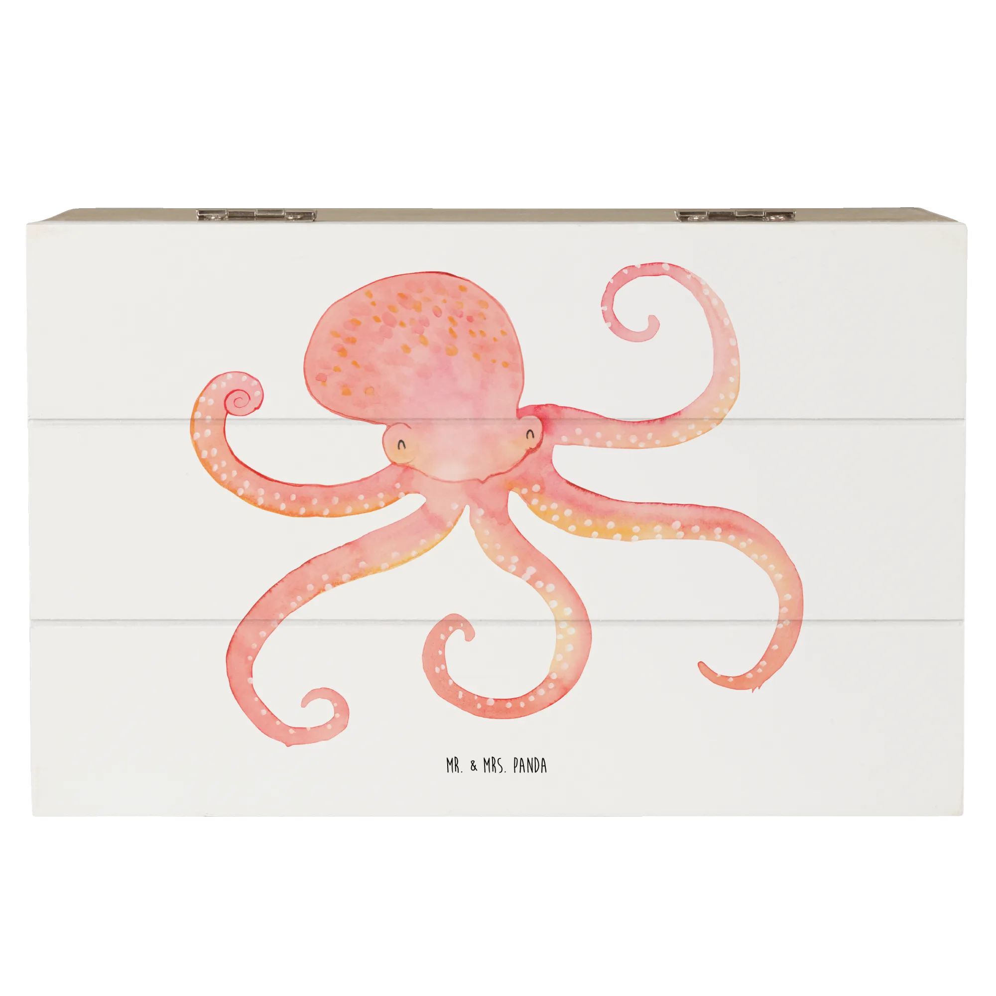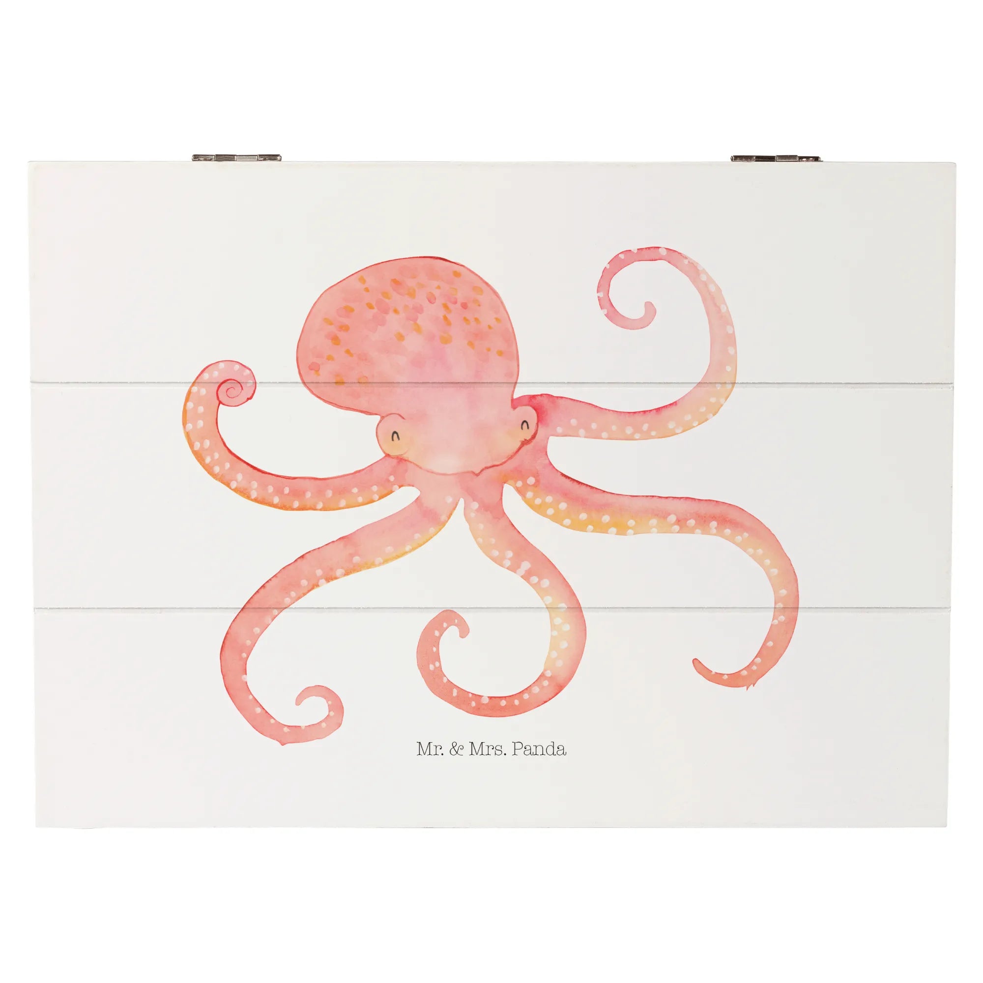 The gorgeous design features the squid’s vibrant red color and charming waving arms, instantly bringing a smile to anyone who lays eyes upon it. Each detail is lovingly hand-drawn by Mrs. Panda, ensuring that every wooden casket is a unique work of art. Measuring 22x15cm, it's perfectly sized for storing photos, trinkets, or any small objects that hold a sentimental value.