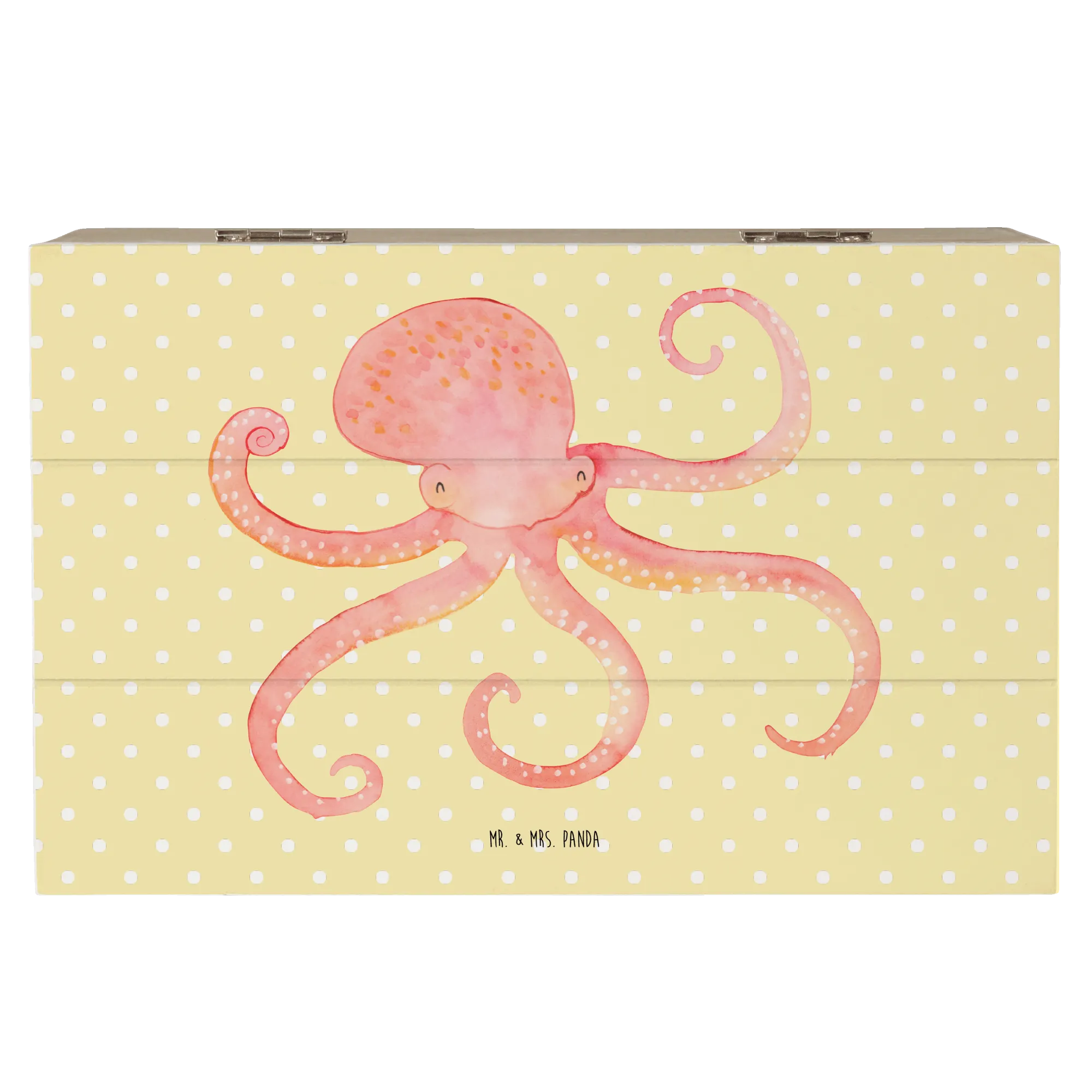 Dive into the enchanting world of the ocean with the delightful Mr. & Mrs. Panda Wooden Chest featuring an adorable squid motif from our beloved Small World collection. This charming memory box is designed to bring a smile to the faces of all who encounter it, including animal lovers of all ages.