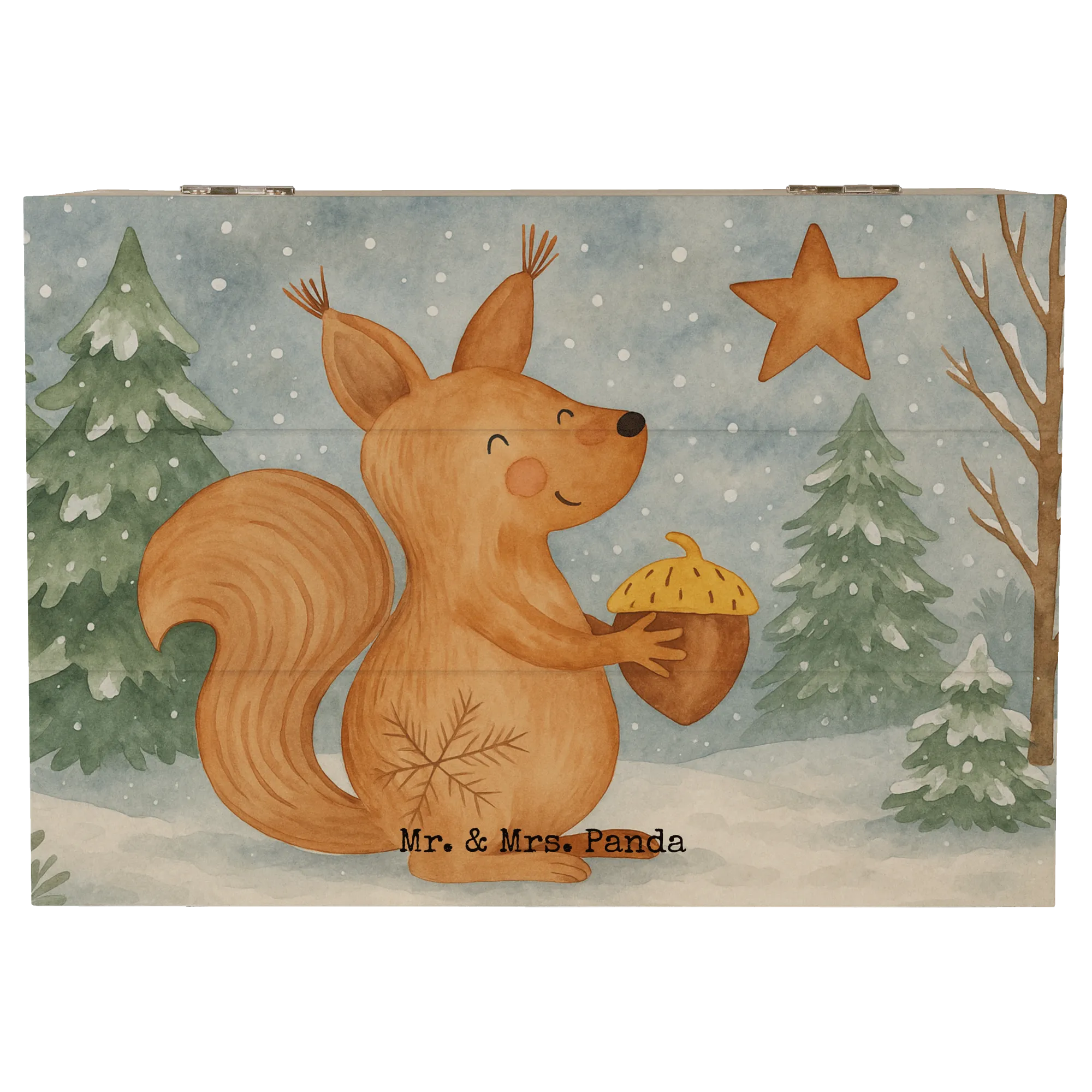Wooden chest Squirrel Christmas Design - 22 x 15 cm - with saying