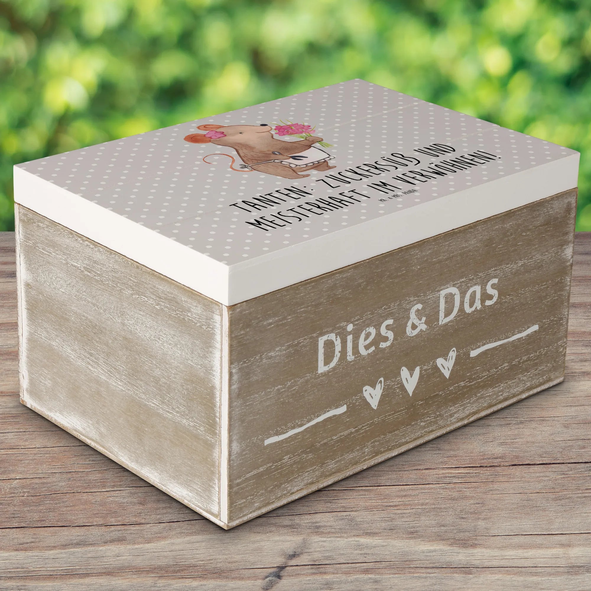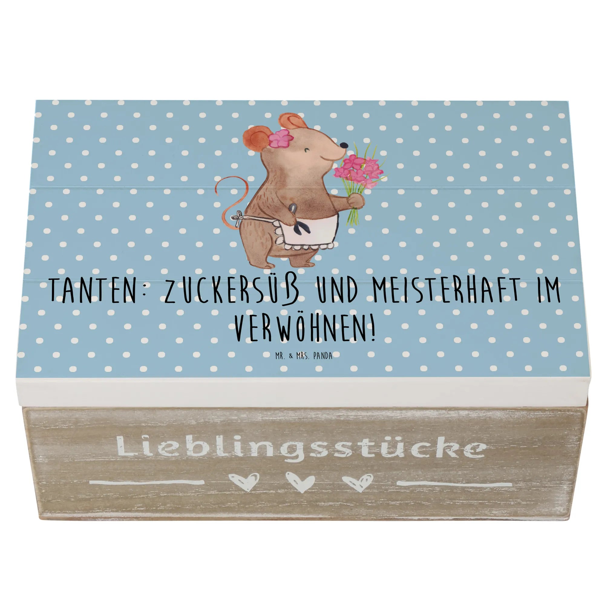 Wooden chest Tanten: Zuckersüß und meisterhaft im Verwöhnen! - 19 x 12 cm - Pastel Blue