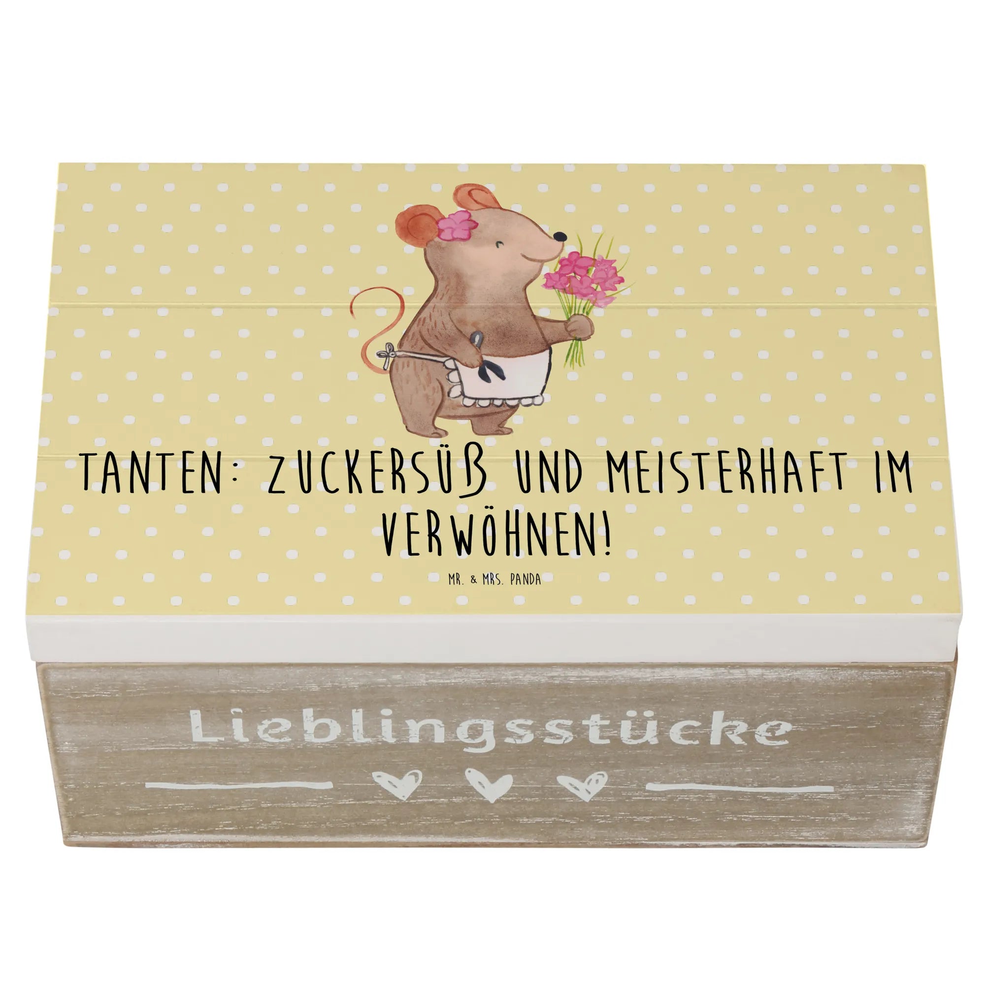 Imagine a beautiful wooden chest crafted by Mr. & Mrs. Panda, where every detail embraces the warmth of your cherished memories. This sturdy chest measures 180 mm x 250 mm x 150 mm, making it a perfect spot to store your most treasured items. Whether it's for keepsakes from special occasions, childhood mementos, or as a stylish way to store family photos, this chest is sure to bring joy and inspiration to your home. Made of robust wood fiber, it provides a sustainable and reusable option for gifting or simply organizing your beloved things. With decorative motifs and thoughtful sayings, not only does it serve a functional purpose, but it also adds a delightful touch to any room. Thanks to its unique hinge construction, you can easily open and close it, keeping what's inside secure yet accessible. Remember, this beautiful gem is available in multiple sizes, catering to all your storage needs. A quick wipe with a damp cloth will keep it looking fresh for years to come.