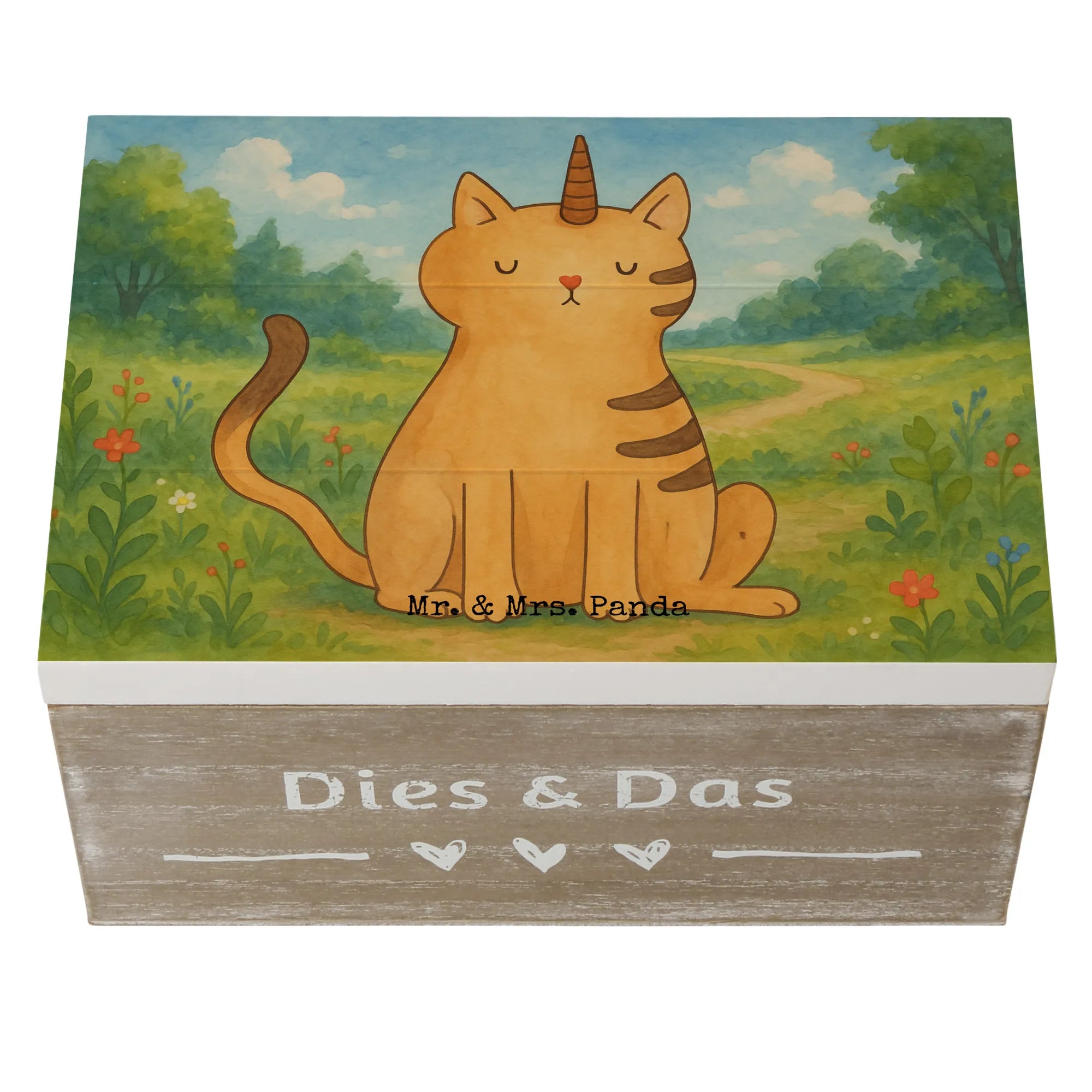 Wooden chest unicorn Cat Design - 22 x 15 cm - with a saying