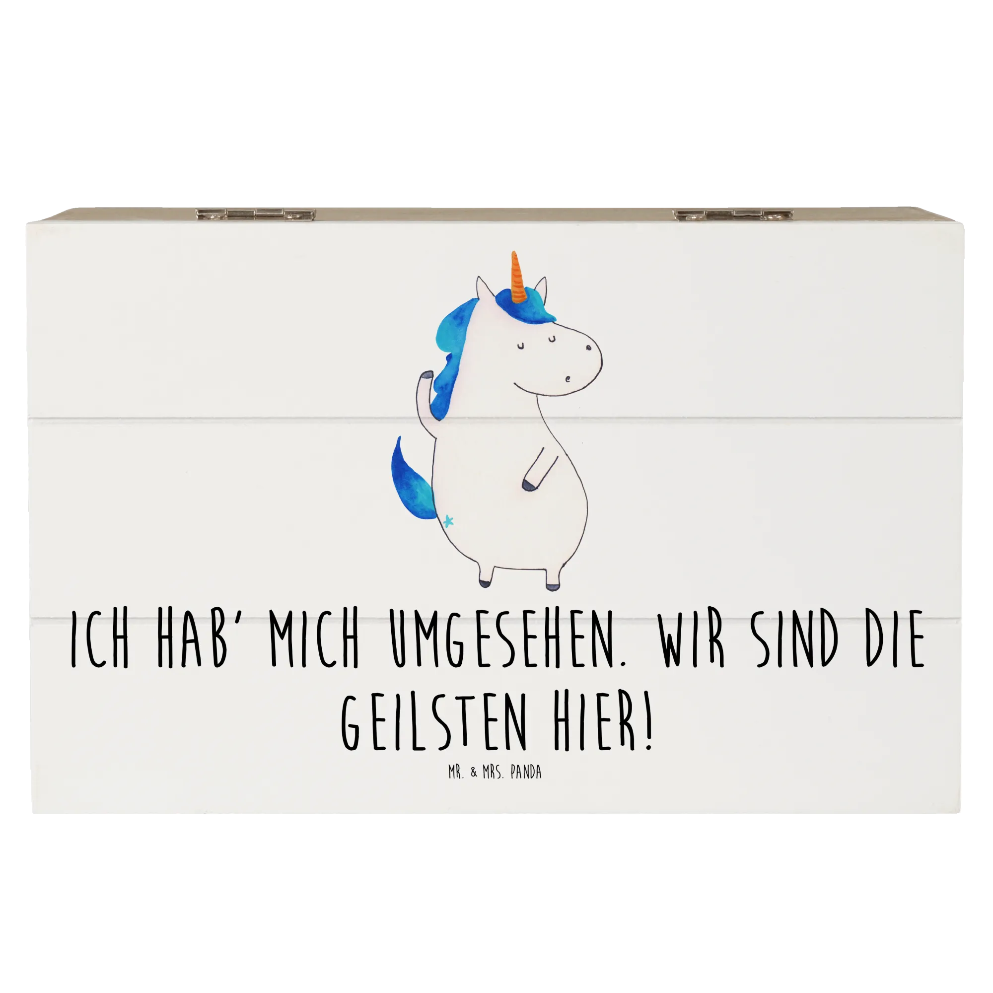 Wooden chest unicorn Man - 22 x 15 cm - with saying - White