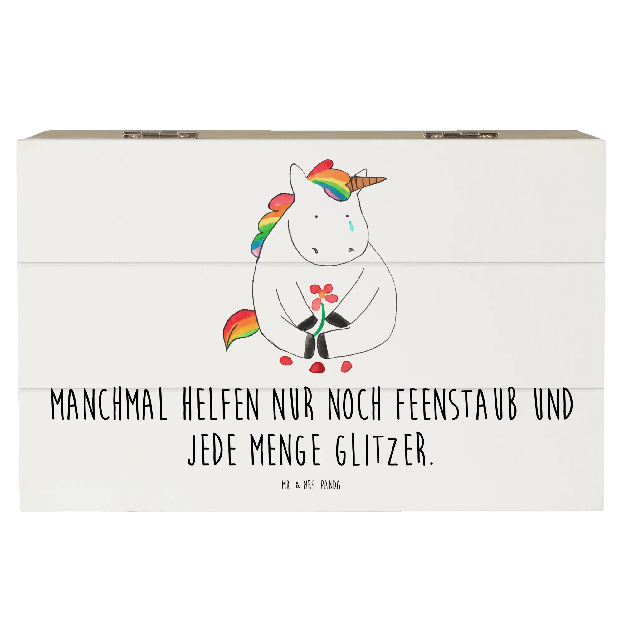Wooden chest unicorn Sad - 22 x 15 cm - with a saying - White