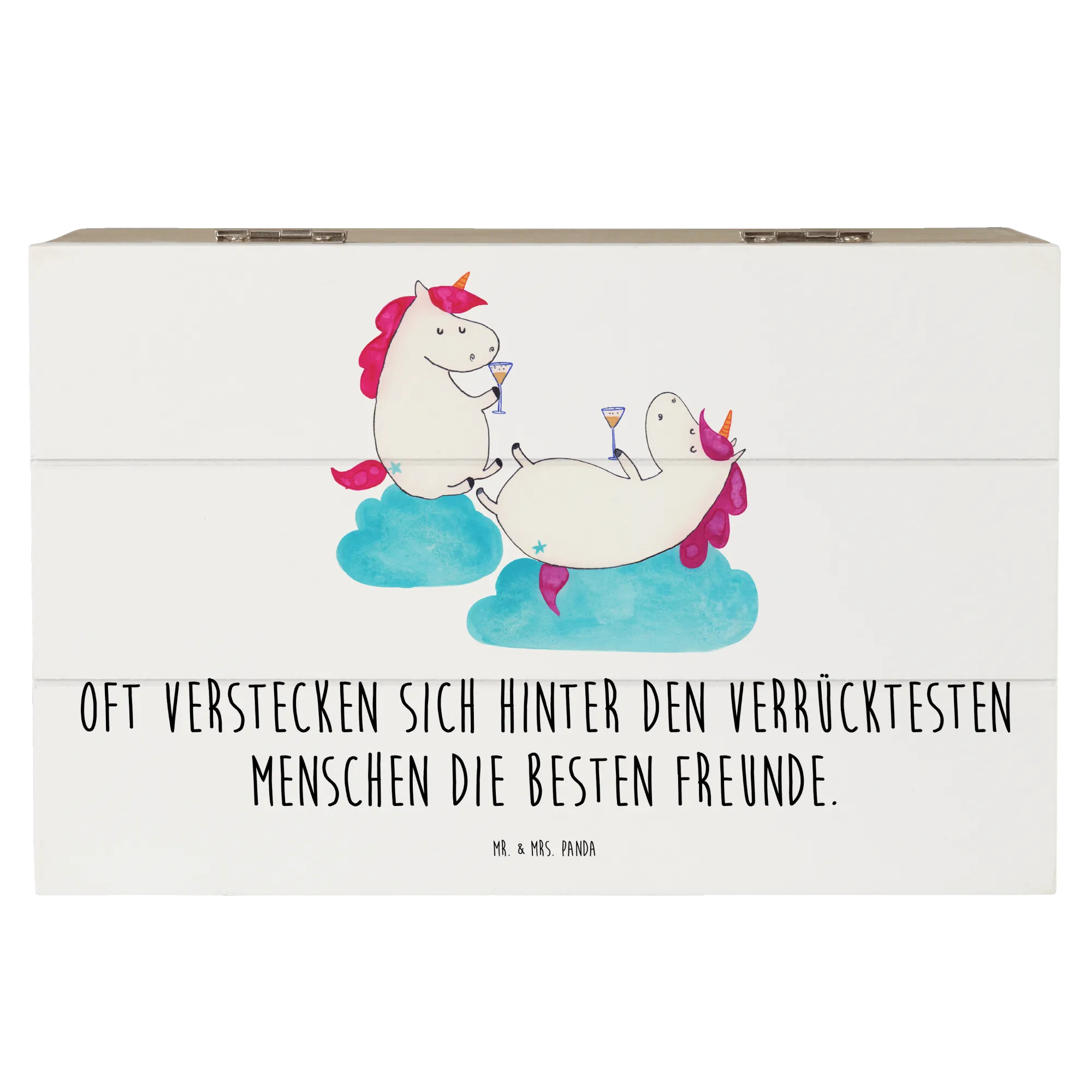 Wooden chest unicorn sparkling wine - 22 x 15 cm - with saying - White