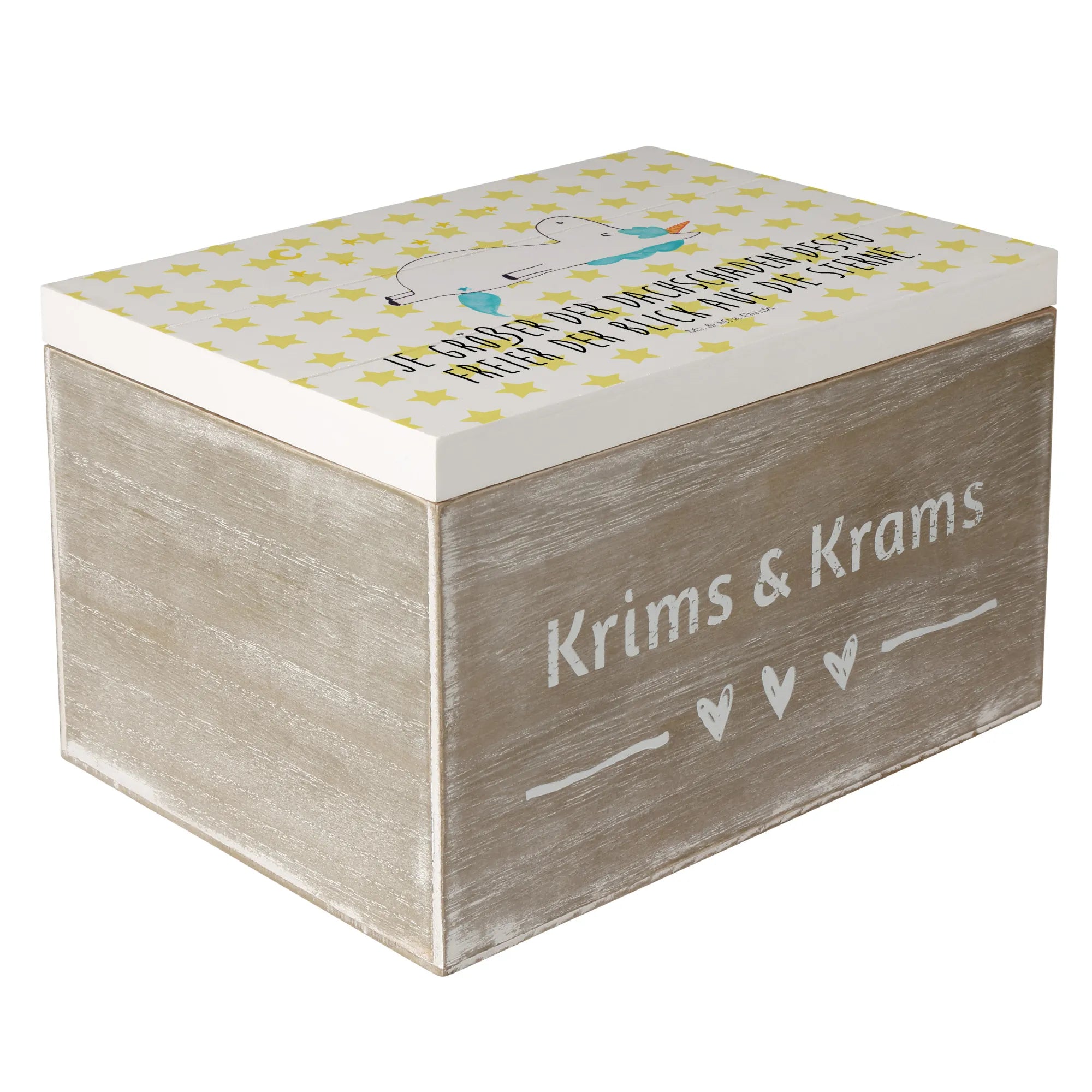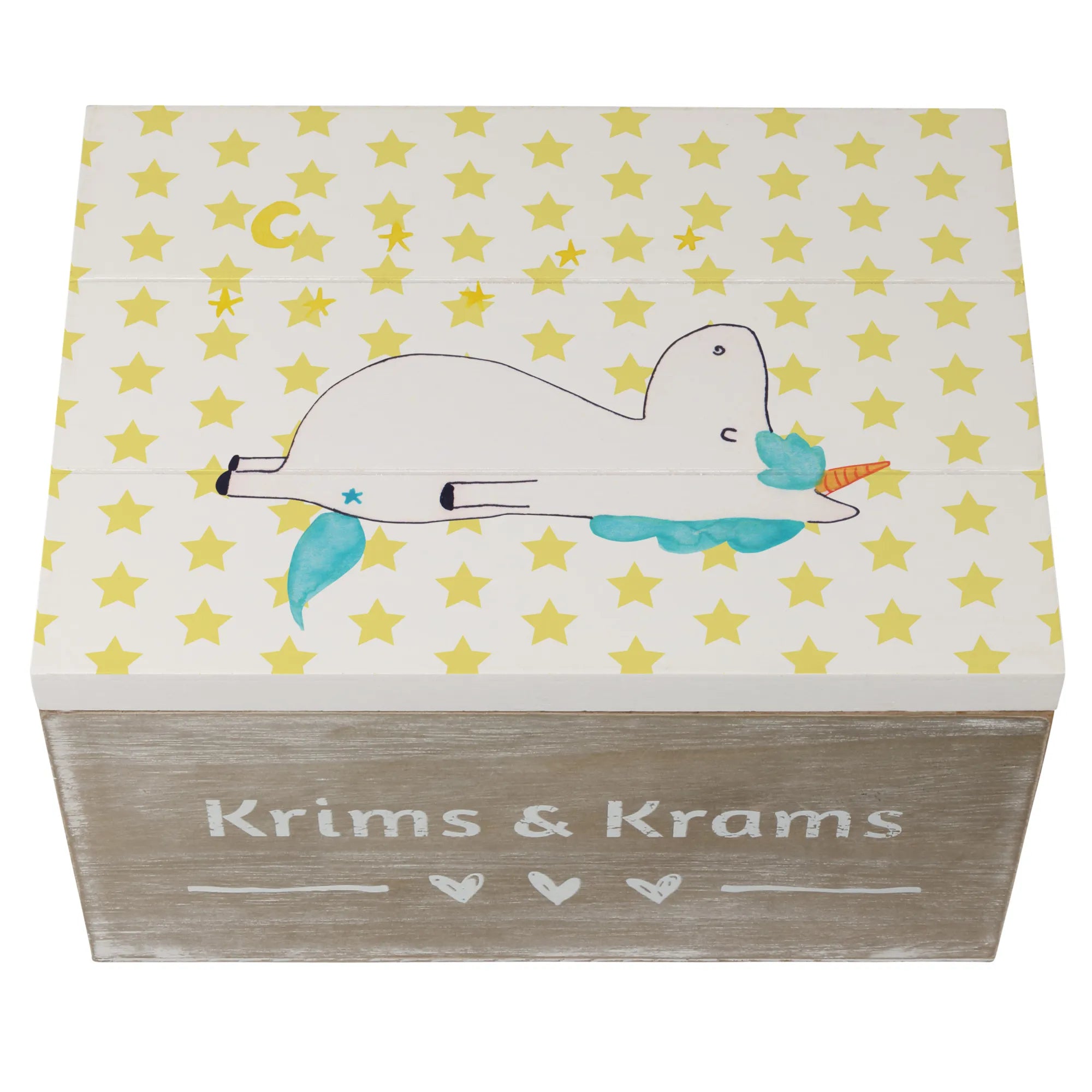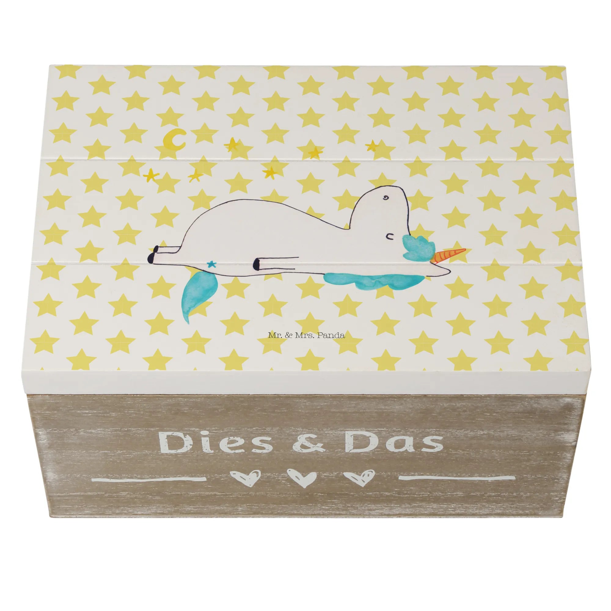 In summary, whether you are celebrating a milestone, welcoming a new friend into your life, or simply wishing to brighten someone's day, this Wooden Box with Unicorn Stars from the Unicorn-Collection by Mr. & Mrs. Panda is brimming with personality and charm. Make every occasion special with a gift that combines functionality and enchantment in one uniquely delightful package!