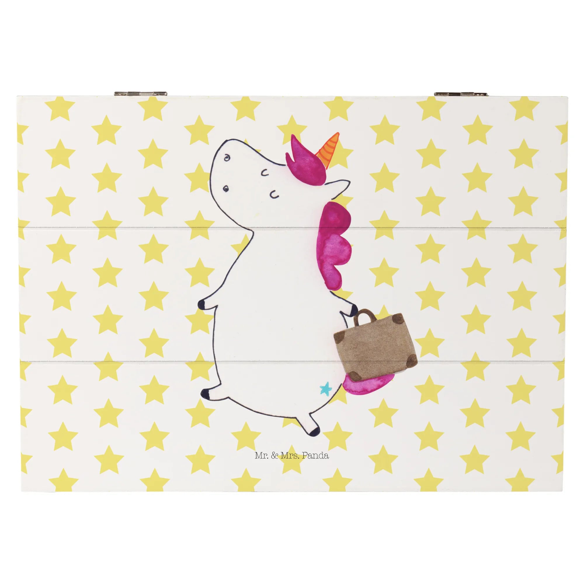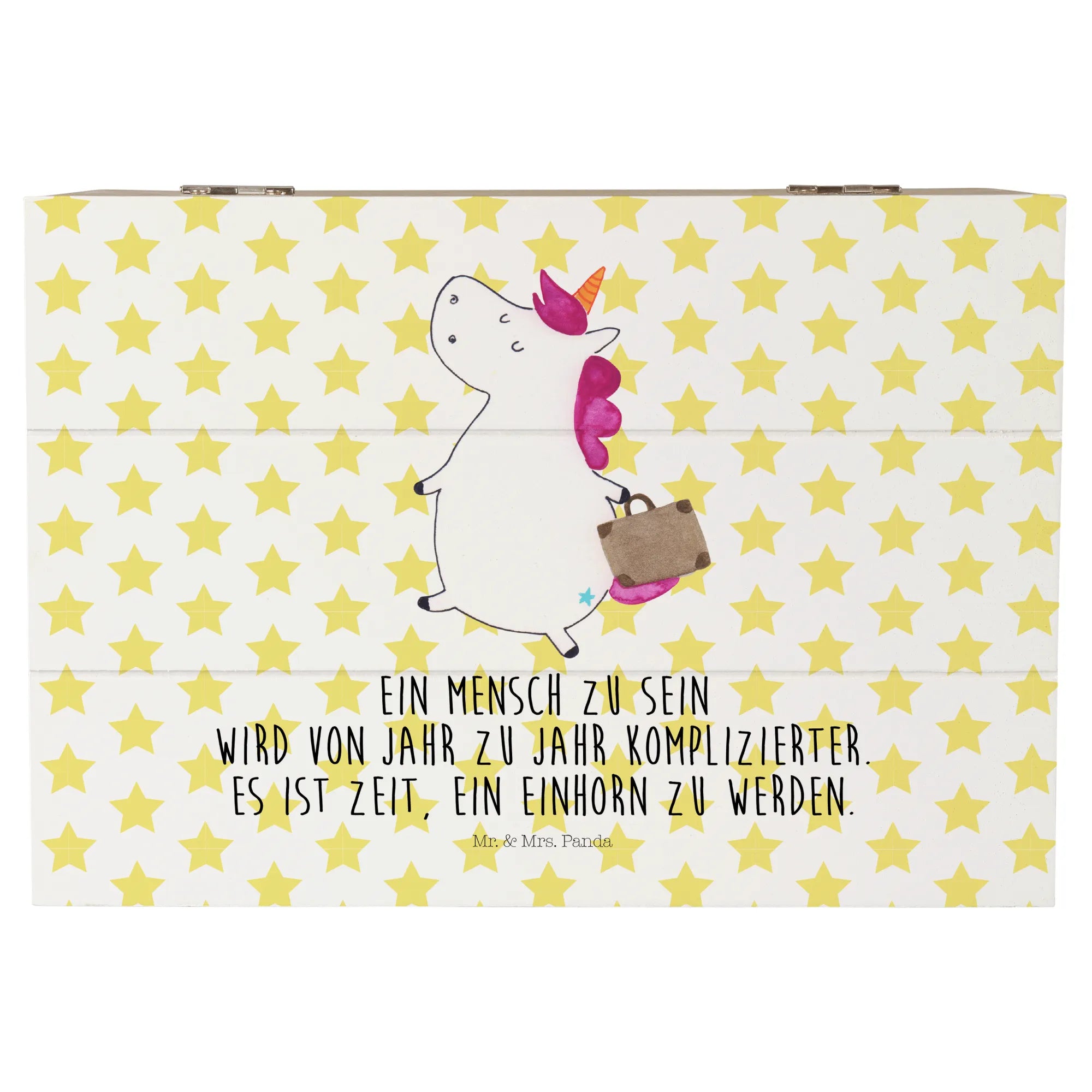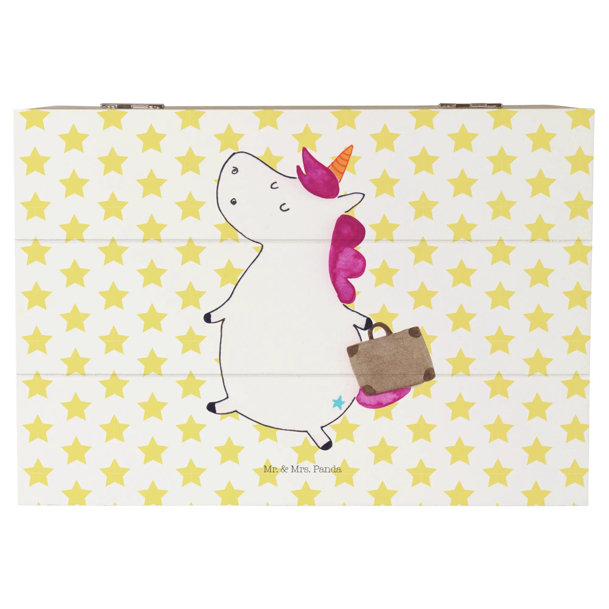 Imagine a beautifully designed chest featuring a cute unicorn carrying a suitcase, inviting you to embrace your inner child and embark on delightful journeys. This wonderful Unicorn Suitcase Wooden Chest is created with love, showcasing the unique artistic touch of Mrs. Panda, who hand-draws each motif with care. Made from durable premium hardboard, it is not only robust but also looks incredibly elegant. The material is naturally water-repellent, ensuring your memories are preserved in the best possible way.