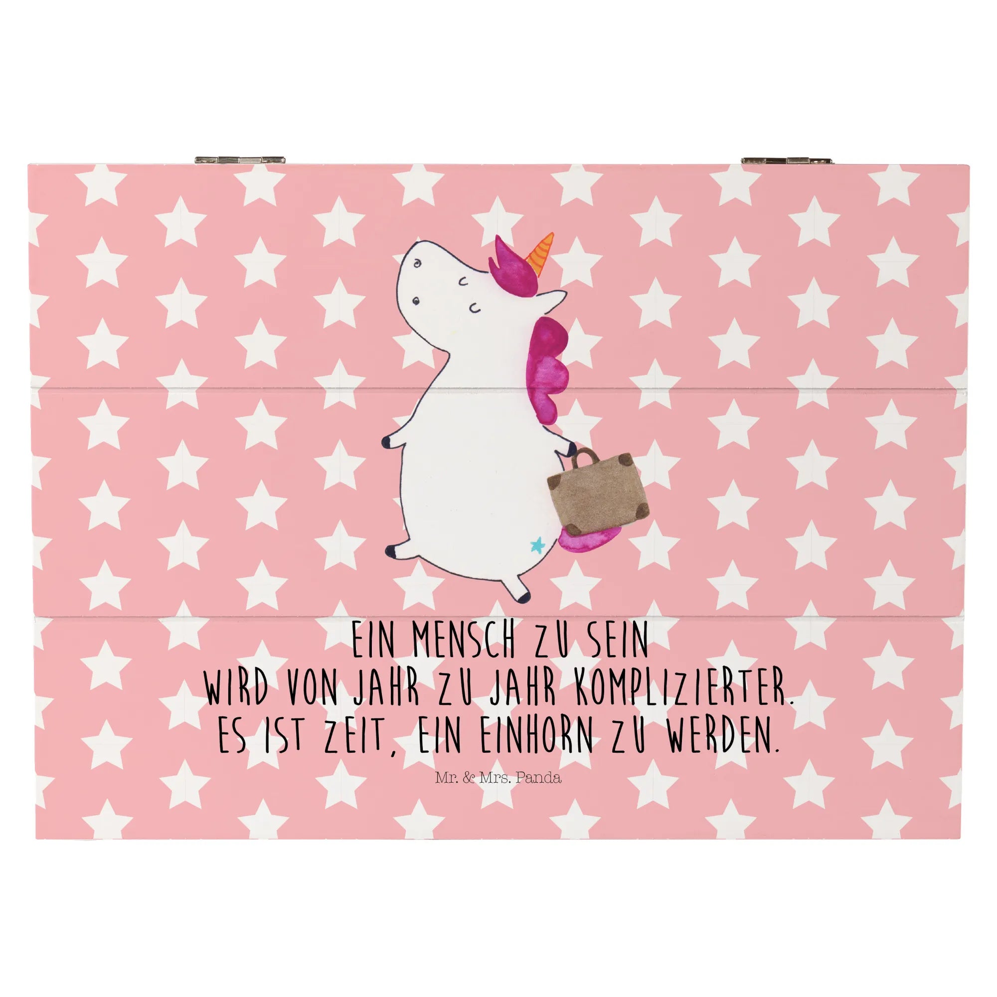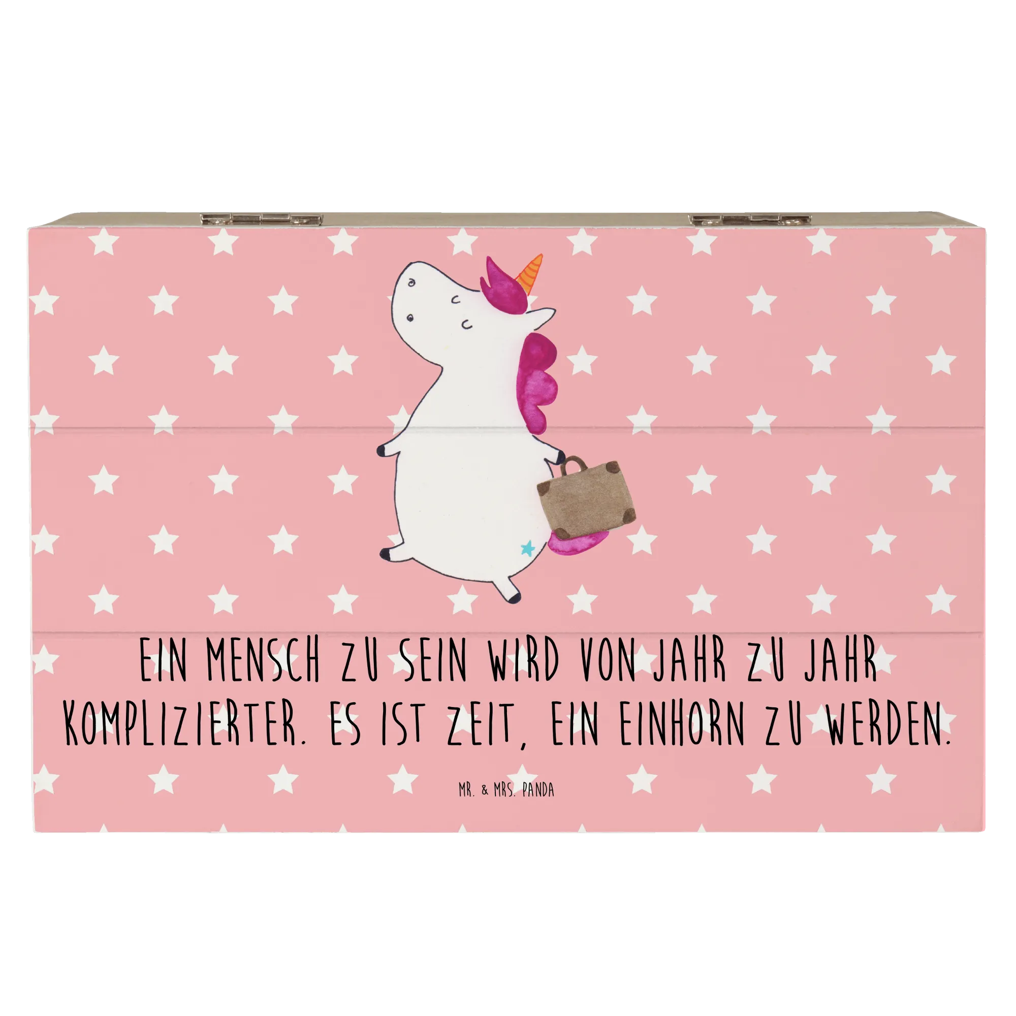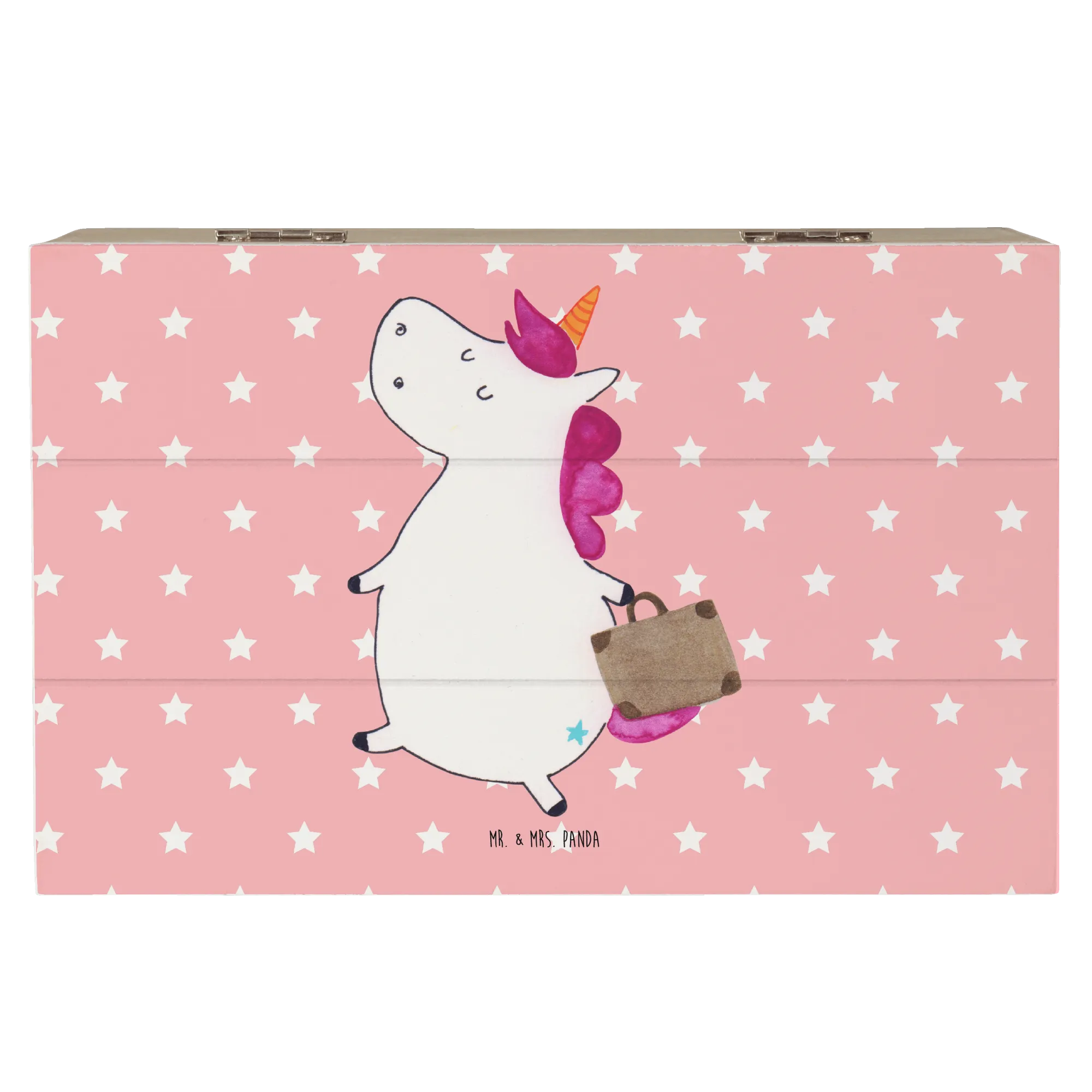 Imagine a beautifully designed chest featuring a cute unicorn carrying a suitcase, inviting you to embrace your inner child and embark on delightful journeys. This wonderful Unicorn Suitcase Wooden Chest is created with love, showcasing the unique artistic touch of Mrs. Panda, who hand-draws each motif with care. Made from durable premium hardboard, it is not only robust but also looks incredibly elegant. The material is naturally water-repellent, ensuring your memories are preserved in the best possible way.