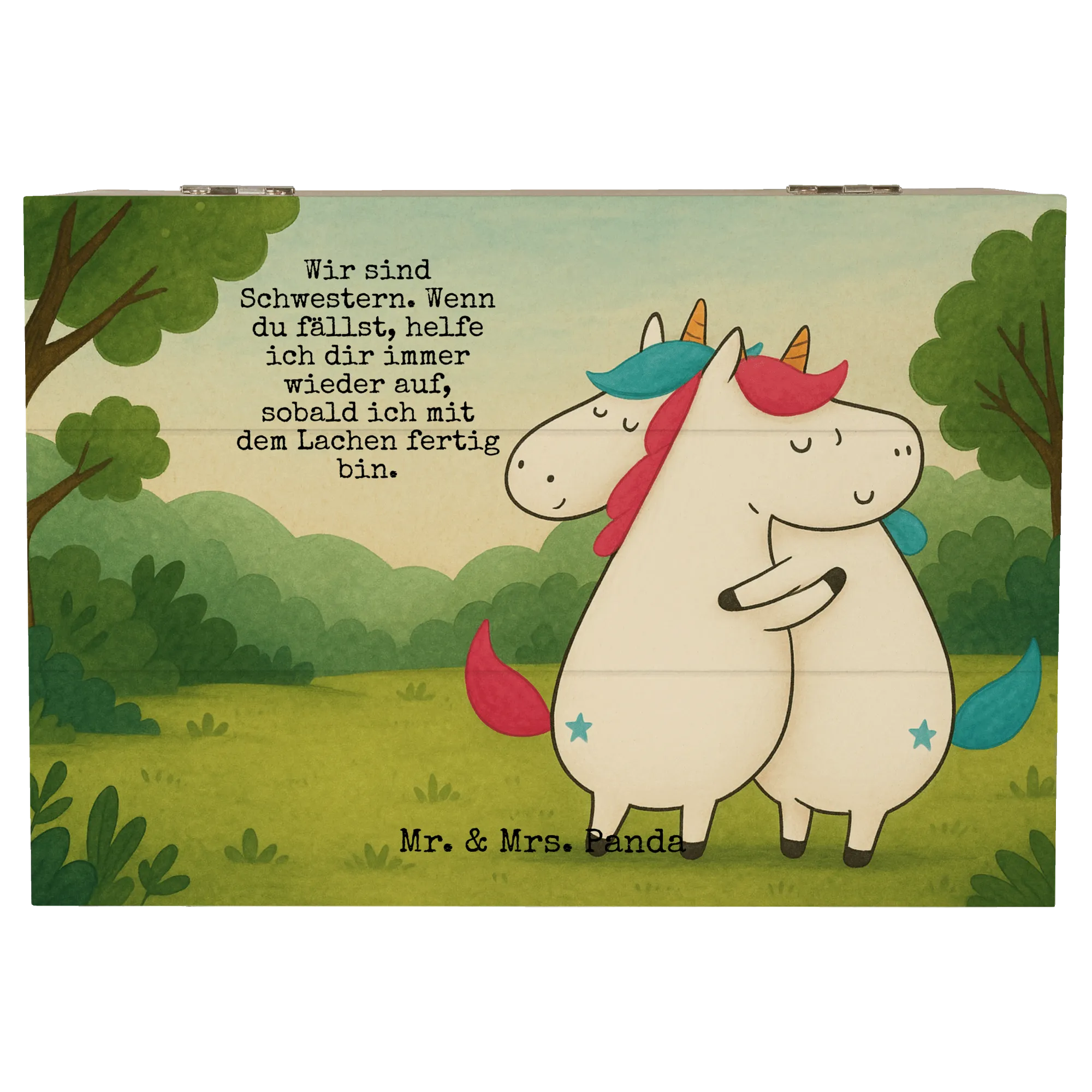 Wooden chest unicorns Embrace Design - 22 x 15 cm - with saying